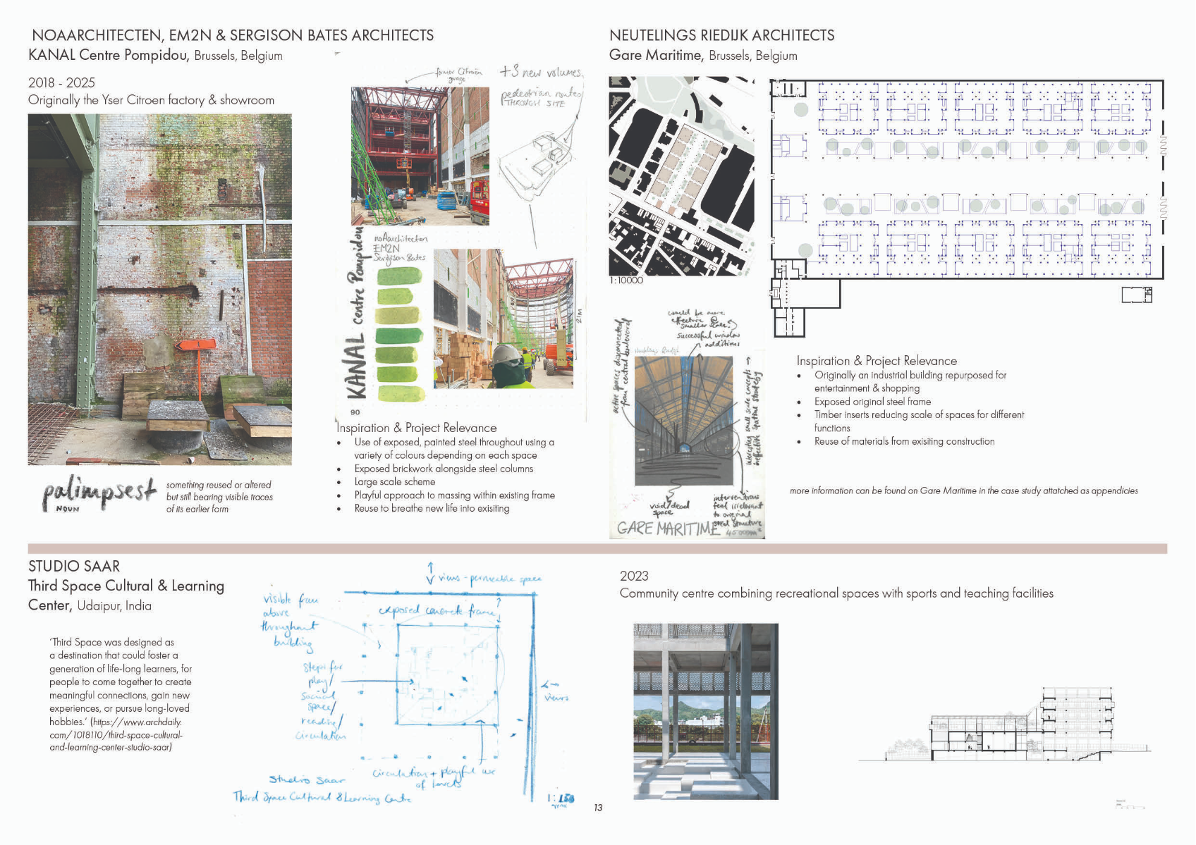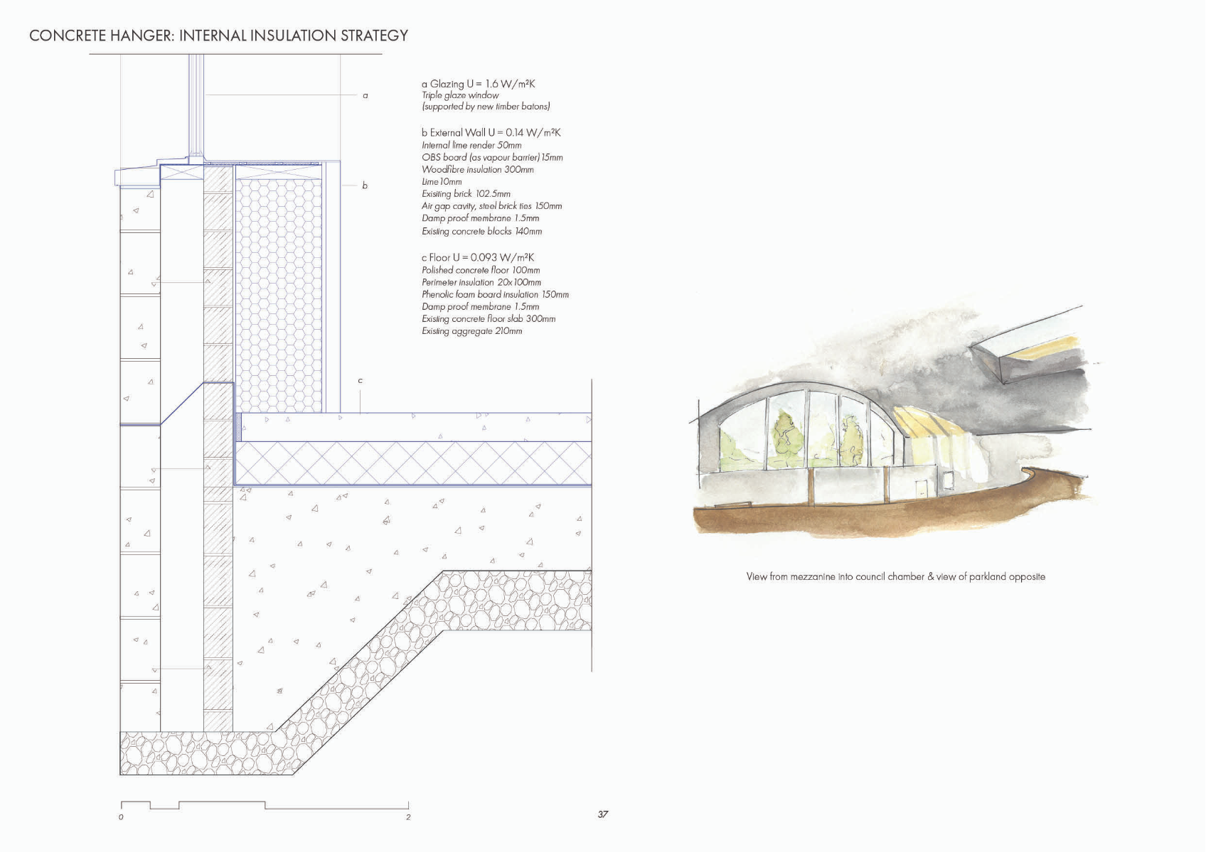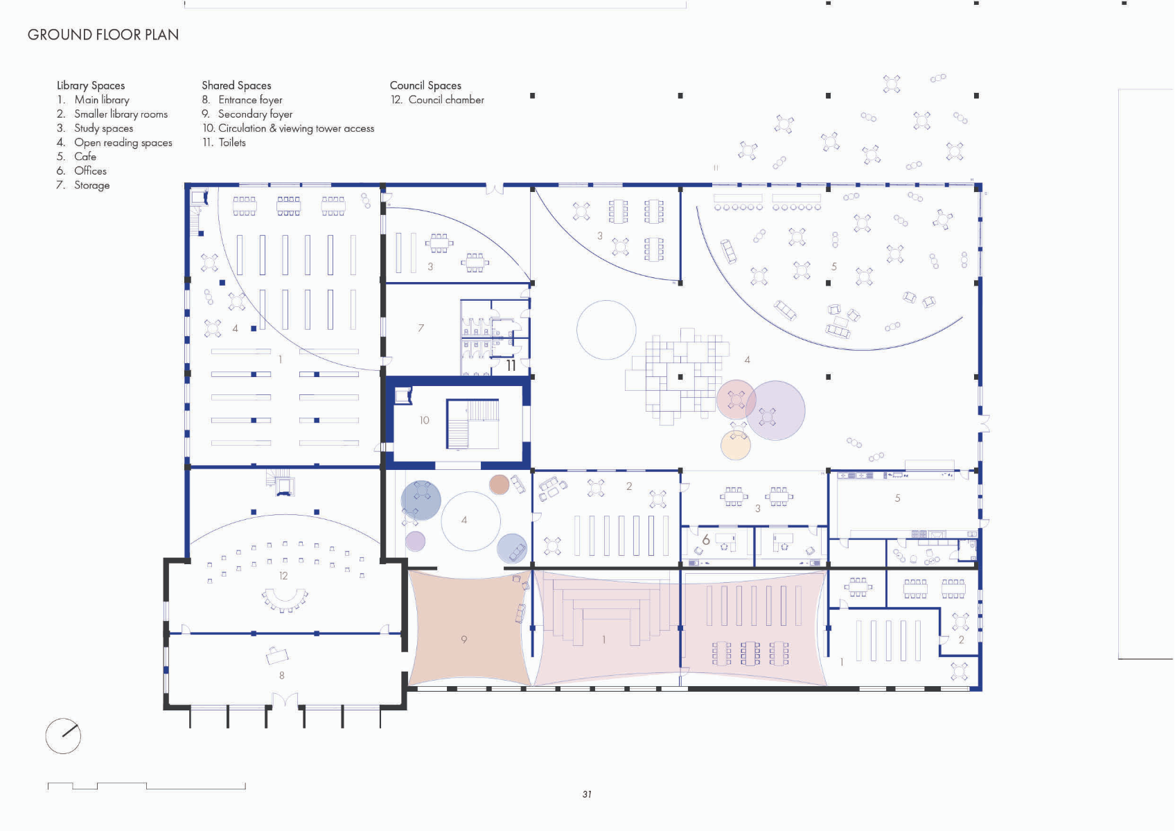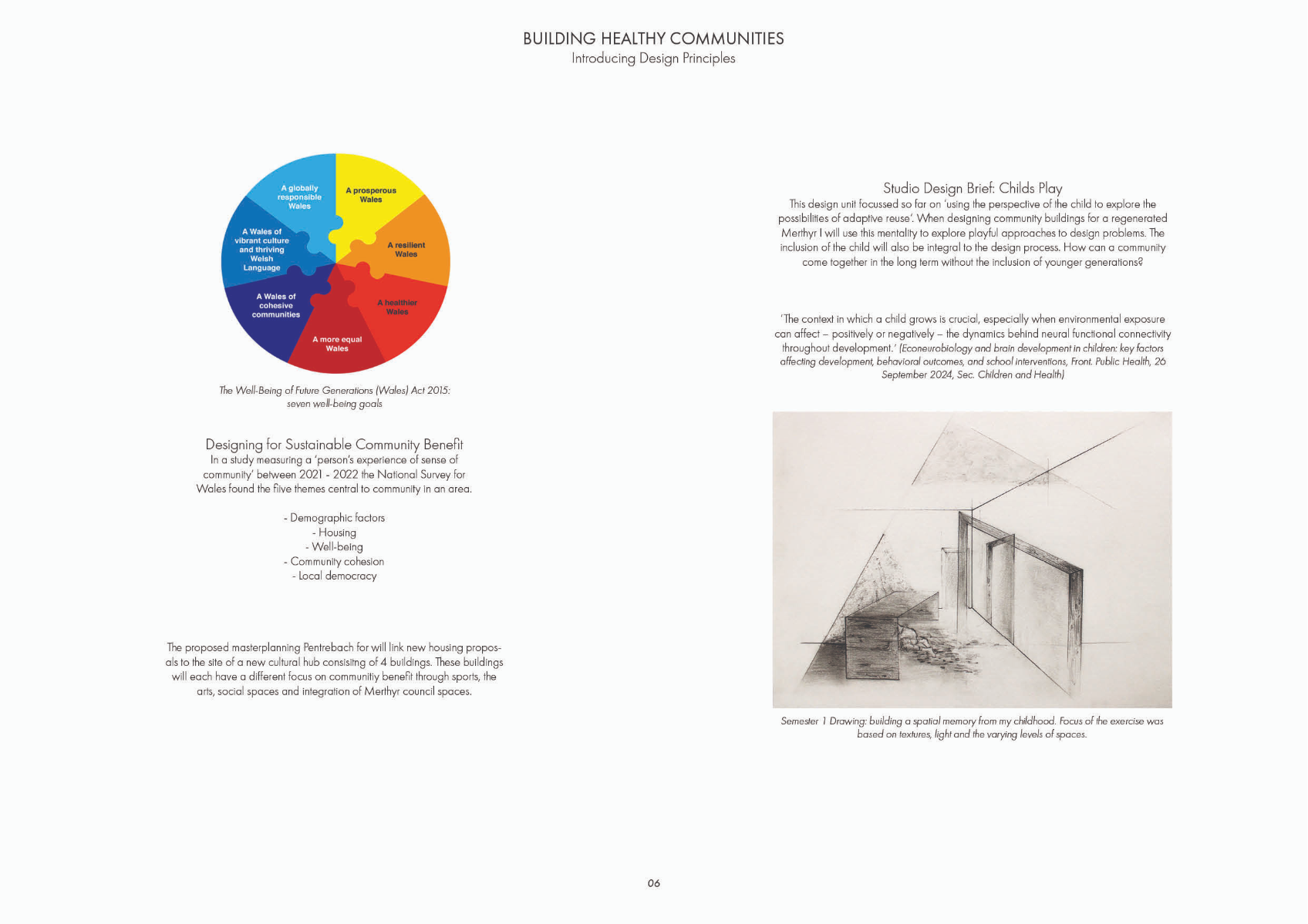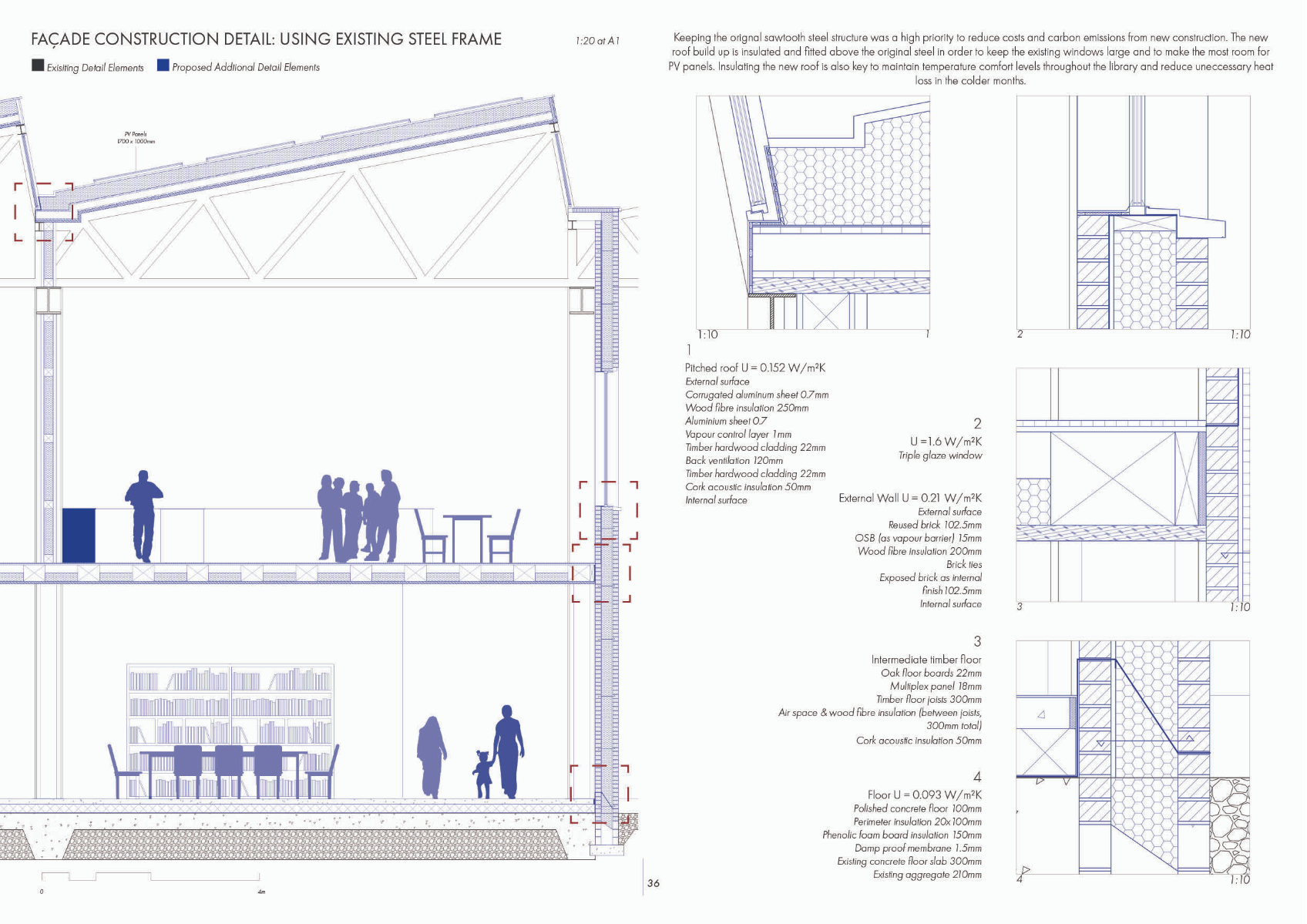This retrofit proposal for a set of civic buildings brings light, spatial connections and openness into the existing Hoover factory to preserve memories of place and simultaneously create new ones. The quality of space is intended to unfold and rework itself, shaped by communal use over time. Much of Hoover’s steel structure is retained and celebrated, while other elements of the original building are dismantled and playfully reused throughout the scheme. At masterplan scale, the proposed buildings act as a passageway between housing sites, providing access to an extensive programme of community spaces. The detailed focus of this project is on one of the four buildings: Merthyr Town Hall and Library.