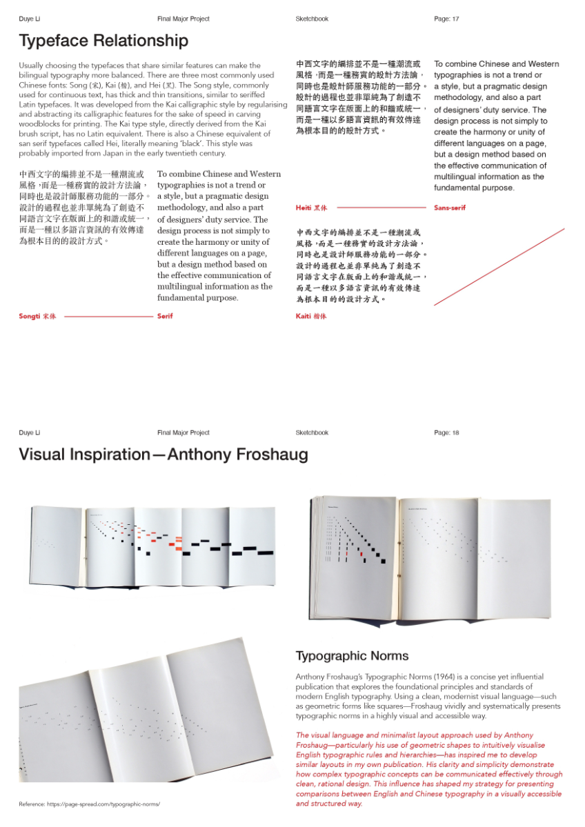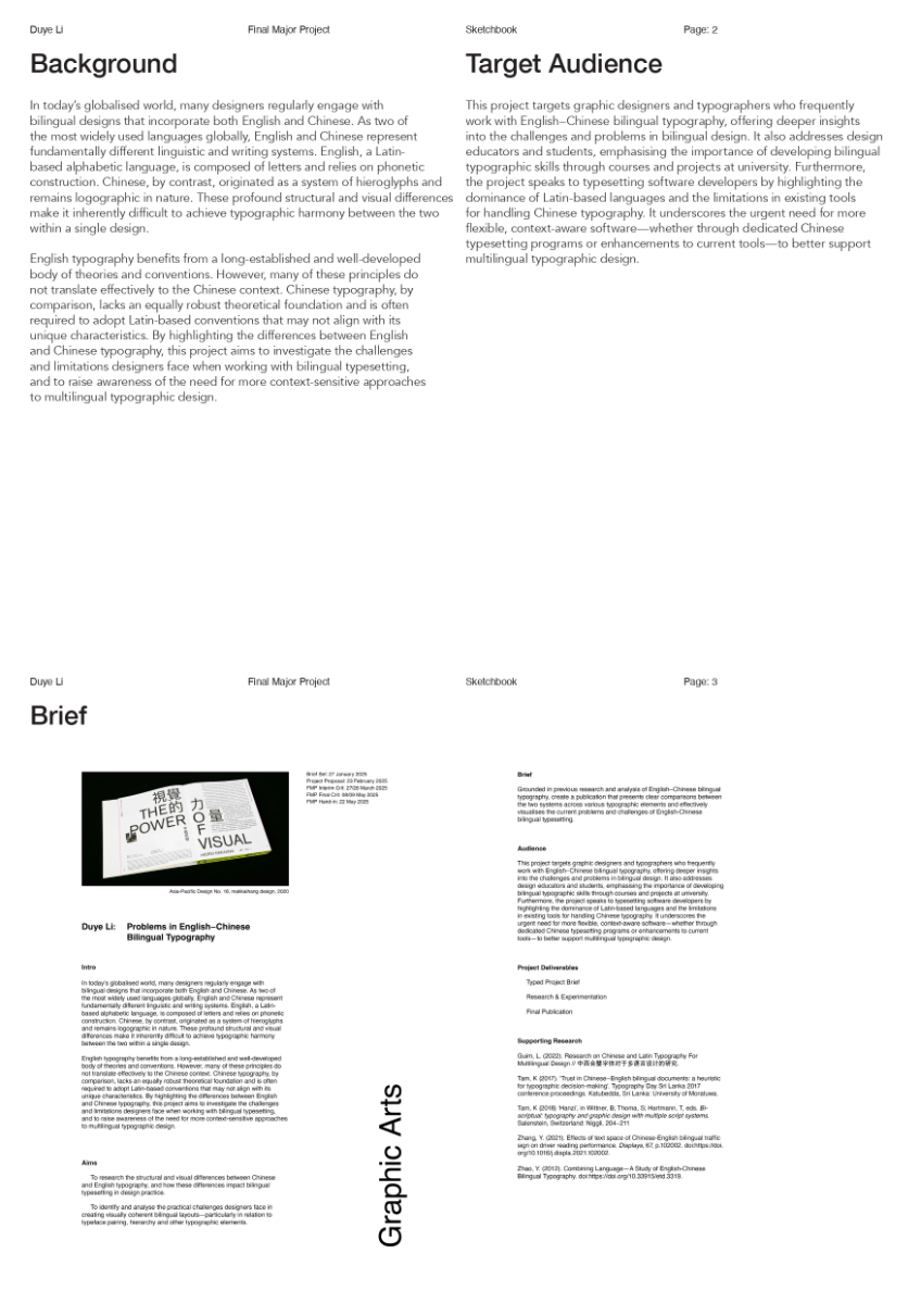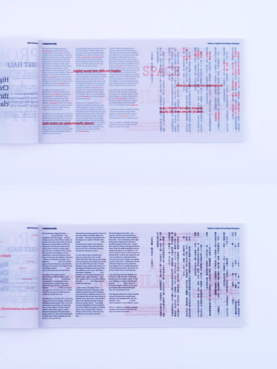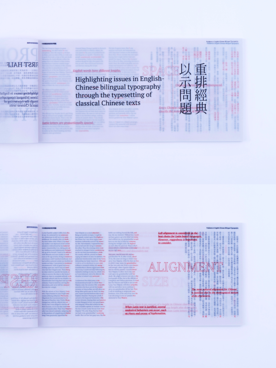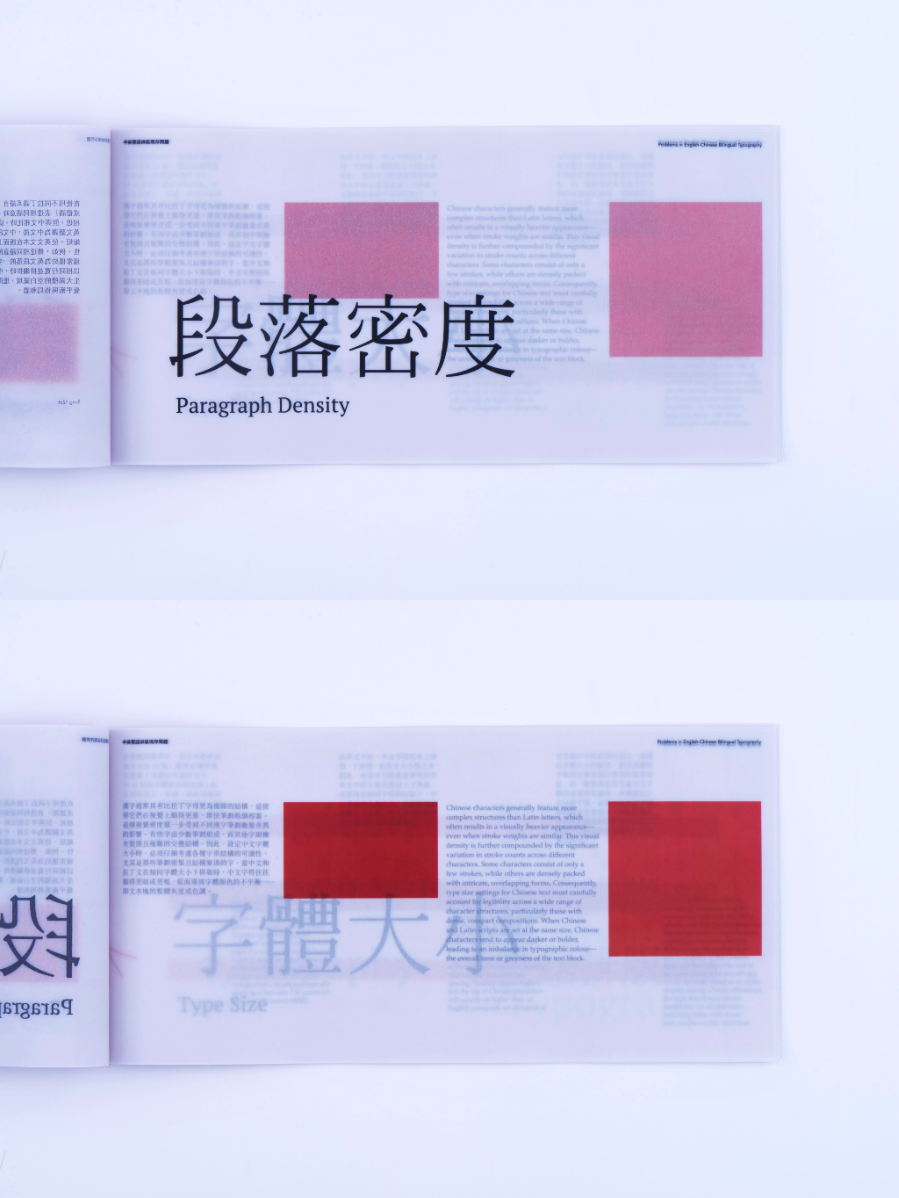 As a Chinese graphic designer and typographer, I often work on bilingual designs involving Chinese and English. The structural differences between the two—English being alphabetic and phonetic, and Chinese being logographic and rooted in hieroglyphs—make typographic harmony challenging. While English typography benefits from well-developed theories and tools, many of these do not translate effectively to Chinese. This publication highlights key structural and aesthetic differences, explores why bilingual typography often falls short, and raises awareness of the challenges designers face in achieving visual balance and coherence across both languages.