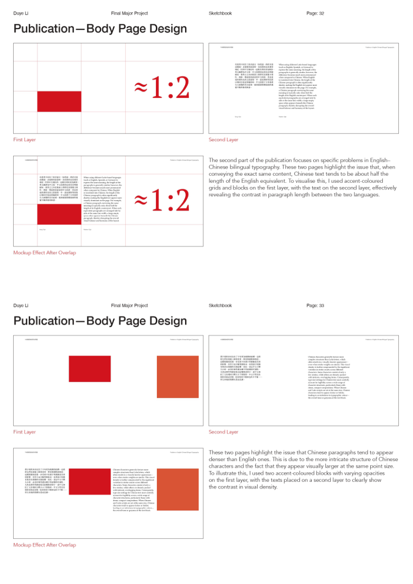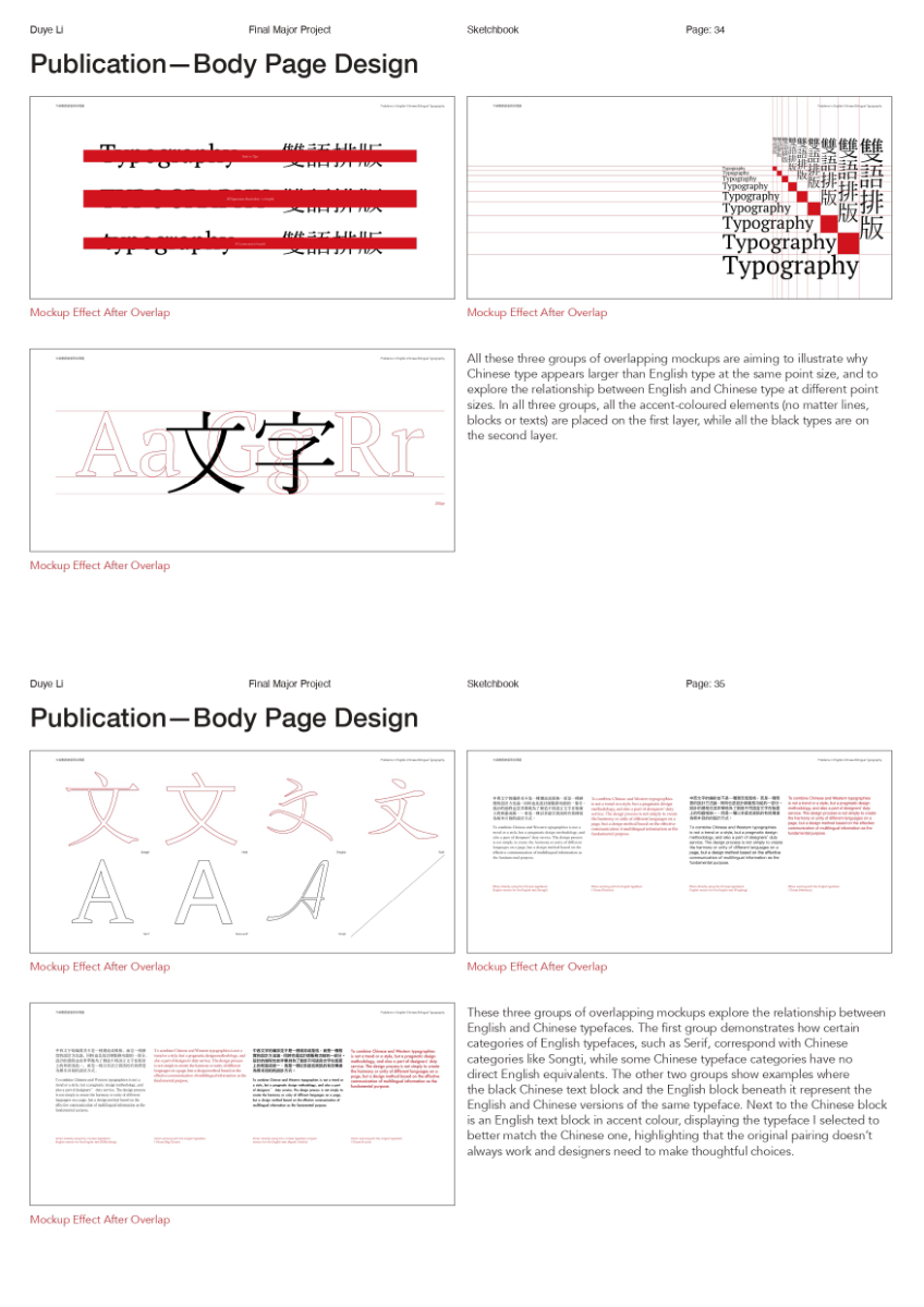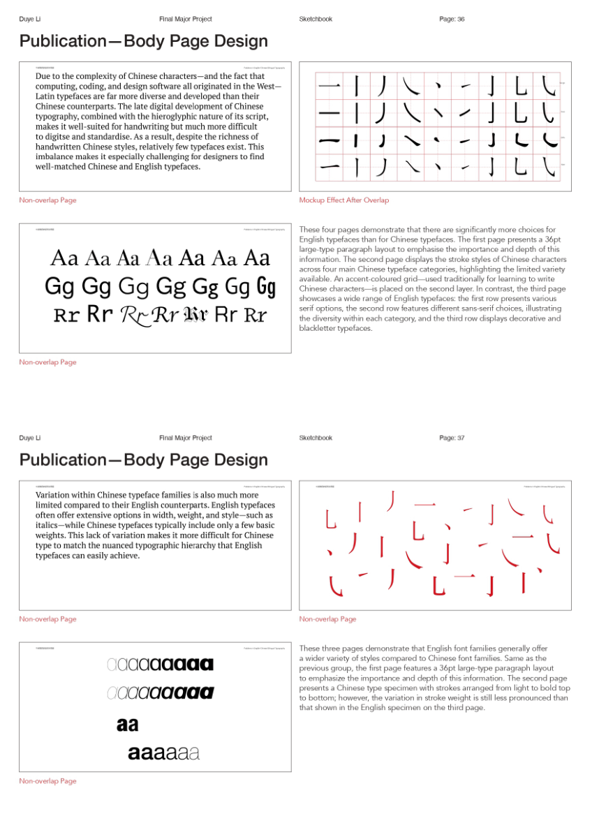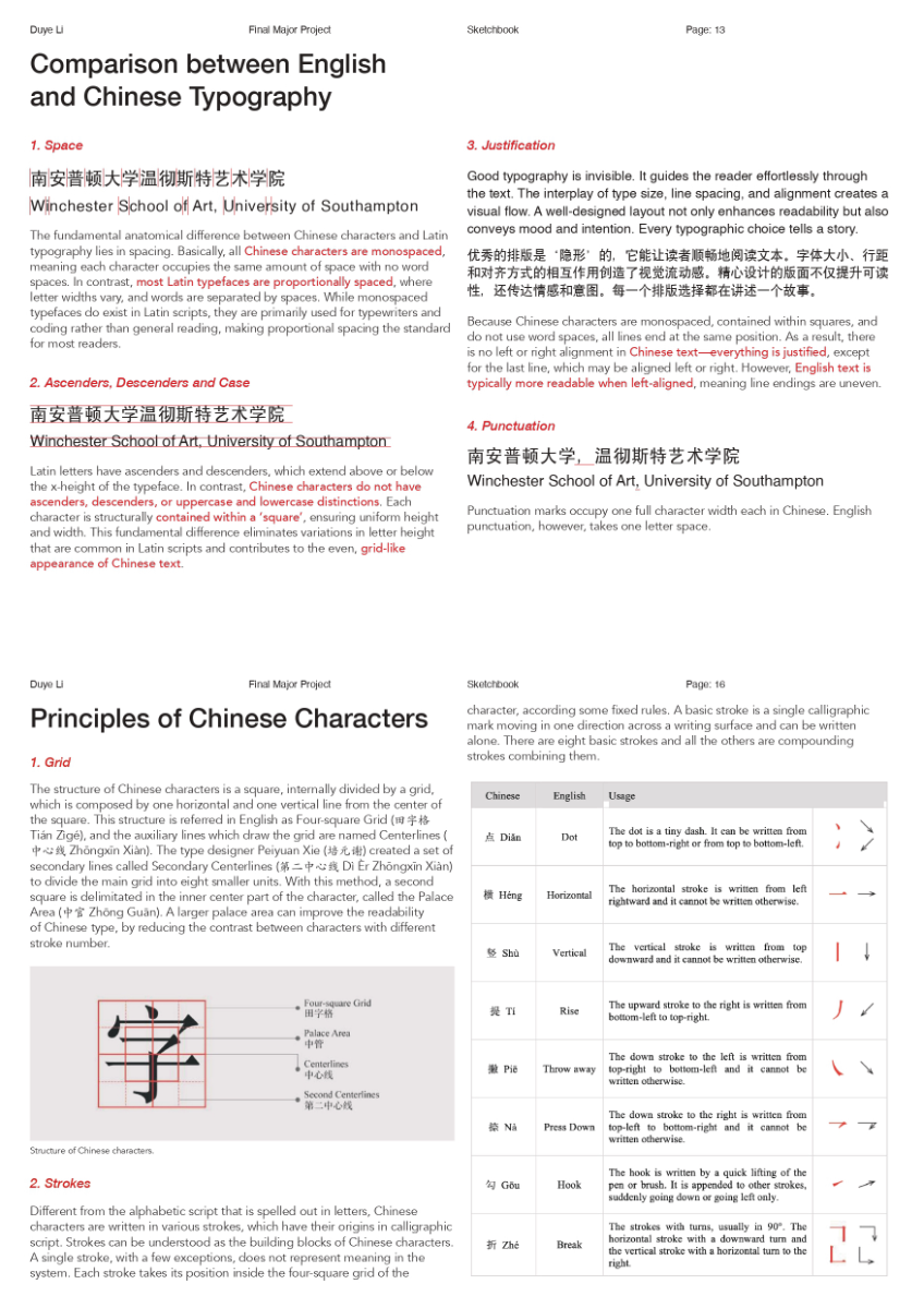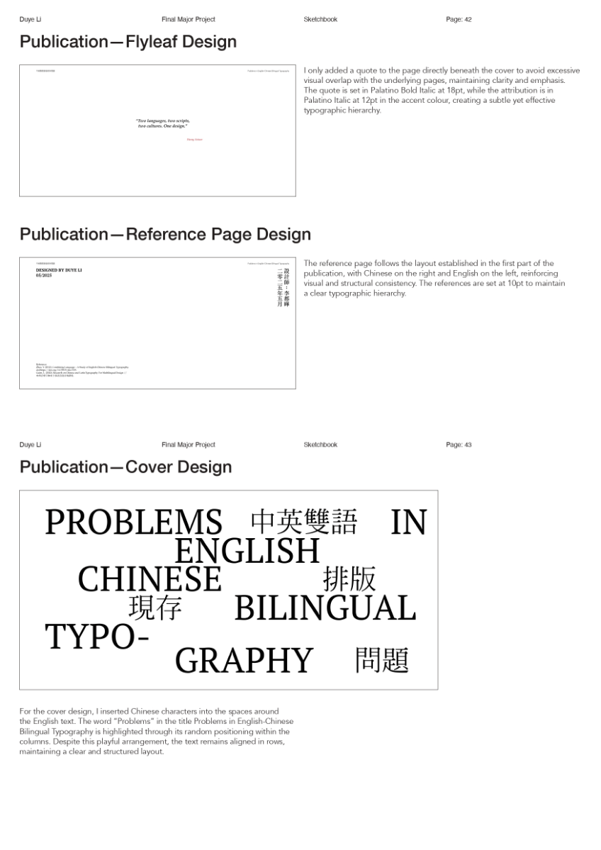 As a Chinese graphic designer and typographer, I often work on bilingual designs involving Chinese and English. The structural differences between the two—English being alphabetic and phonetic, and Chinese being logographic and rooted in hieroglyphs—make typographic harmony challenging. While English typography benefits from well-developed theories and tools, many of these do not translate effectively to Chinese. This publication highlights key structural and aesthetic differences, explores why bilingual typography often falls short, and raises awareness of the challenges designers face in achieving visual balance and coherence across both languages.