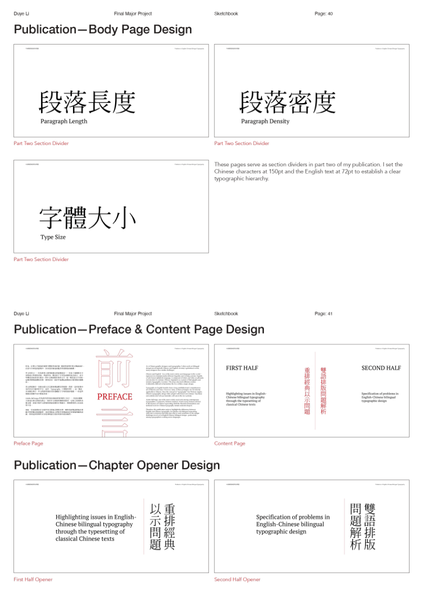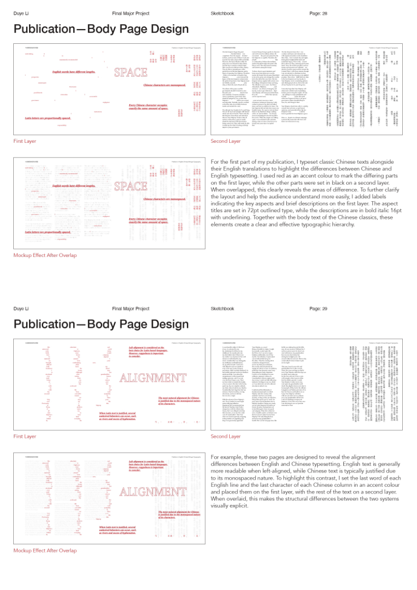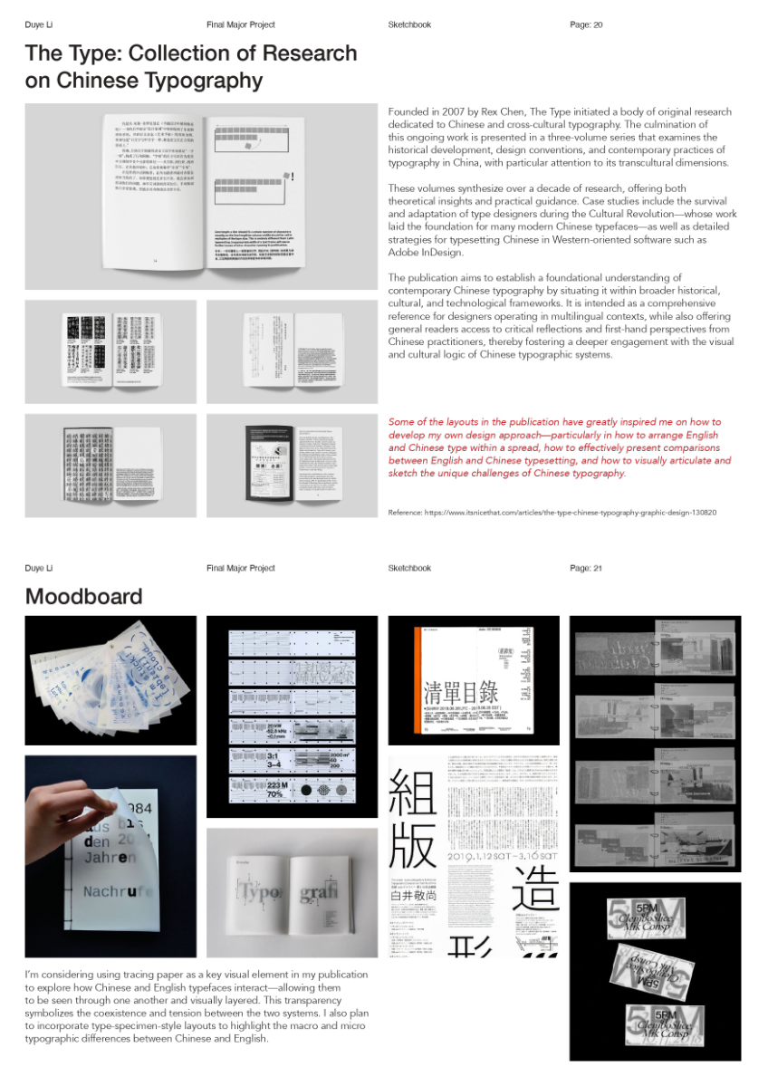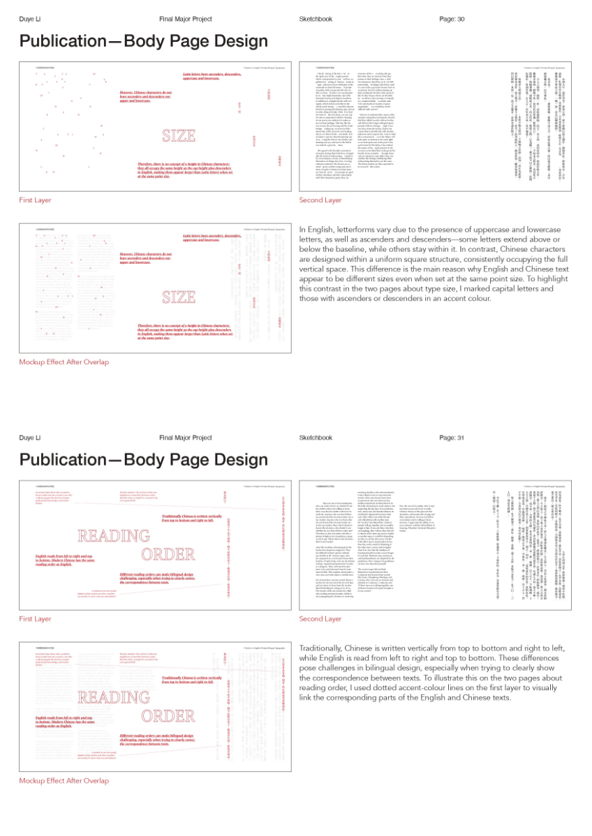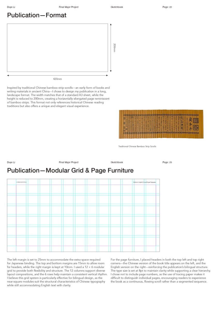 As a Chinese graphic designer and typographer, I often work on bilingual designs involving Chinese and English. The structural differences between the two—English being alphabetic and phonetic, and Chinese being logographic and rooted in hieroglyphs—make typographic harmony challenging. While English typography benefits from well-developed theories and tools, many of these do not translate effectively to Chinese. This publication highlights key structural and aesthetic differences, explores why bilingual typography often falls short, and raises awareness of the challenges designers face in achieving visual balance and coherence across both languages.