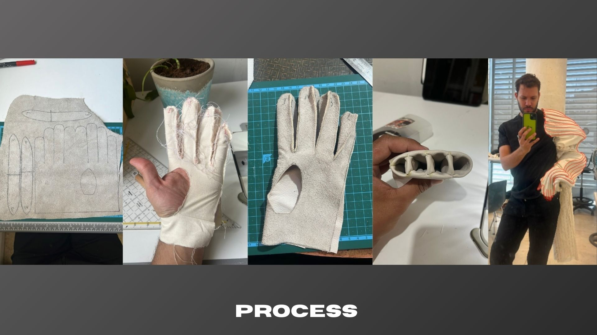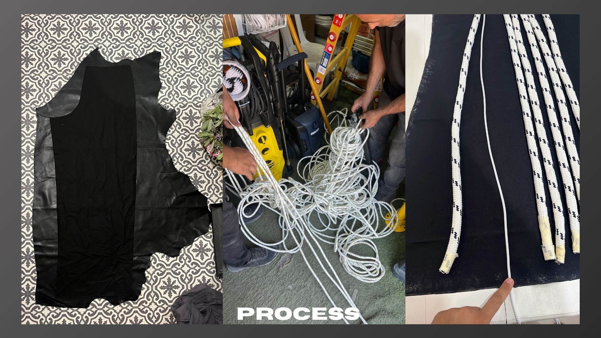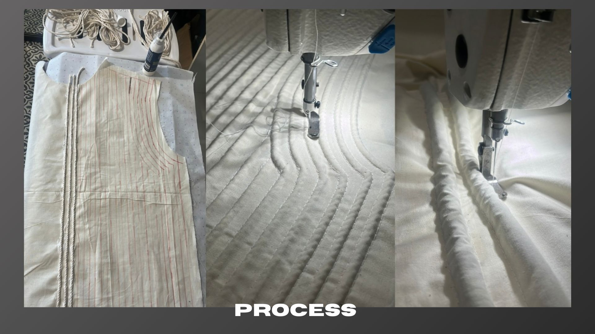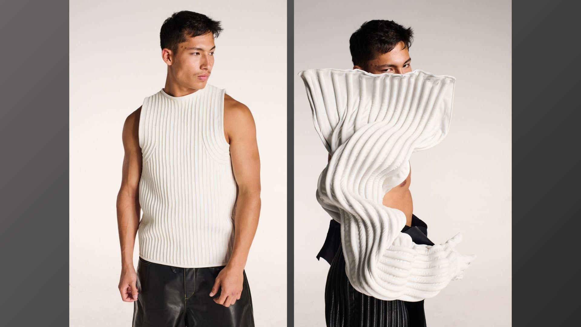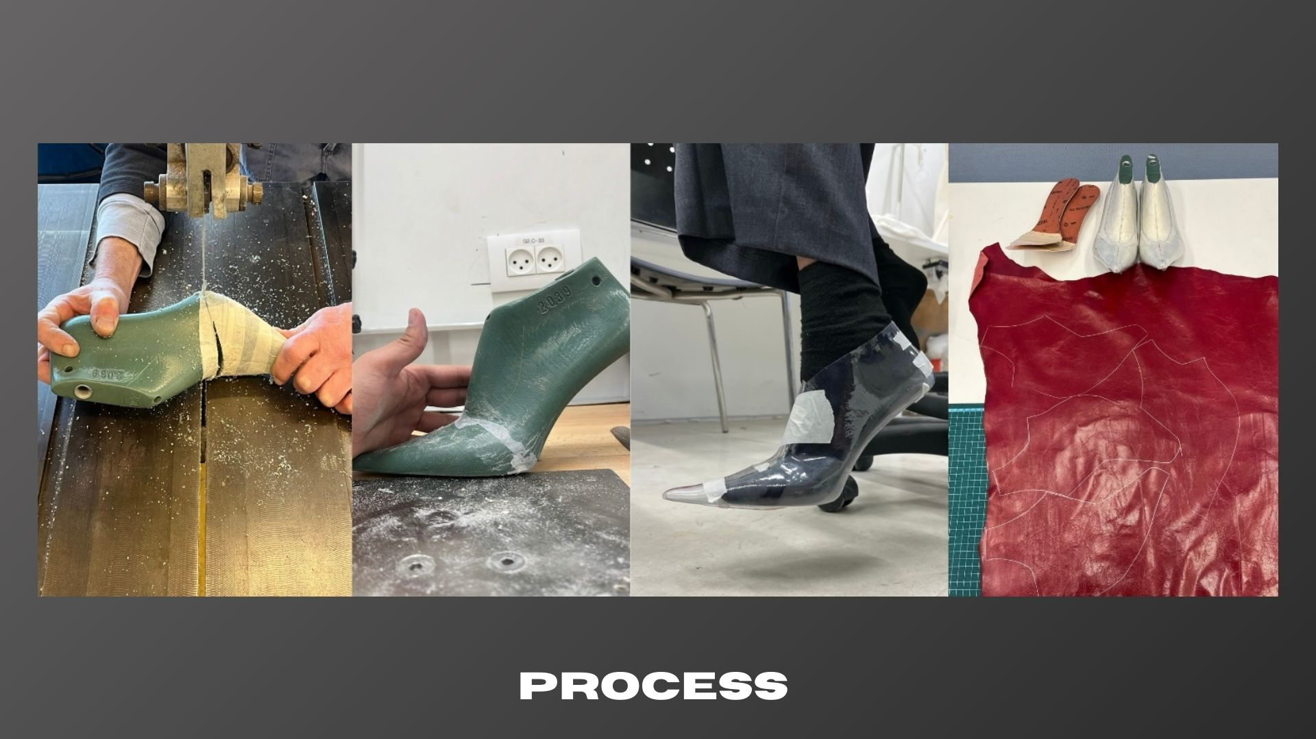 This collection explores the tension between the ego’s desire to protect, control, and impress, and the contrasting emotions of vulnerability, tenderness, and a deep yearning for love — all while seeking a renewed sense of inner harmony. The garments are designed with elements that resemble armor, evoking a modern-day warrior aesthetic. Leather was chosen as the primary material for its strength and adaptability, serving both as a durable fabric and a symbolic shield — much like skin, which safeguards the body’s fragility. The designs range from structured, tailored silhouettes that emphasize the body’s shape to looser, more fluid forms that incorporate supportive elements. A zigzag stitch is used as a functional technique for connecting multiple seams. The black-and-white palette reflects the interplay of opposing emotional forces. Ultimately, the look aims to project confidence — even in moments of inner doubt.