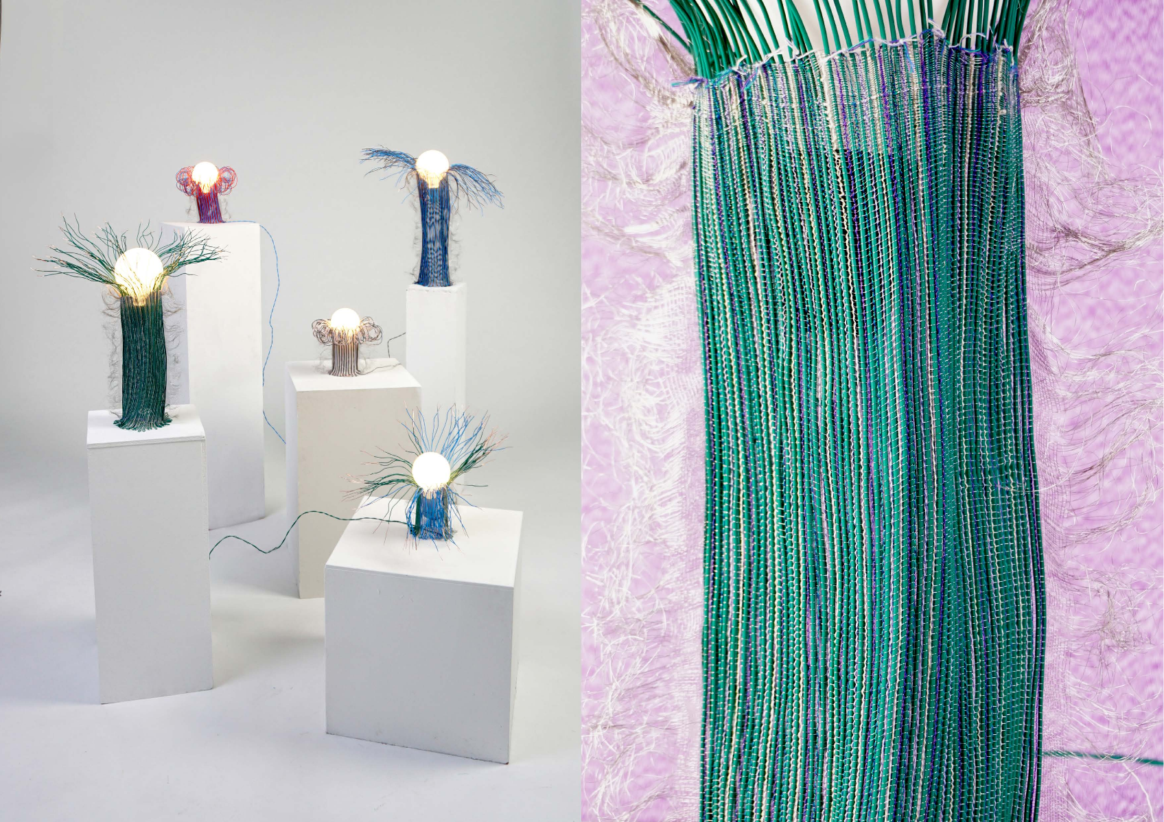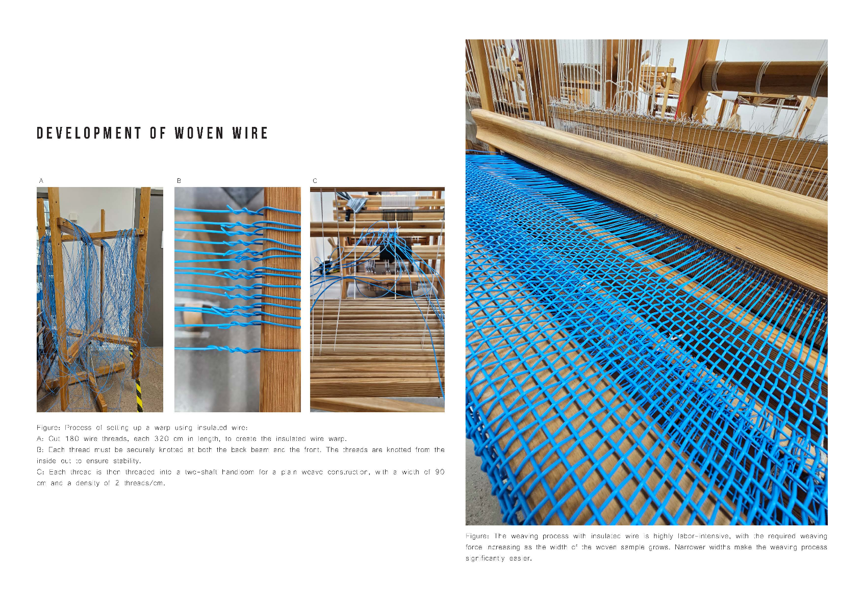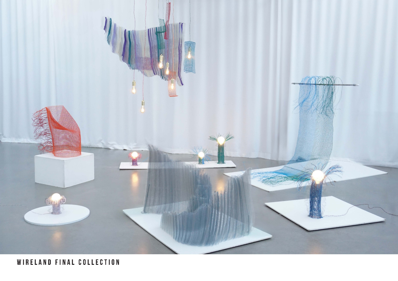 Wireland is a material-led research project that reimagines the potential of metal wire in woven textiles. Developed in collaboration with a wire company, the project utilizes discarded insulated wire waste as its primary material. This partnership enabled access to an unconventional resource while grounding the work in principles of circular design and sustainability. By transforming industrial waste into interior textile objects, Wireland demonstrates how materials usually destined for disposal can become the starting point for both craft and innovation. Craftsmanship plays a crucial role, with traditional handweaving techniques adapted to explore new possibilities of form, structure, and transparency. The outcome is a collection of six interior textile objects, woven in three material groups: soft stainless steel, stainless steel mixed with insulated wire, and rigid insulated wire compositions. Together, they show a variety of applications of wire in woven textiles. A central focus lies on the conductive properties of wire, which inspired the development of a series of lamps within the project. By highlighting its original function of transferring electricity, normally hidden behind walls, Wireland places the wire at the forefront, giving it new relevance in the context of woven interior objects. The material’s natural behavior introduces playfulness into the process, shaping the visual outcome and offering a completely new perspective on how electrical wire can be perceived.