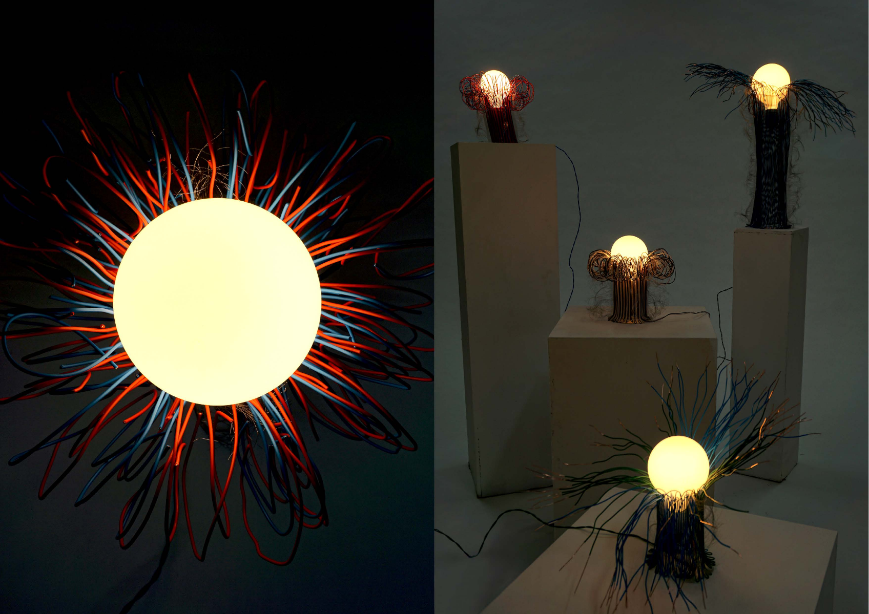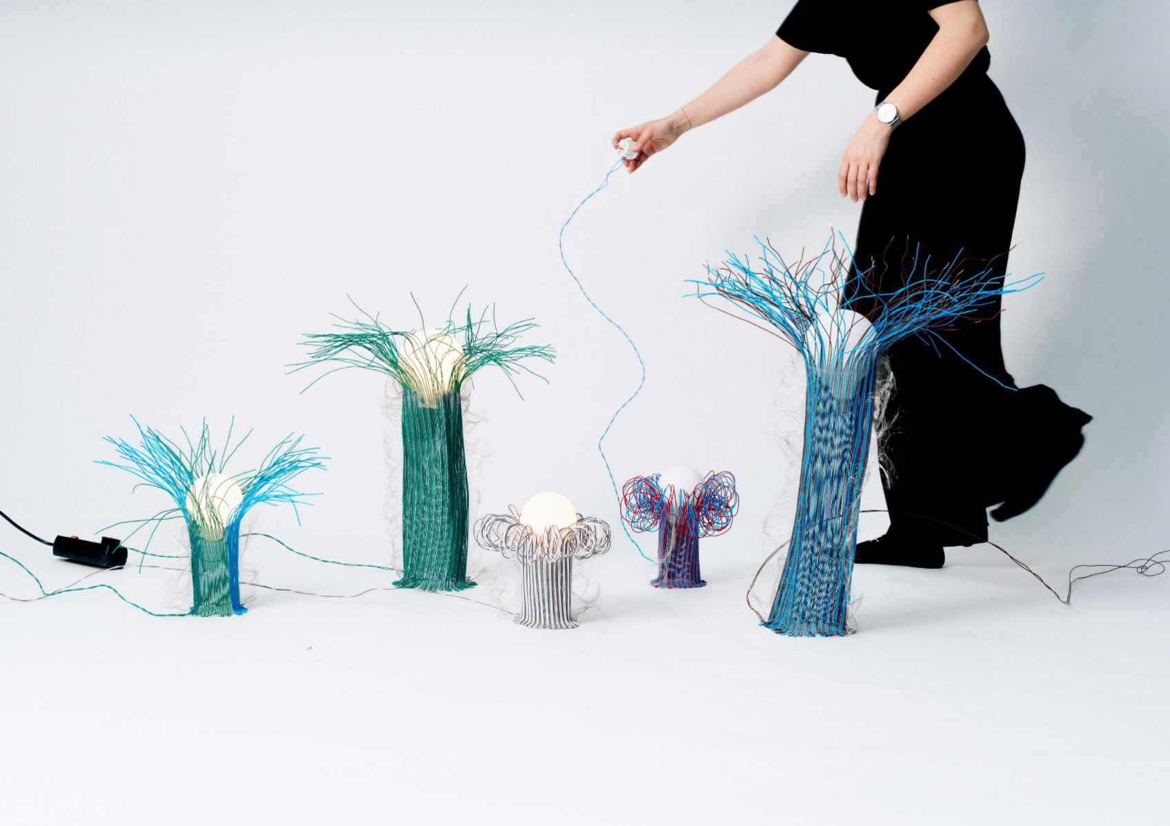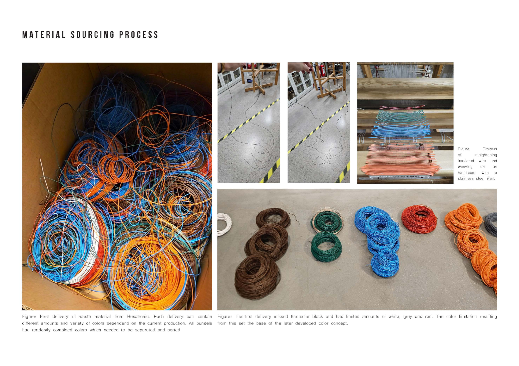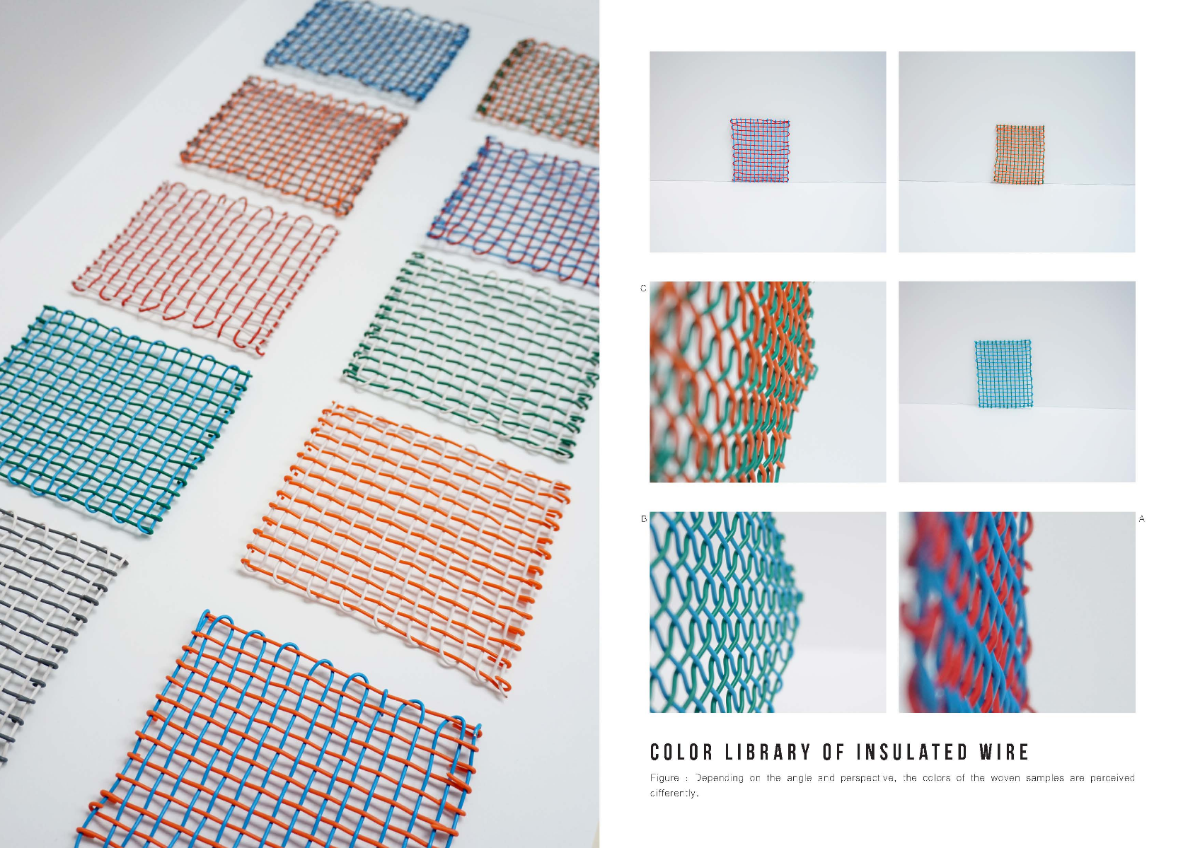 Wireland is a material-led research project that reimagines the potential of metal wire in woven textiles. Developed in collaboration with a wire company, the project utilizes discarded insulated wire waste as its primary material. This partnership enabled access to an unconventional resource while grounding the work in principles of circular design and sustainability. By transforming industrial waste into interior textile objects, Wireland demonstrates how materials usually destined for disposal can become the starting point for both craft and innovation. Craftsmanship plays a crucial role, with traditional handweaving techniques adapted to explore new possibilities of form, structure, and transparency. The outcome is a collection of six interior textile objects, woven in three material groups: soft stainless steel, stainless steel mixed with insulated wire, and rigid insulated wire compositions. Together, they show a variety of applications of wire in woven textiles. A central focus lies on the conductive properties of wire, which inspired the development of a series of lamps within the project. By highlighting its original function of transferring electricity, normally hidden behind walls, Wireland places the wire at the forefront, giving it new relevance in the context of woven interior objects. The material’s natural behavior introduces playfulness into the process, shaping the visual outcome and offering a completely new perspective on how electrical wire can be perceived.