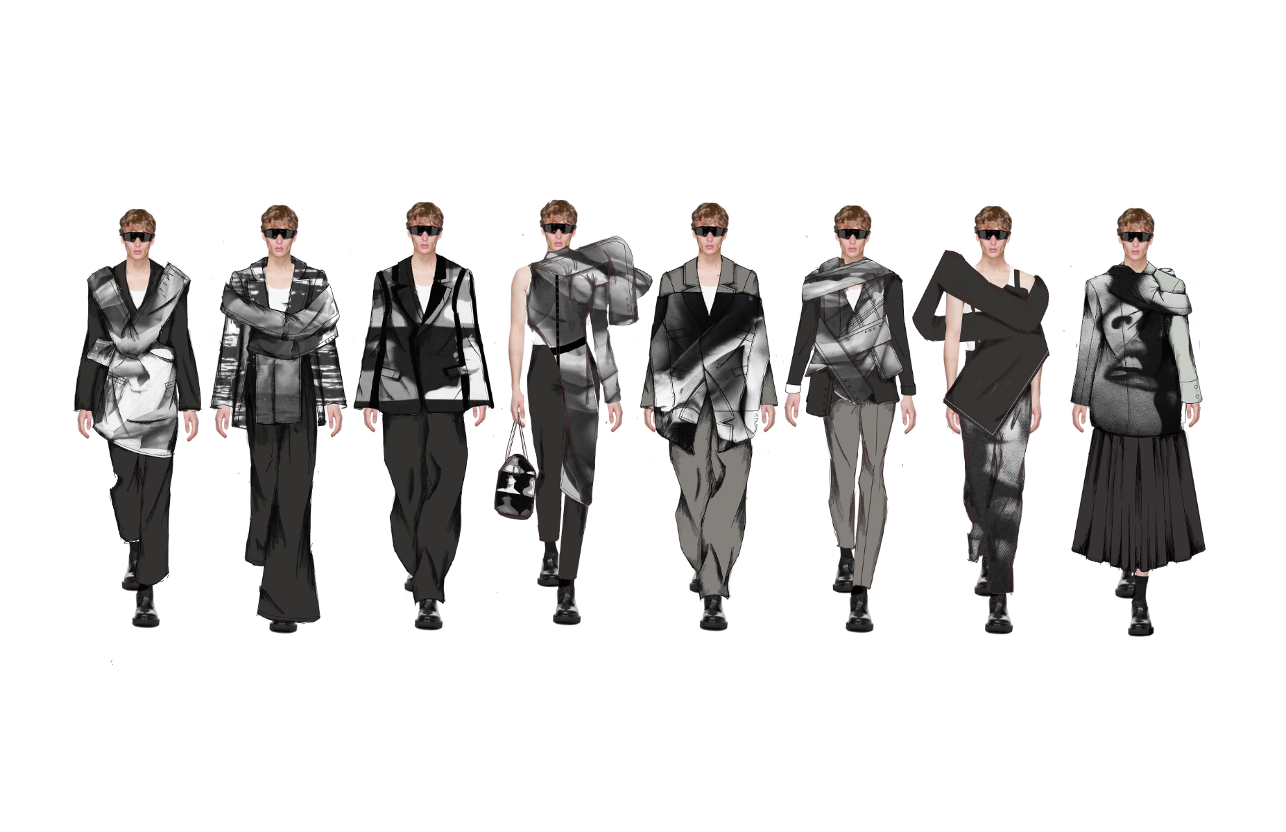 In the culture I am in, sexuality is often an avoided topic. People choose not to confront or talk about sexuality because, in their conservative eyes, it is often a subject that is difficult to speak of, making the lack of sex education a social phenomenon. Some people may even feel ashamed or guilty about these desires. Yet, sexuality is a natural tendency and one of the basic needs of human beings. As such, I believe that confronting these desires is an essential step in understanding what you want within yourself and a crucial step in rethinking how your self and culture view sexuality. In this design, I wanted to confront sexuality head-on and think about how to present it in an intuitive but acceptable way. Therefore, I tried to re-conceptualize and reassemble the suit that represents abstinence to explore sexuality by simulating the combination of movements in a sexual act and presenting it directly but non-explicitly. At the same time, I introduced many sexually-themed prints into the design to emphasize this theme. Through this design, I hope to provoke viewers to think about sexuality, prompting them to re-examine ideas and stereotypes in sex education and traditional culture and encourage an open and respectful dialog about sexuality. I also hope to provide a platform for people to better understand their own and society's attitudes toward sexuality, thereby promoting a more inclusive and open cultural perspective.