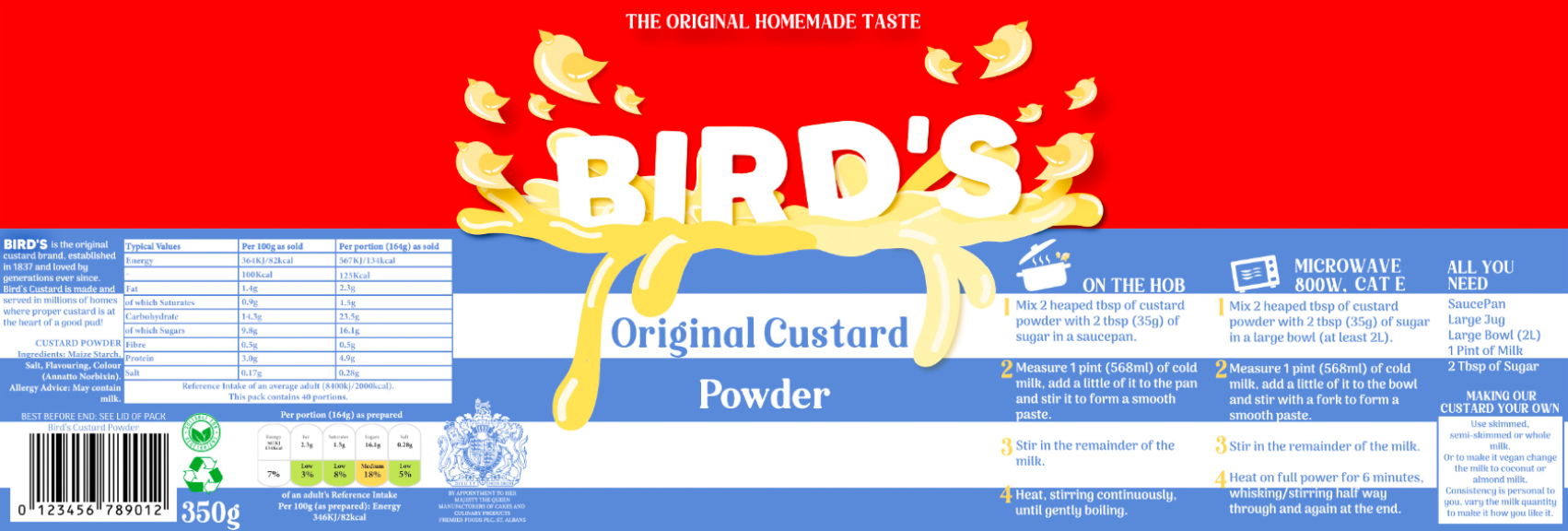 Bird's Custard is one of the most iconic brands in the UK, having been a household staple for over a century. The rebrand of Bird's Custard brings a contemporary twist to this beloved heritage brand while honoring its history. The new visual identity is rooted in vibrant, warm tones that evoke the comforting essence of the custard itself. This rebrand aims to attract a new generation of customers while reassuring long-time fans with a sense of nostalgic familiarity.