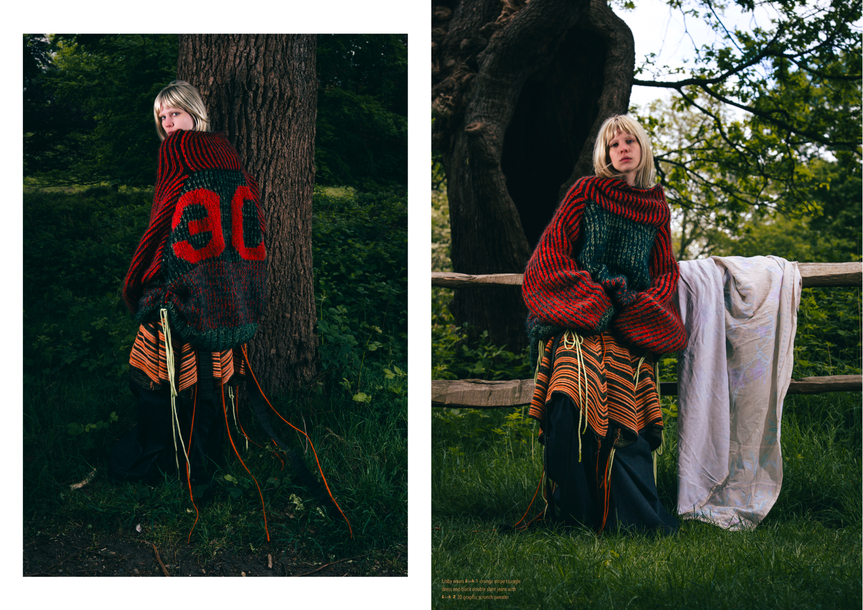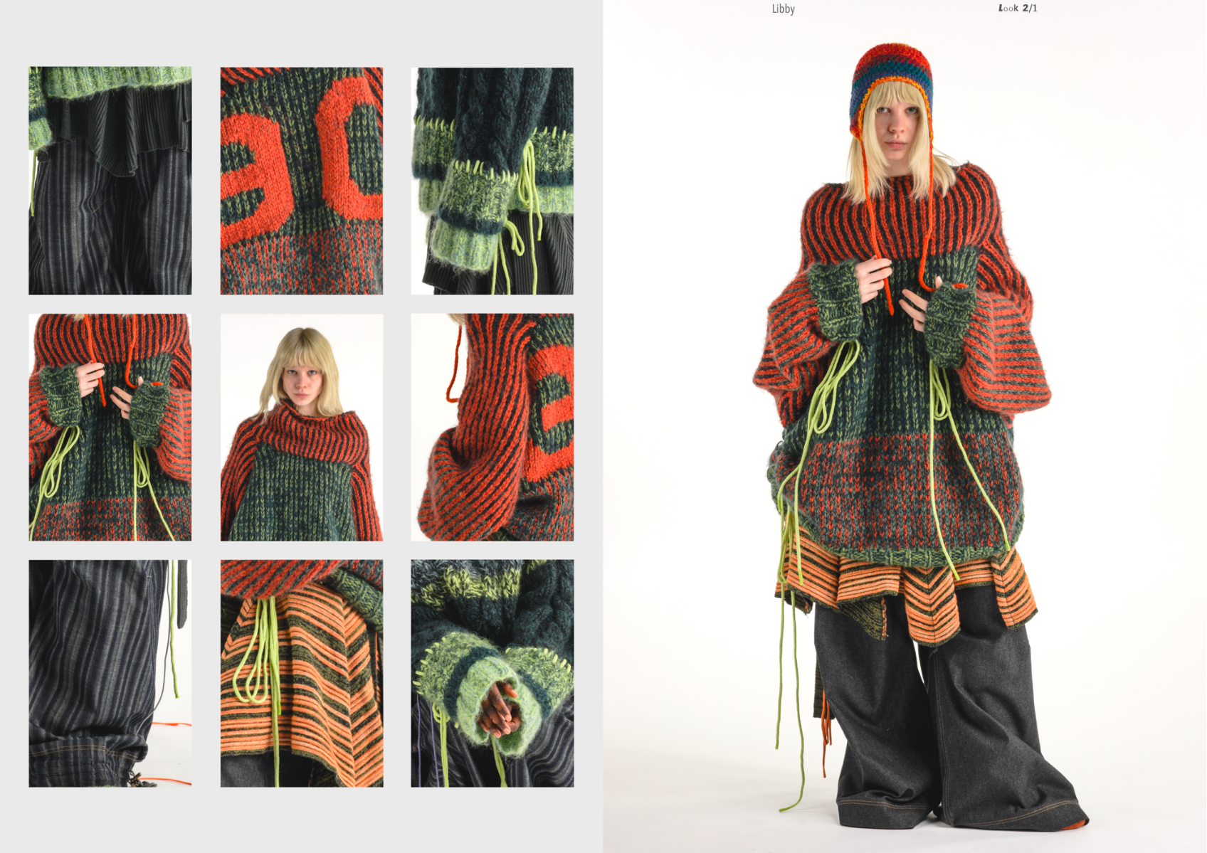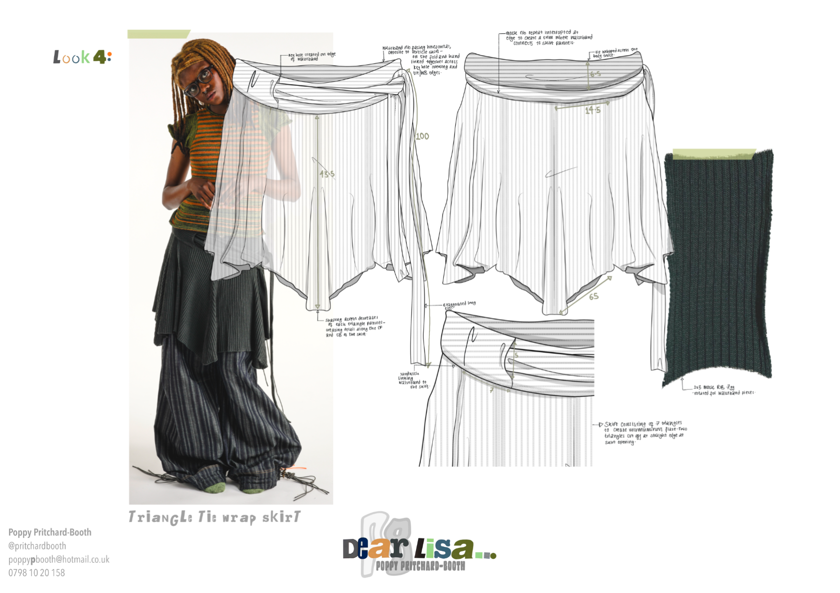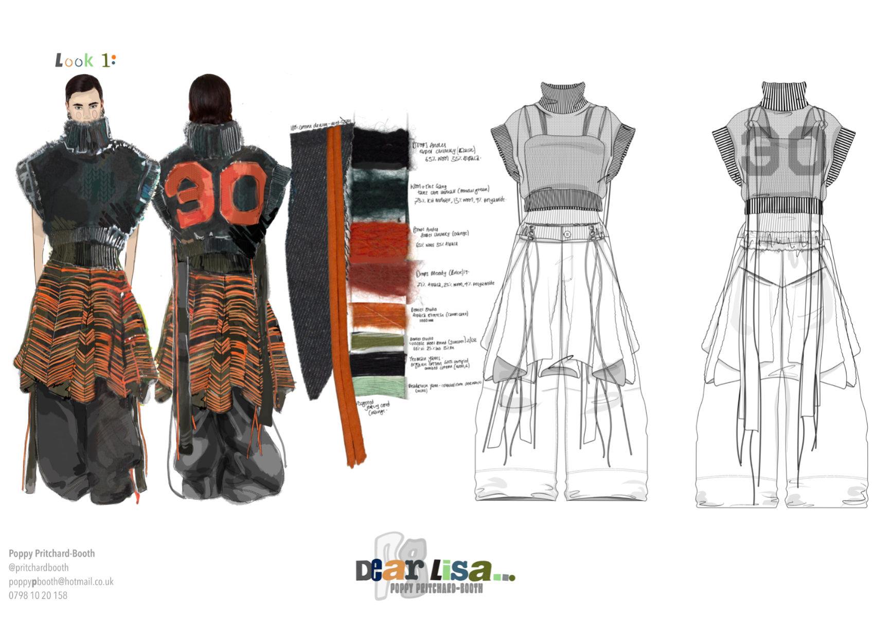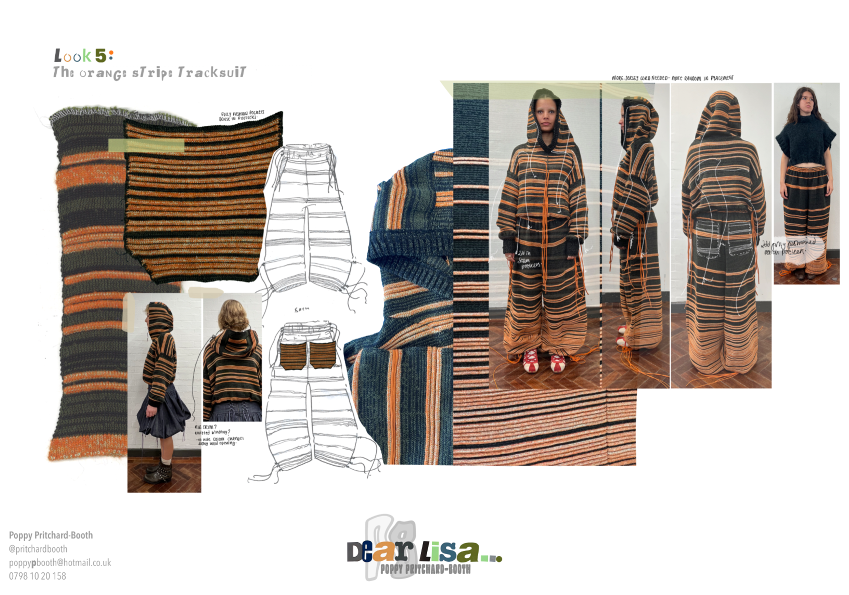 “Dear Lisa” draws on personal memory and the aesthetic of 90s and early 2000s New Age Travellers. Inspired by my mother's film photographs, keepsakes and the photography of Iain McKell and Wayne Jibbetts, the collection captures a raw, lived-in energy, layered clothing, firesides and festival moments. Earthy yet bold, the palette mixes multi-tonal, dirty but bold shades across oversized silhouettes and textured knits. Mohair contrasts with rounded matte yarns, paired with enlarged denims, creating pieces that feel worn-in, cherished and shaped by time rather than trend. A quiet tribute to my mother, “Dear Lisa” reflects her strength, her spirit and the world she passed on to me.