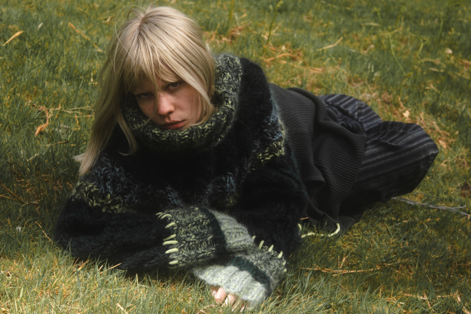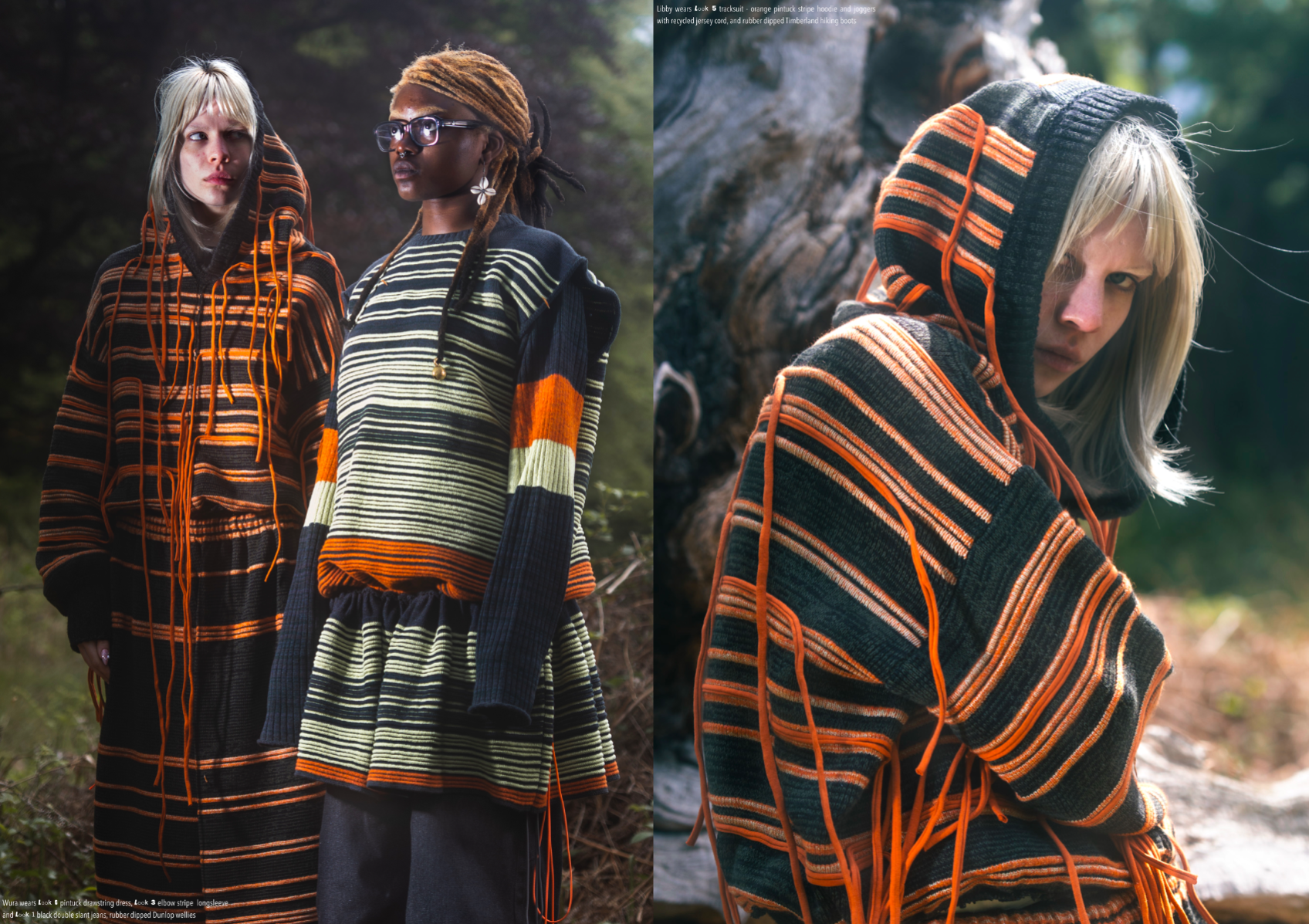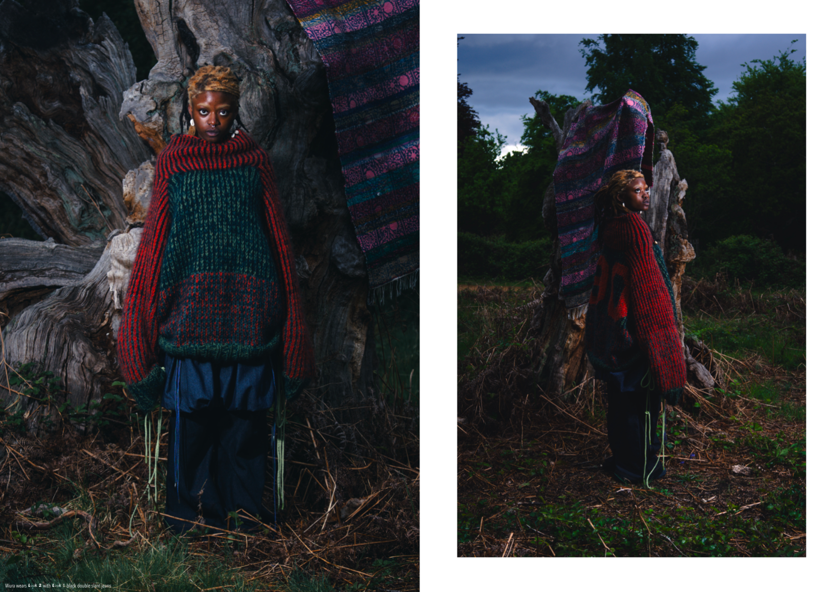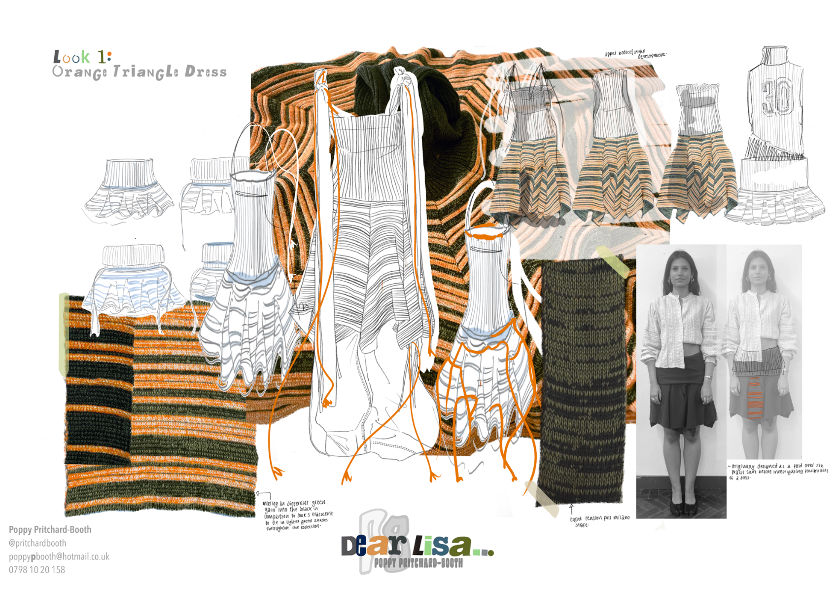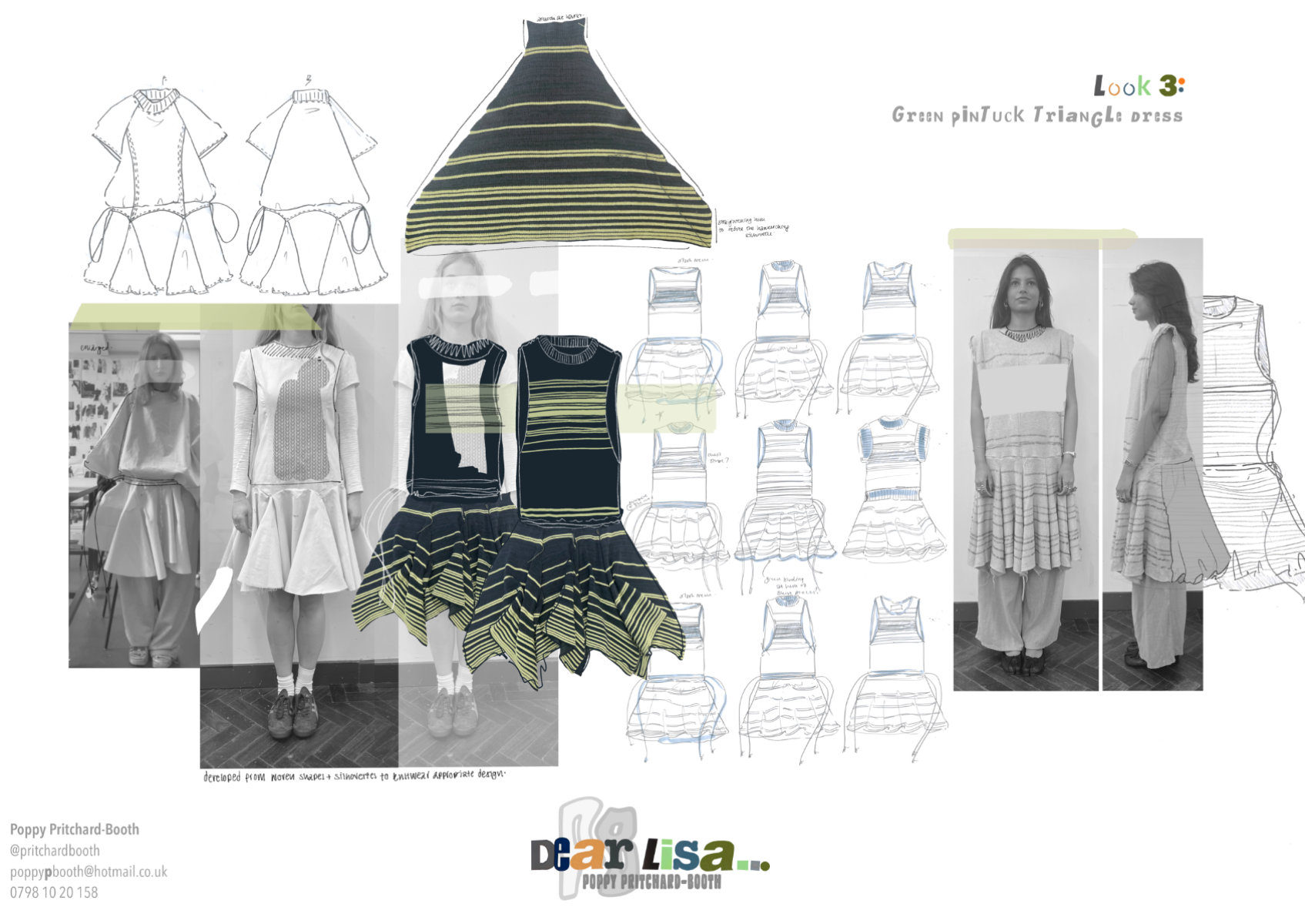 “Dear Lisa” draws on personal memory and the aesthetic of 90s and early 2000s New Age Travellers. Inspired by my mother's film photographs, keepsakes and the photography of Iain McKell and Wayne Jibbetts, the collection captures a raw, lived-in energy, layered clothing, firesides and festival moments. Earthy yet bold, the palette mixes multi-tonal, dirty but bold shades across oversized silhouettes and textured knits. Mohair contrasts with rounded matte yarns, paired with enlarged denims, creating pieces that feel worn-in, cherished and shaped by time rather than trend. A quiet tribute to my mother, “Dear Lisa” reflects her strength, her spirit and the world she passed on to me.