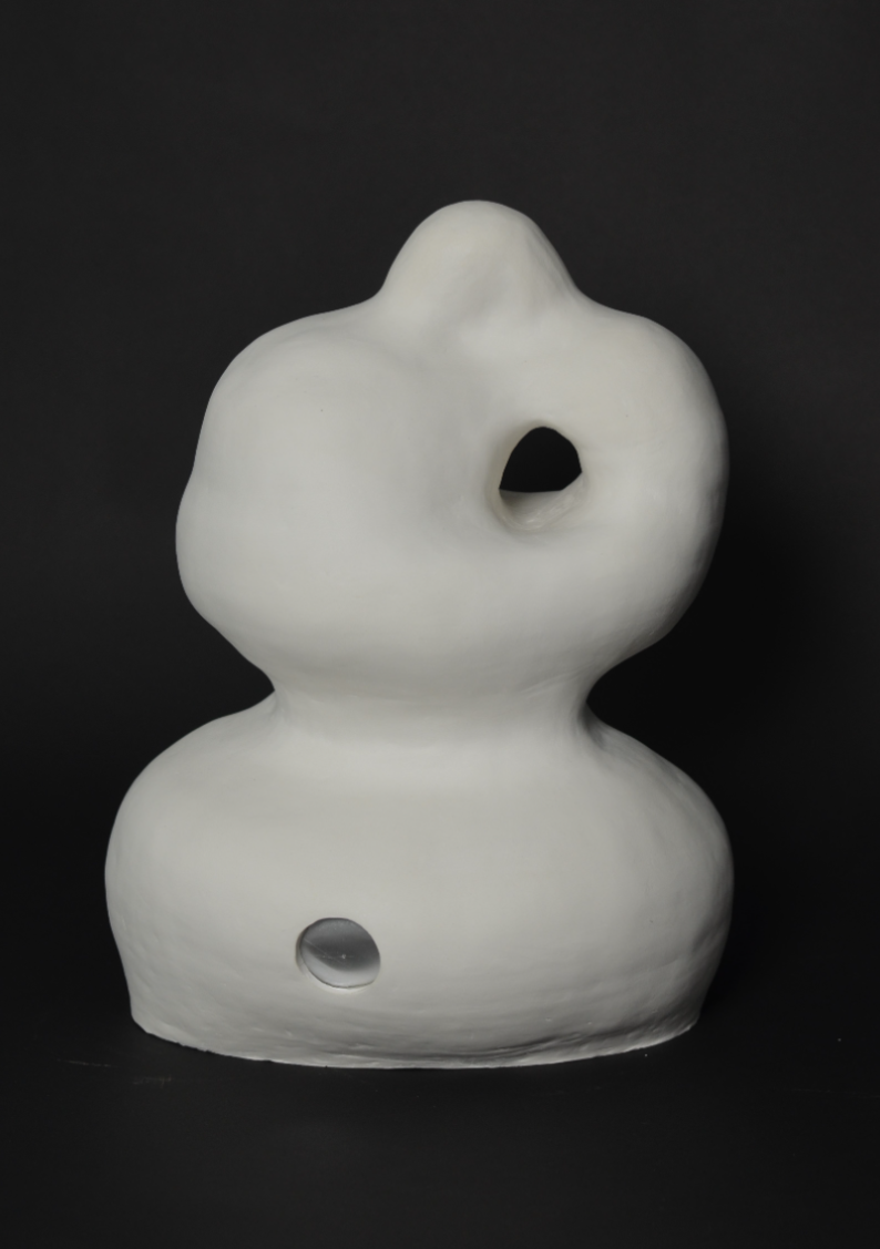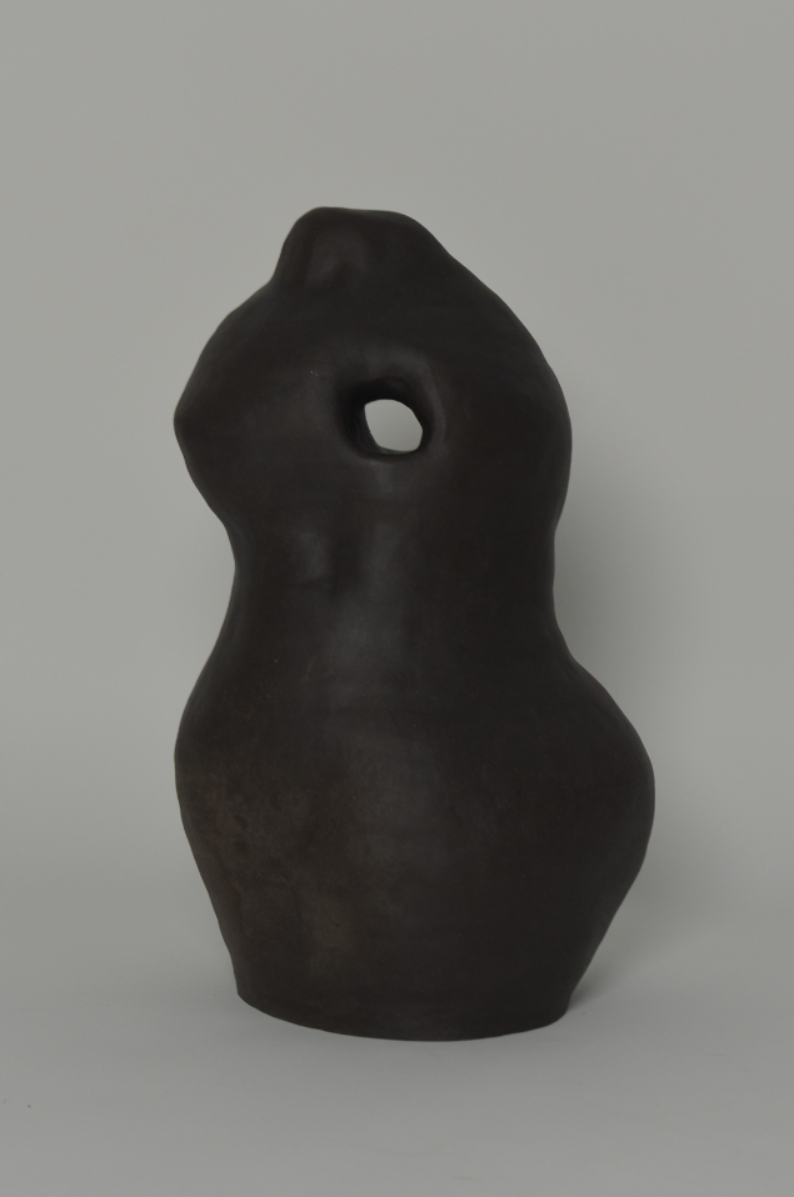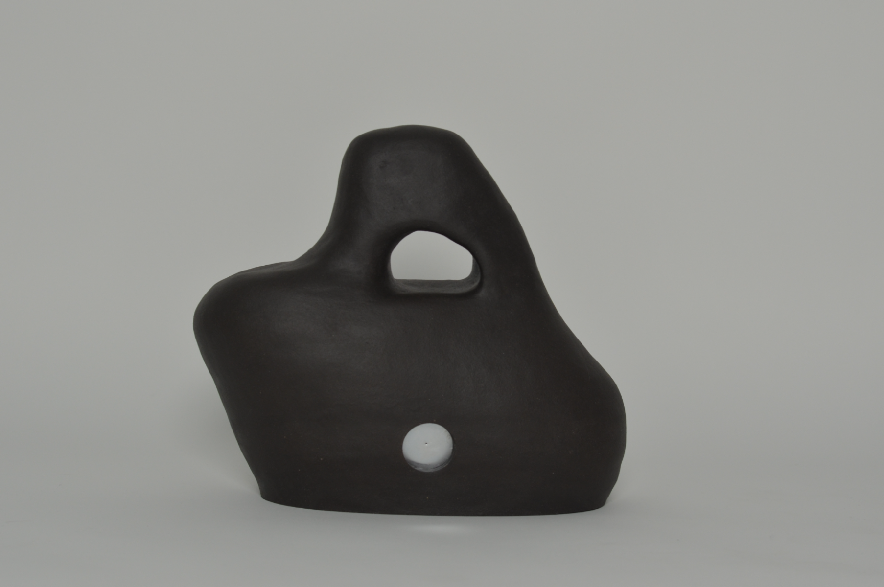 This body of work that I created in 2024 is concerned with the embodiment of power and uses ceramic pinhole cameras with the intention of (re)turning the gaze inwards in an effort to administer urgent therapy to the self. I created a series of 10 ceramic sculptures that doubled as pinhole cameras and 10 images that were taken by their corresponding camera. The pieces work together and contrast the view of the imagined self with the reality of its apparent and true form. The sculptures (cameras) and images were made to be viewed together but can also be viewed for their beauty separately. My process is one of hand building using coiling to create the sculptures that I have contrasted in the types of clay used, these being Porcelain and Charcoal clay giving them their opposing colourings. Then comes the daunting and long process of capturing the images from their mirrored sculptural forms using the method of experimental pinhole photography, which exposes onto photographic paper that sits inside the sculptures (cameras).