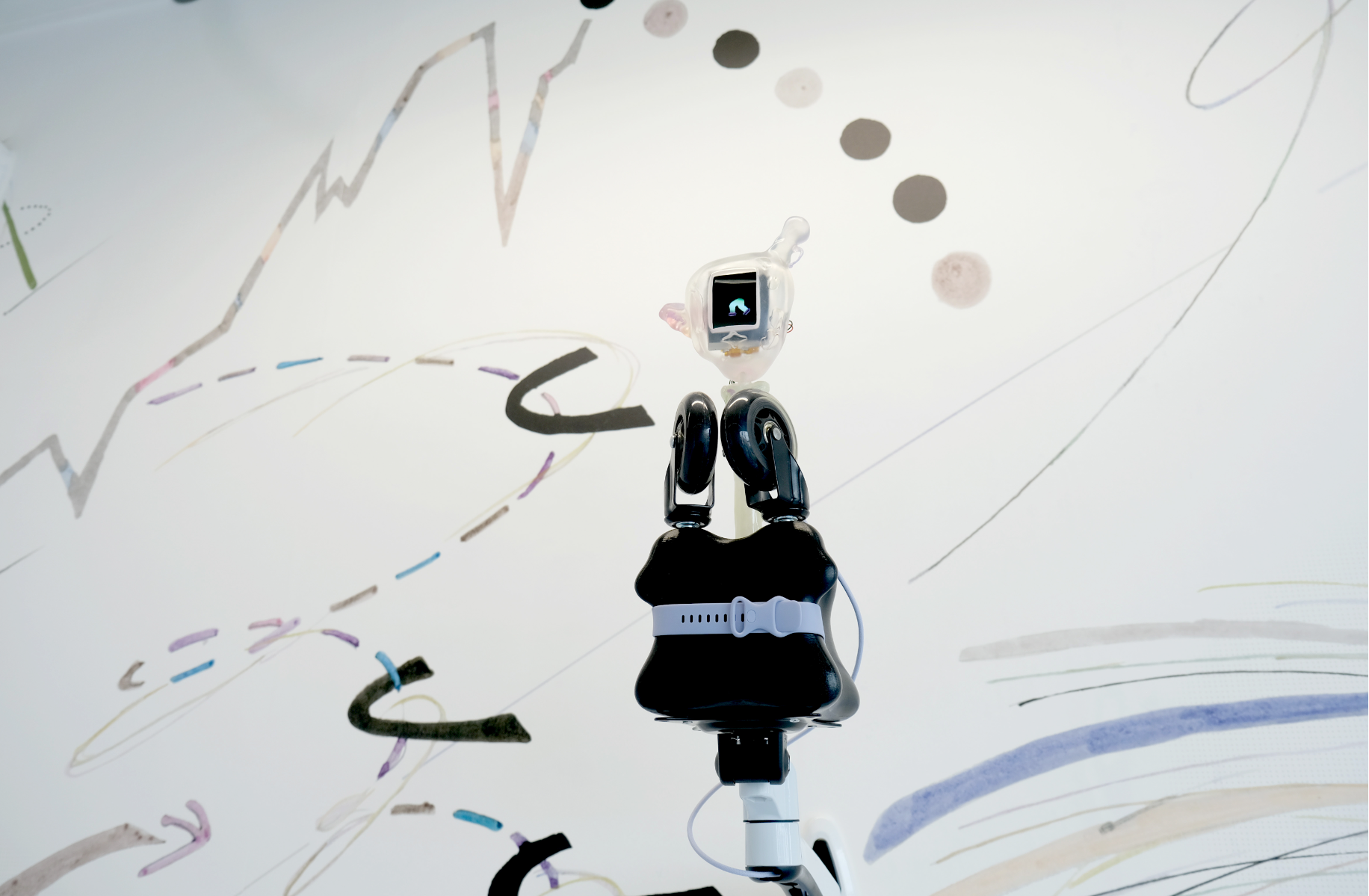 Personal technologies cling to the body: earphones to ears, phones to hands, humans and devices entangle as prosthetic extensions. No longer central, humans absorb machine-like traits, while technologies grow more “human.” Actions are shaped by interfaces, habits disciplined by design. In this hybrid coexistence, the tension of control unsettles perception and subjectivity, raising the question: if futures involve a shift of positions between human and nonhuman, how can subjectivity be reconfigured?