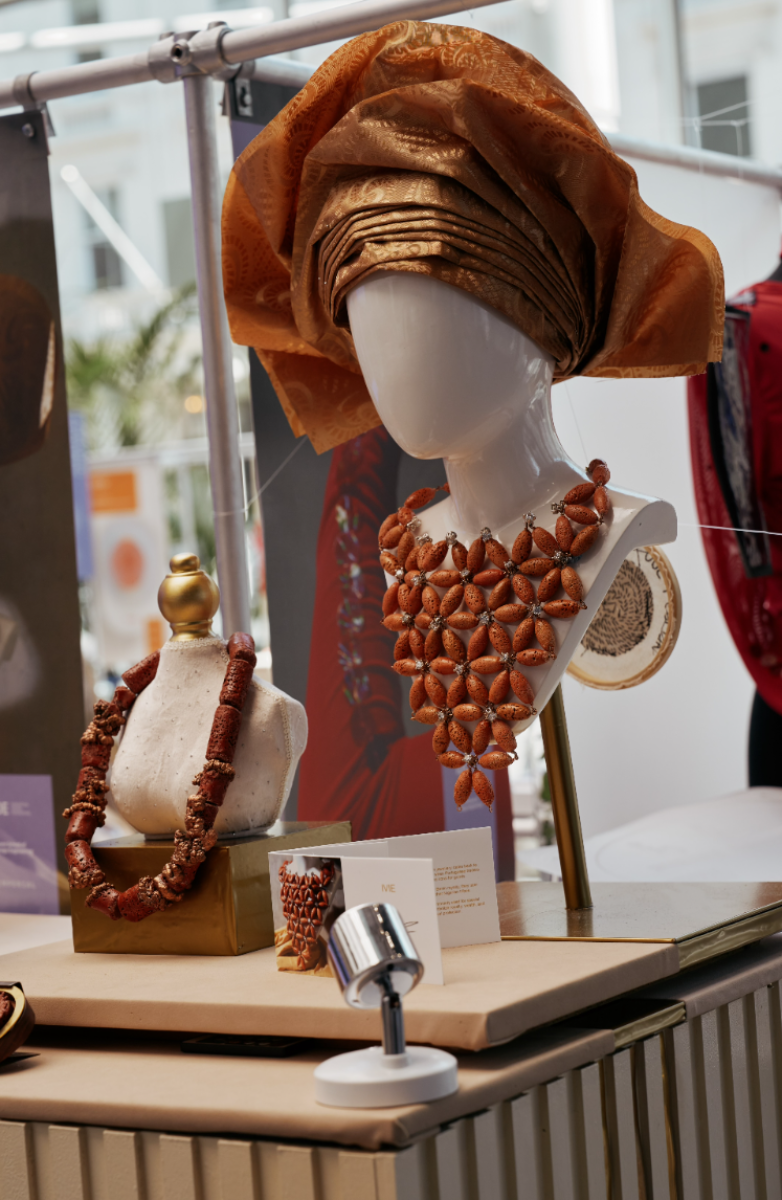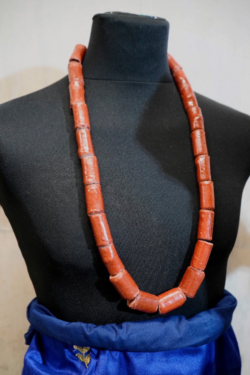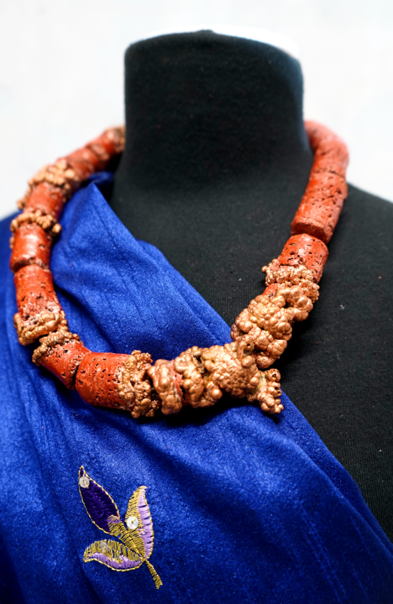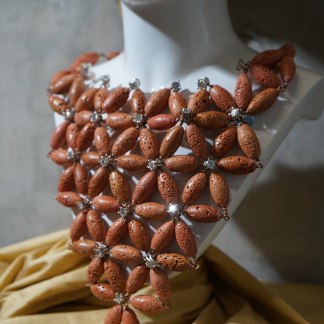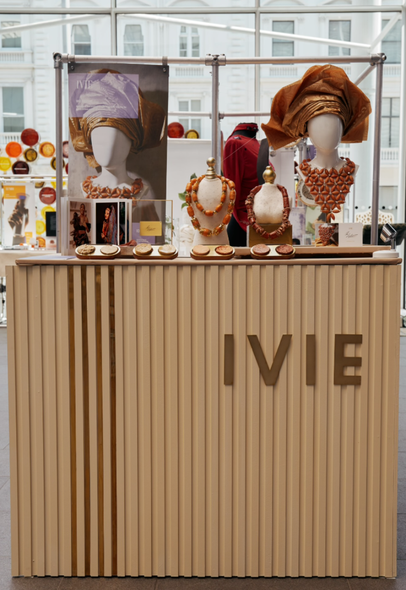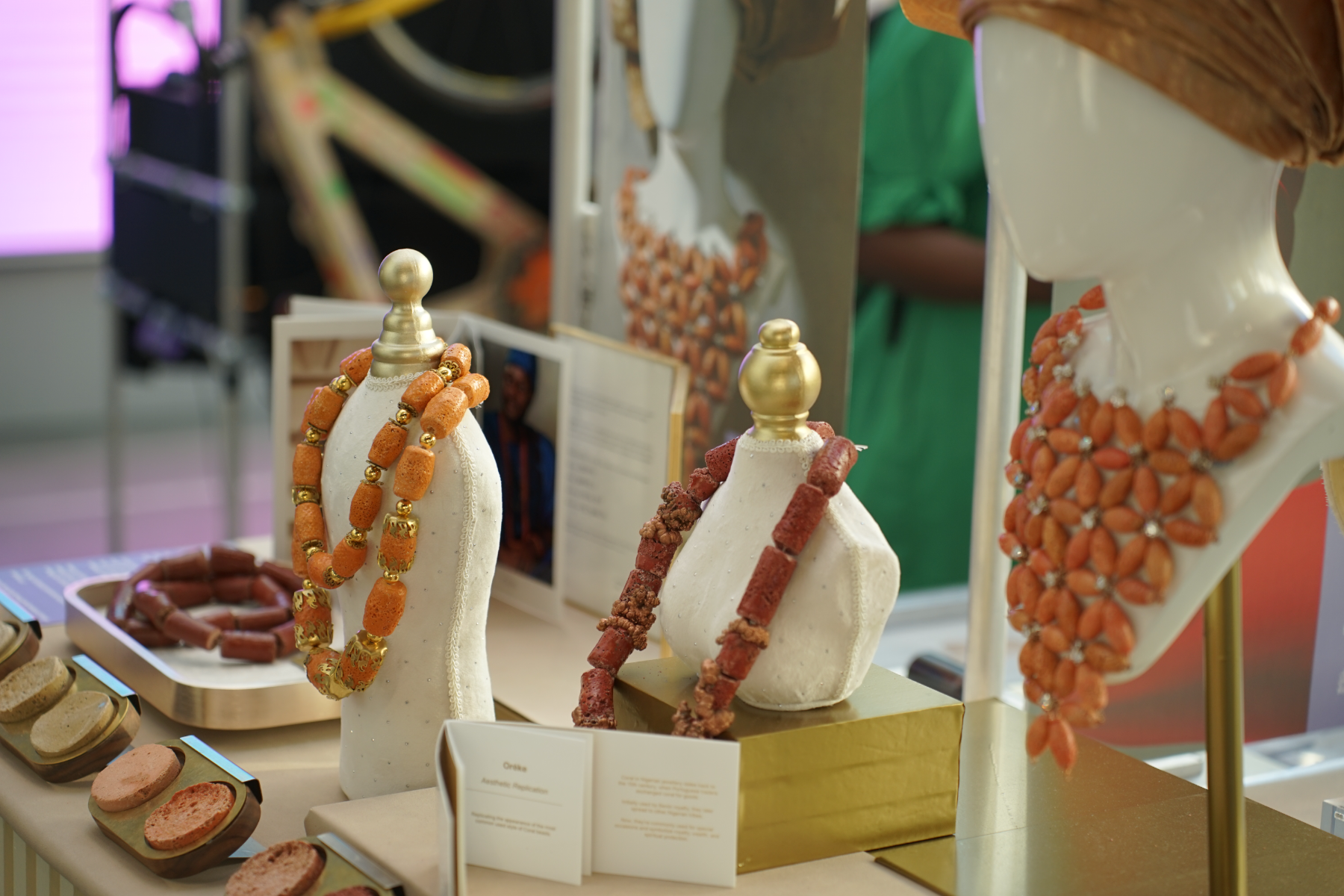 IVIE is a reimagining of Nigerian coral bead jewellery, fusing experimental manufacturing techniques with ecological and cultural lenses to bring forward positive change. The project introduces a novel biomaterial crafted from waste eggshells that authentically replicates the varying looks and symbolic significance of traditional coral beads while addressing the environmental cost of coral extraction and plastic alternatives. Furthermore, IVIE moves beyond material innovation into societal empowerment by decentralizing production and connecting waste collectors, rural tappers, artisans, and diaspora voices as co-creators of a new visual language. Each bead in the IVIE ecosystem is both an artifact and an agent, symbolically weaving together sustainability, tradition, and identity.