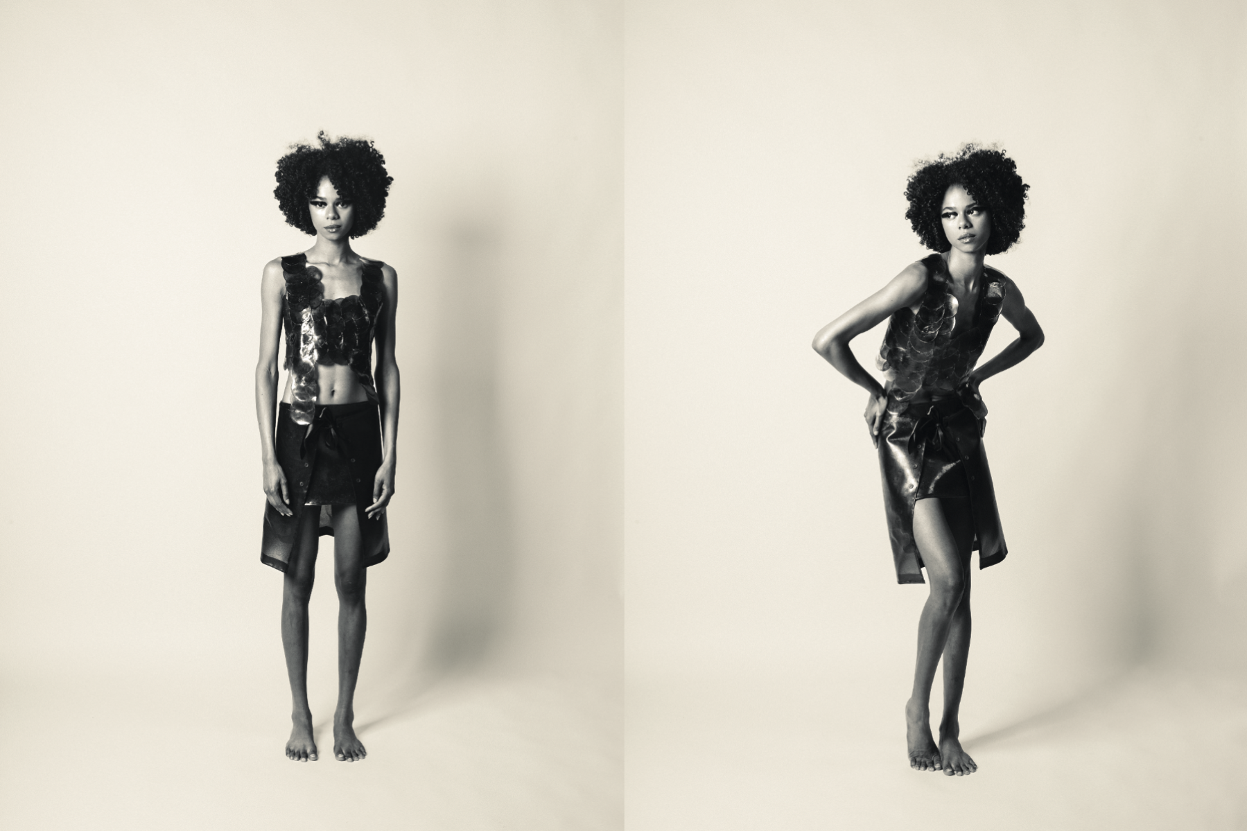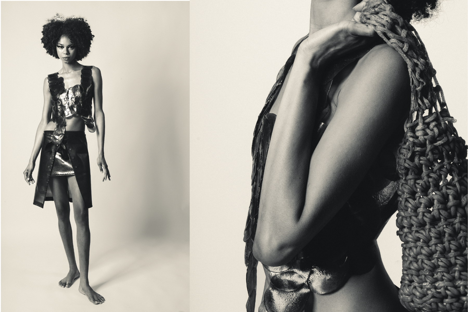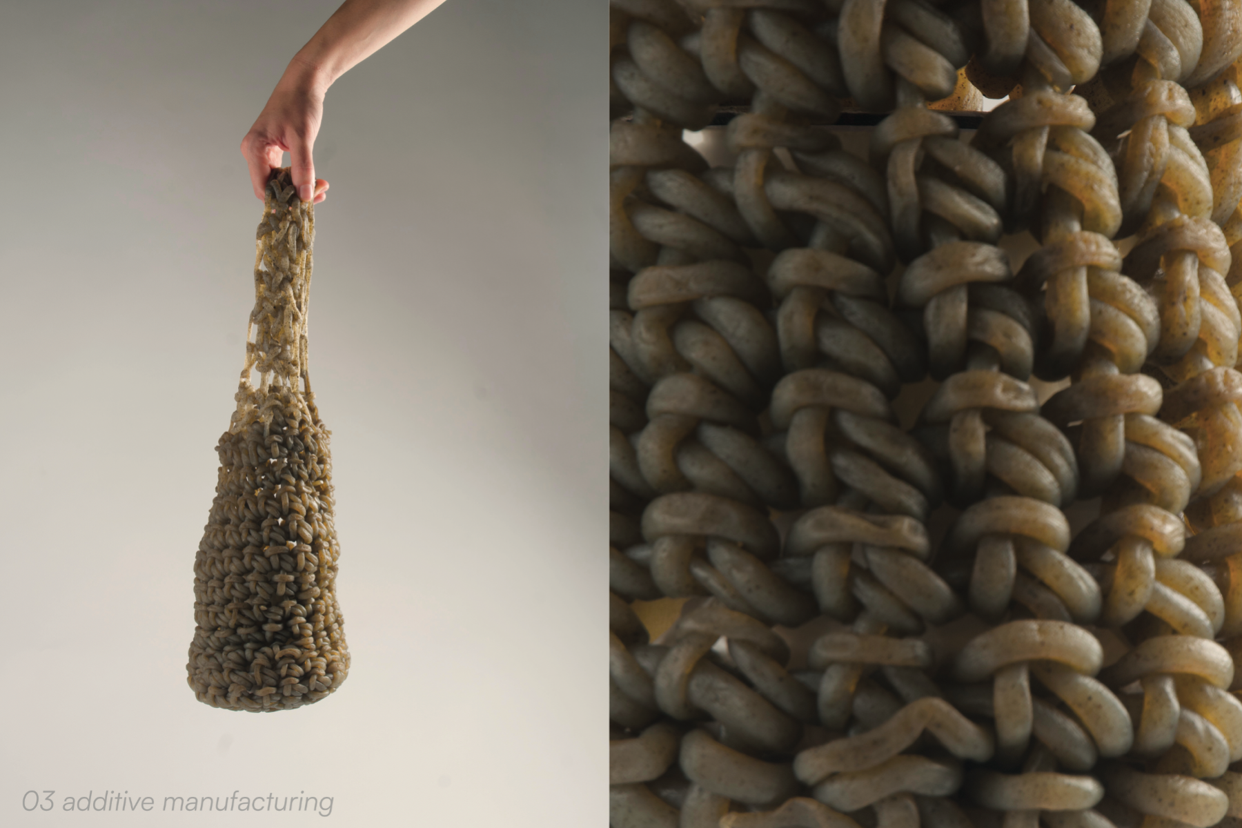 Okamurae is an environmental and economic proposal that addresses the problems caused by the invasive Asian algae Rugulopteryx okamurae in the Mediterranean Sea. This species has progressively invaded our coasts, generating social, cultural, ecological, and economic issues that directly affect biodiversity, tourism, and the fishing sector. This initiative proposes transforming the algae into a useful biomaterial through its collection and study, resulting in a collection composed of three fabrics. The two main fabrics are classified as non-woven materials, where the biomaterial itself has been shaped into its final form. Additionally, an accessory has been created using a biomaterial filament with additive manufacturing. This innovative fabric design promotes a circular economy, sustainability, water purification, and the restoration of affected marine ecosystems (SDGs).
