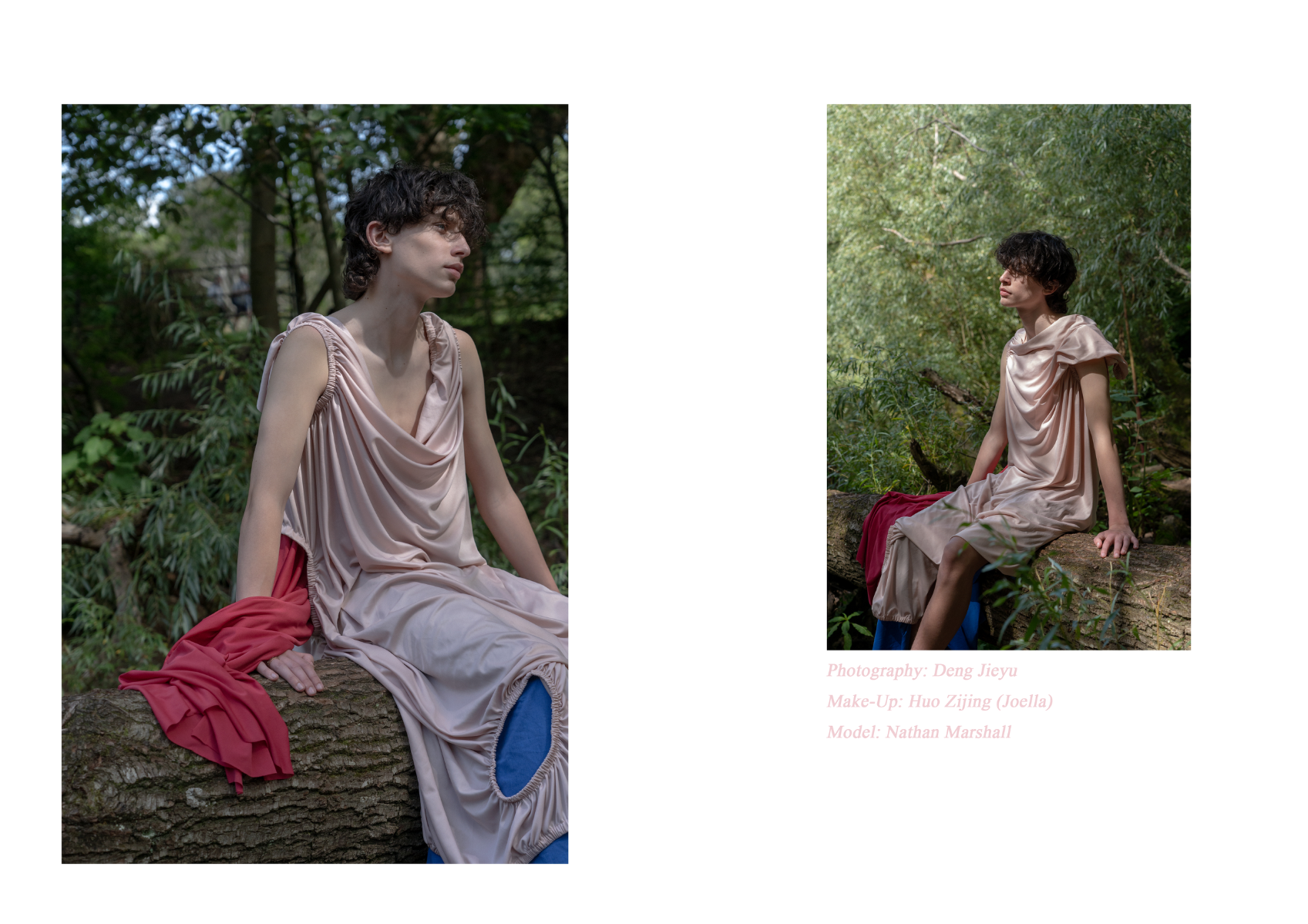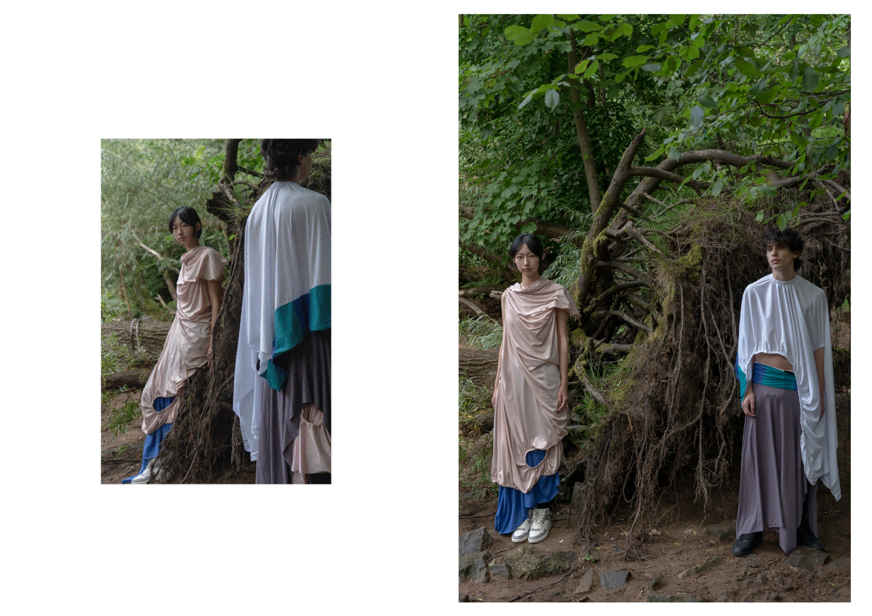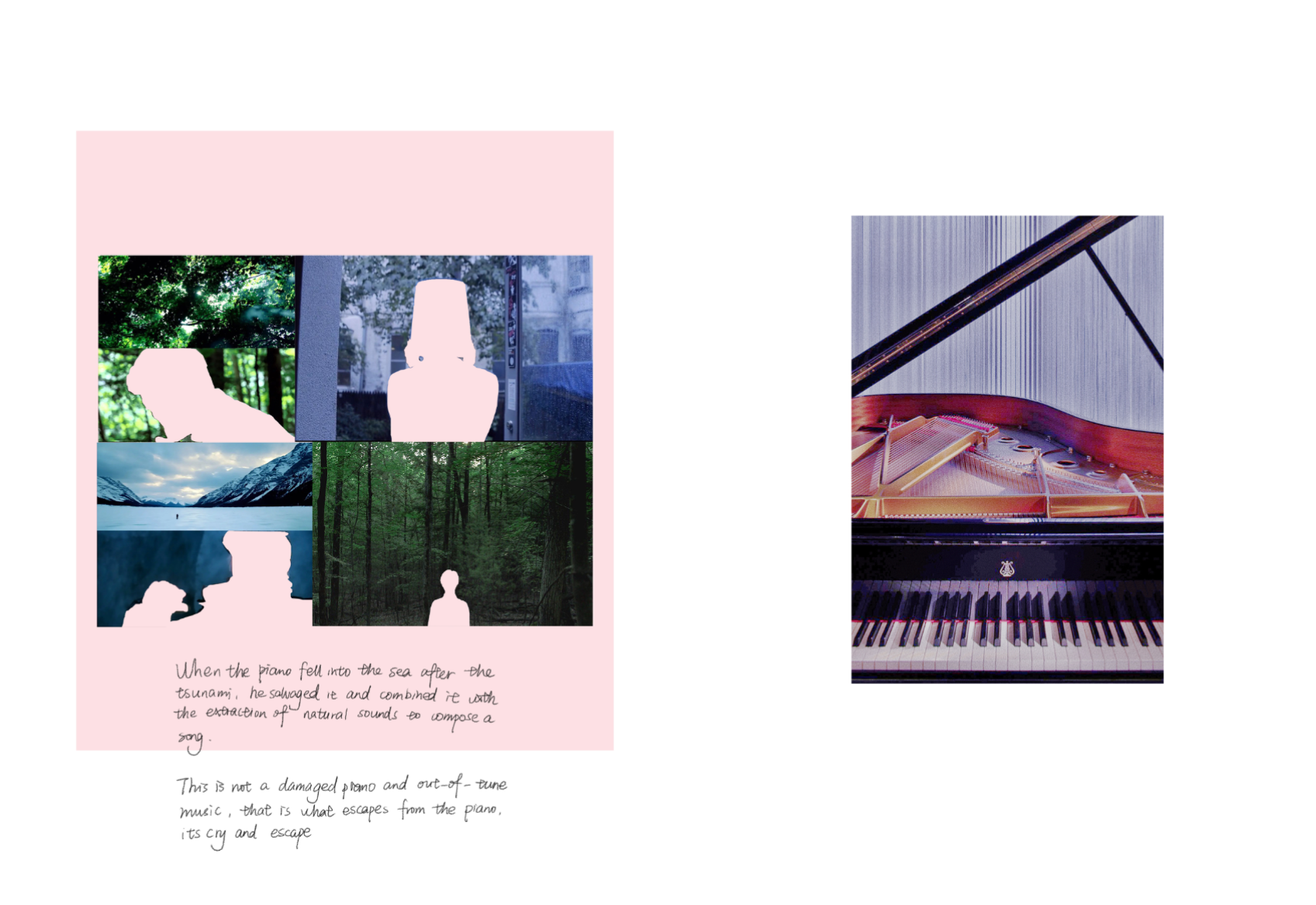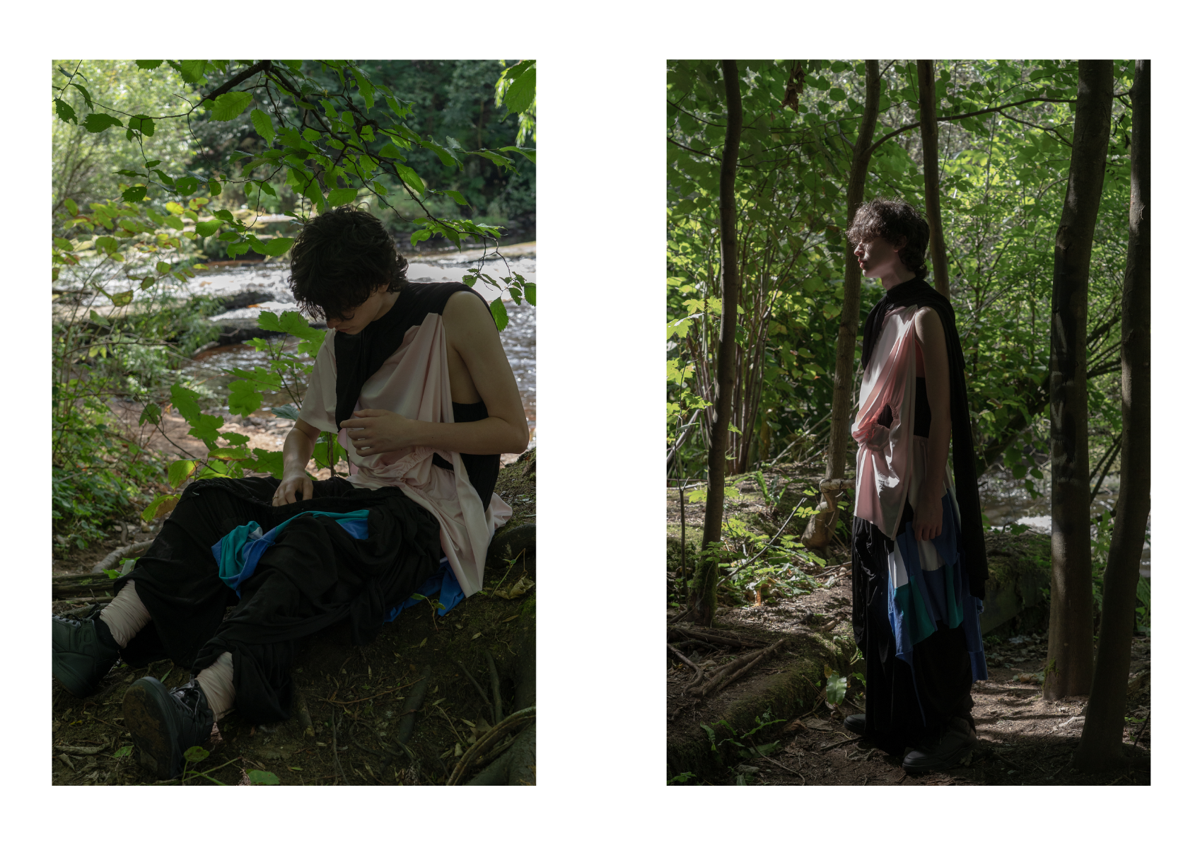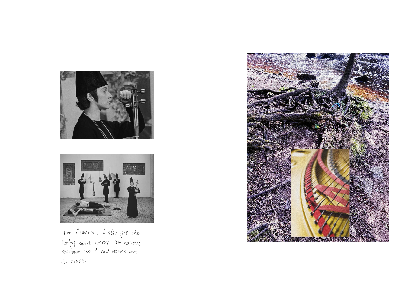 The seed of this collection grew while listening to the melancholic purity of Armenian music. It made me think of the documentary 'Coda' by Ryuichi Sakamoto where he plays ambient and soothing music on a broken piano which had been submerged under water after the Japanese tsunami of 2011 and had, in his words, been "re-tuned by nature". My research compared the inner workings of a damaged piano with that of a dented soul which I contrasted with elements of Armenian costume. Through my fabric choices and cutting techniques, I hope to have achieved clothing that has an emotional connection with the wearer and is similarly atmospheric, gentle and relaxing.