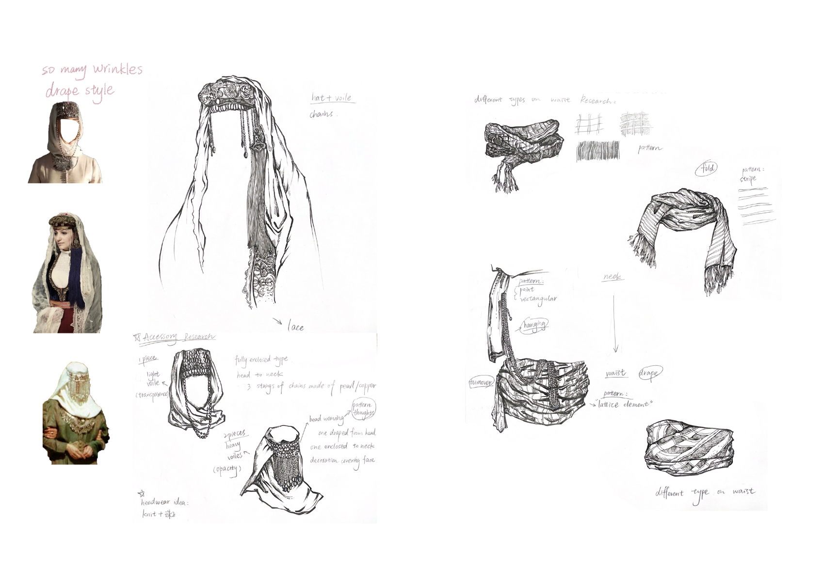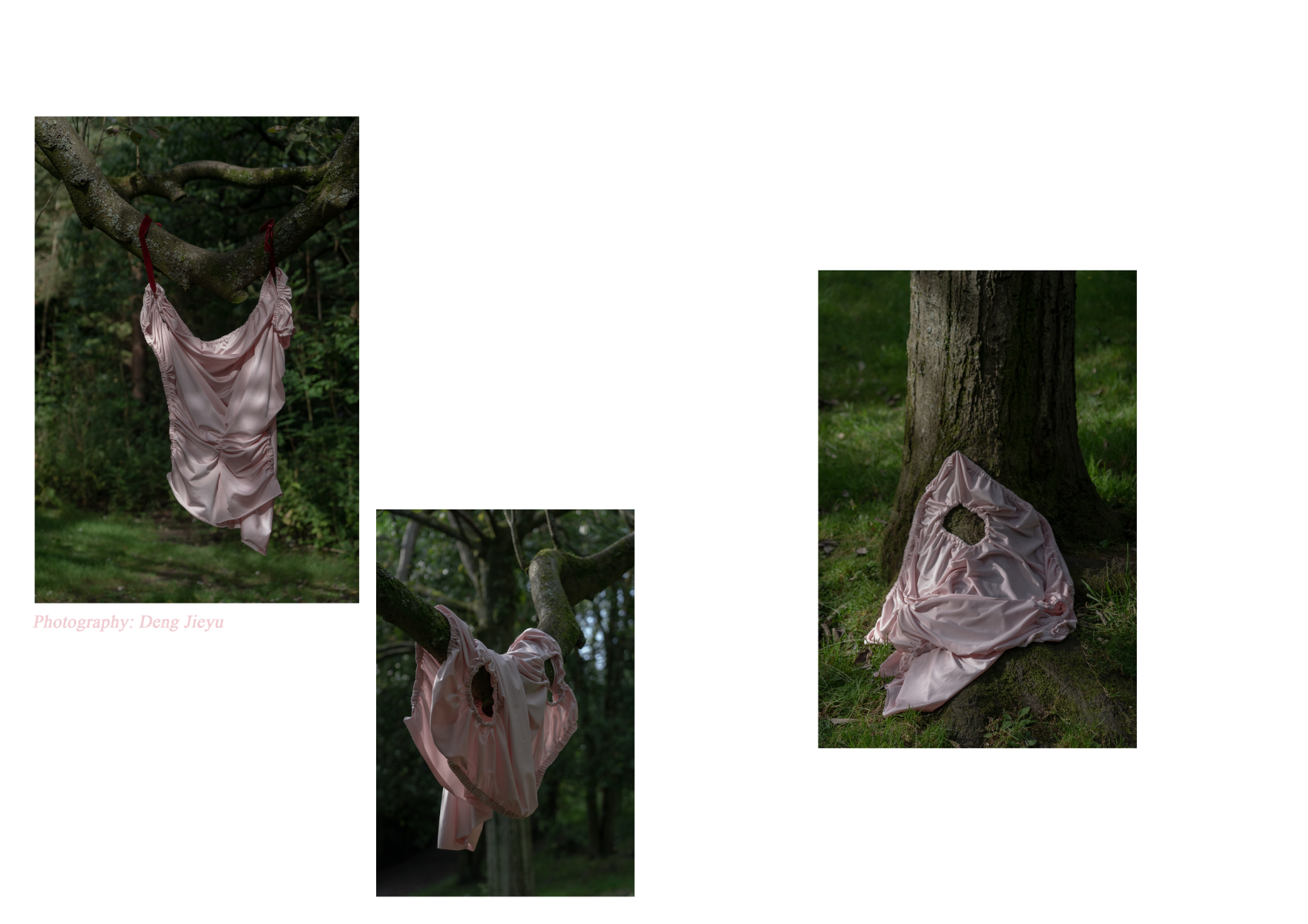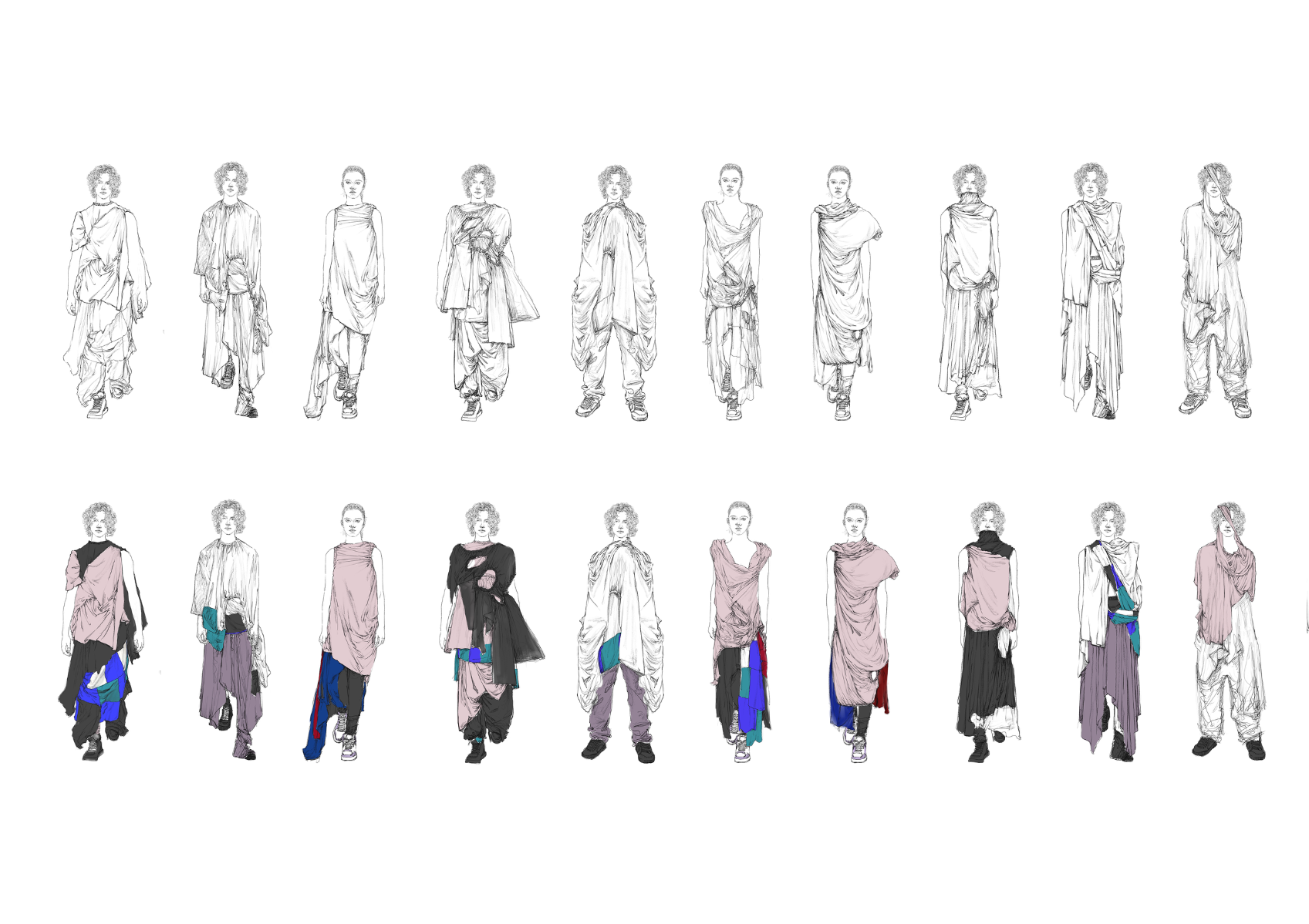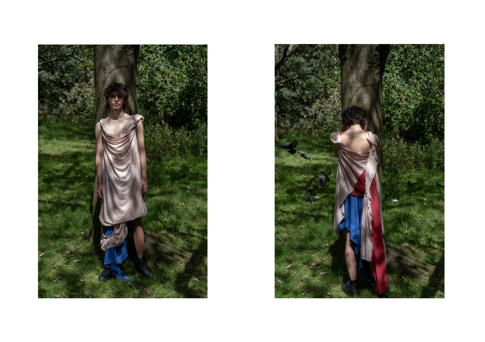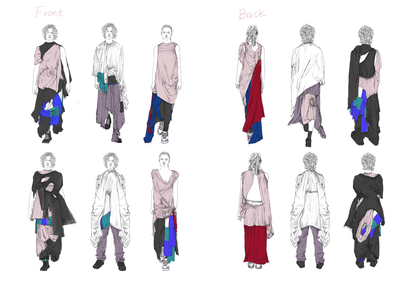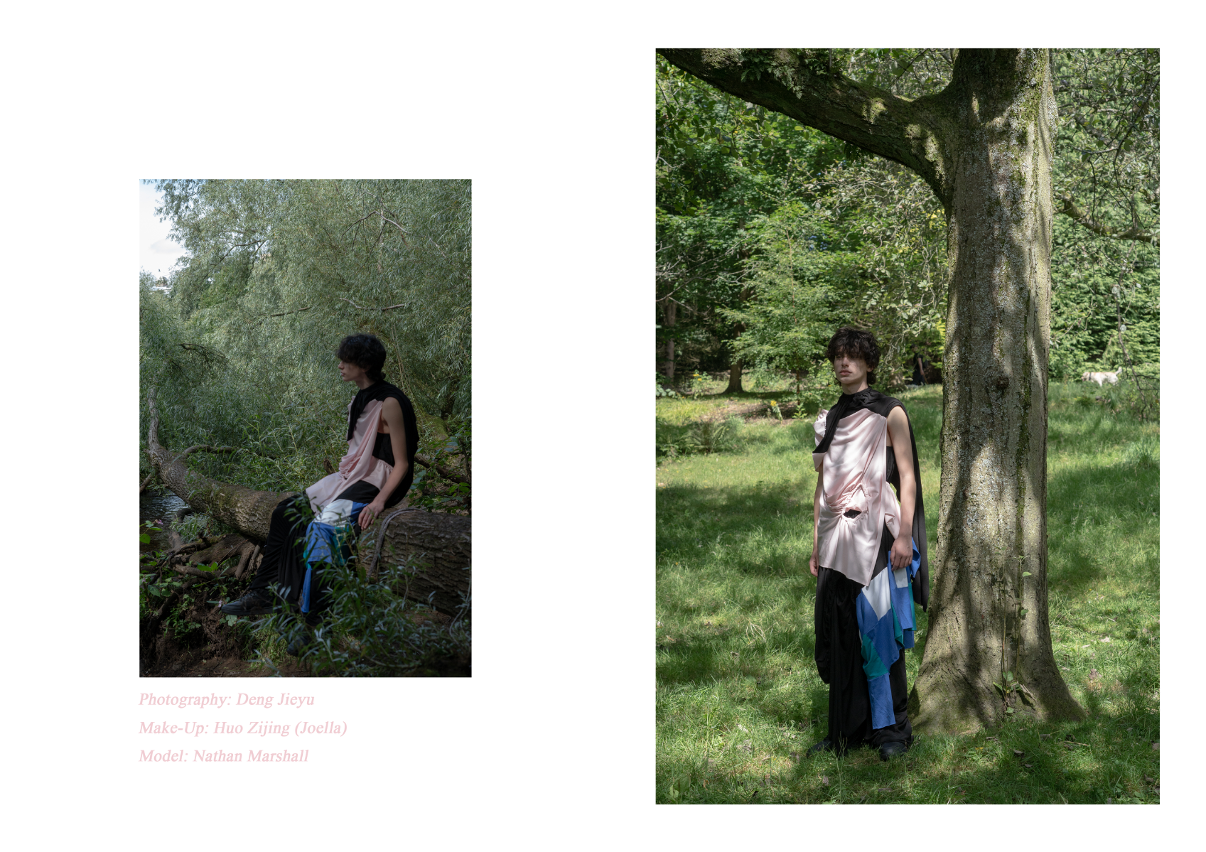 The seed of this collection grew while listening to the melancholic purity of Armenian music. It made me think of the documentary 'Coda' by Ryuichi Sakamoto where he plays ambient and soothing music on a broken piano which had been submerged under water after the Japanese tsunami of 2011 and had, in his words, been "re-tuned by nature". My research compared the inner workings of a damaged piano with that of a dented soul which I contrasted with elements of Armenian costume. Through my fabric choices and cutting techniques, I hope to have achieved clothing that has an emotional connection with the wearer and is similarly atmospheric, gentle and relaxing.