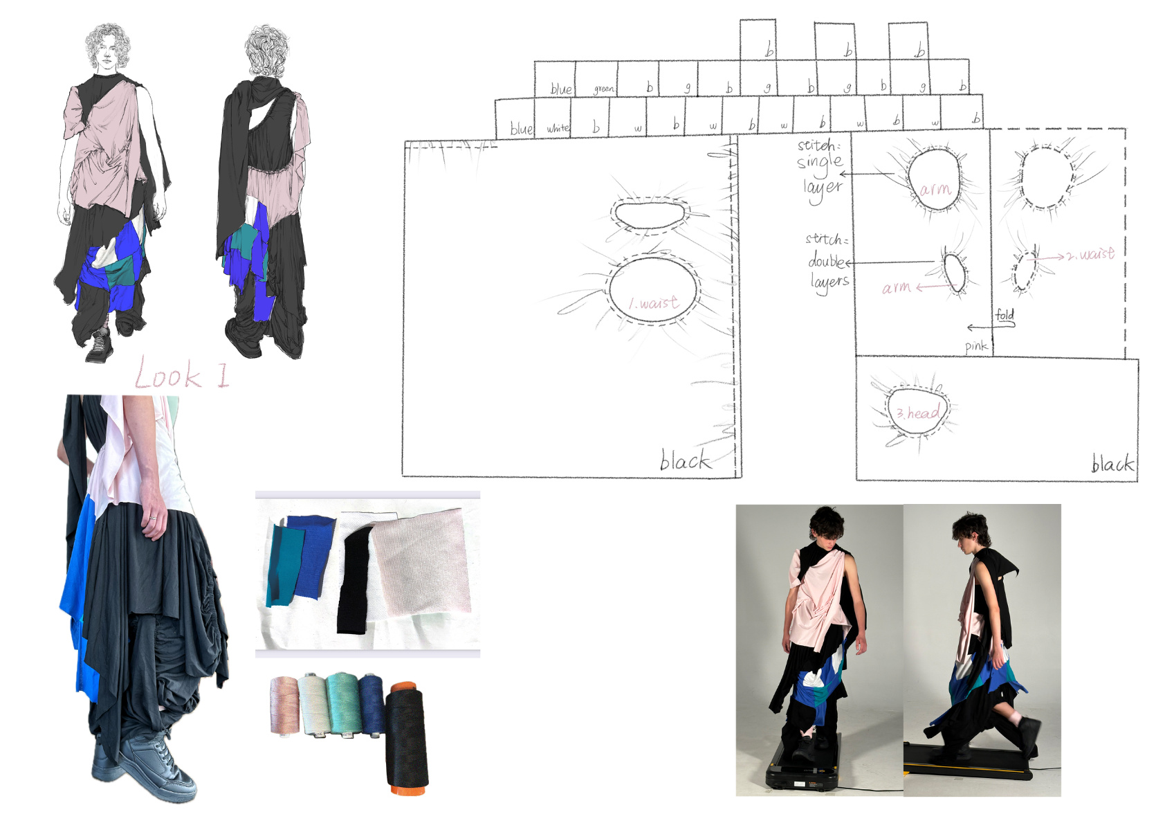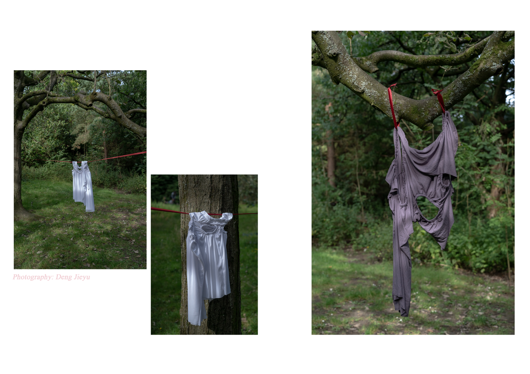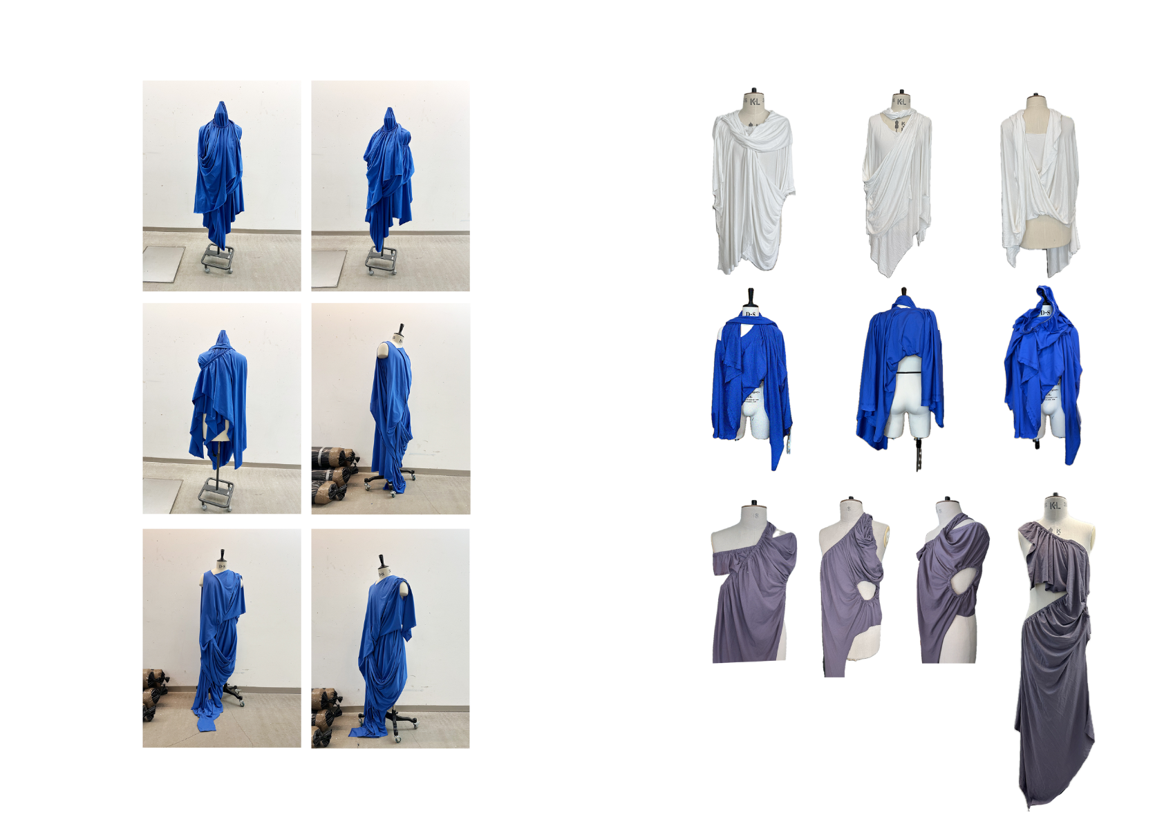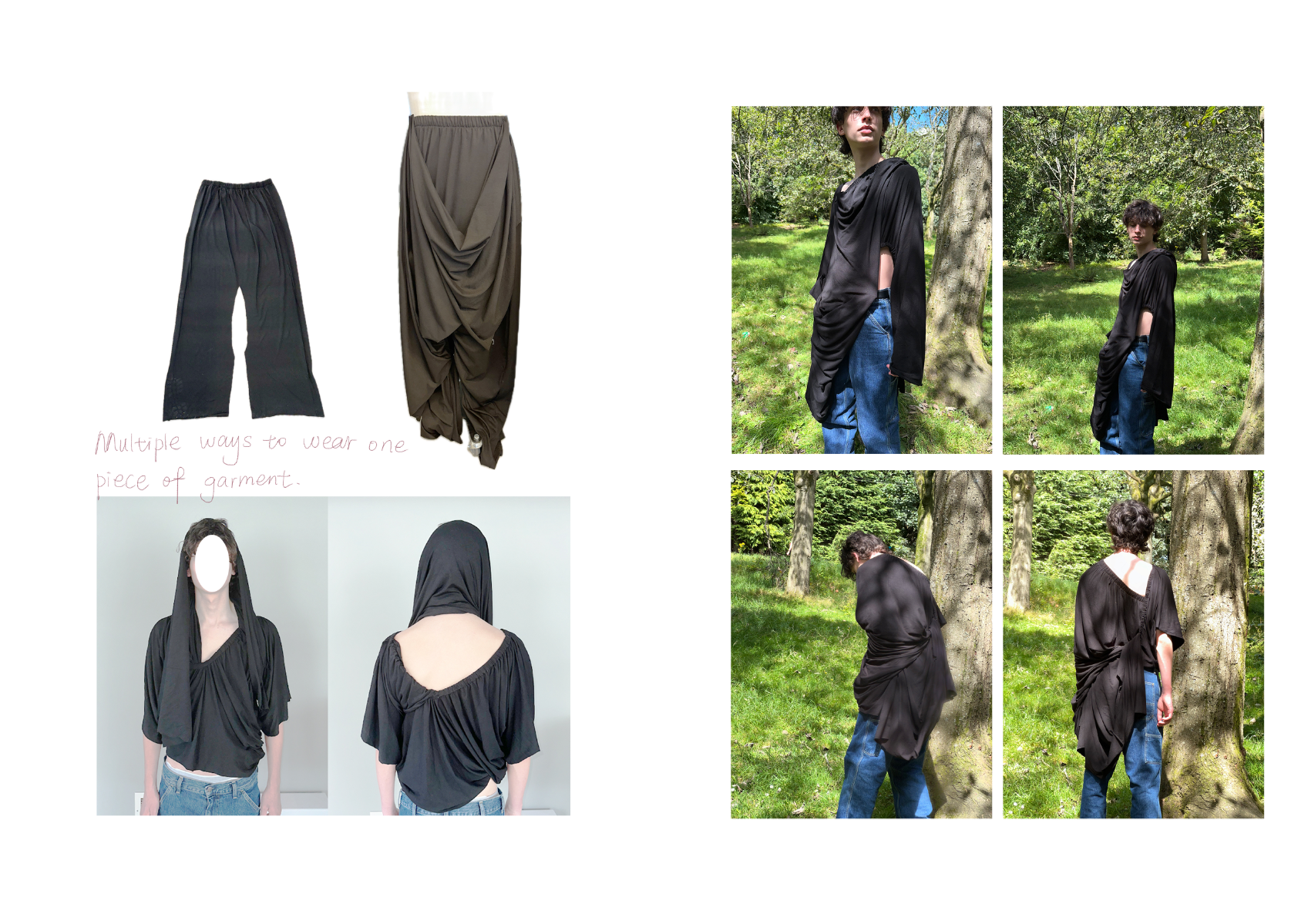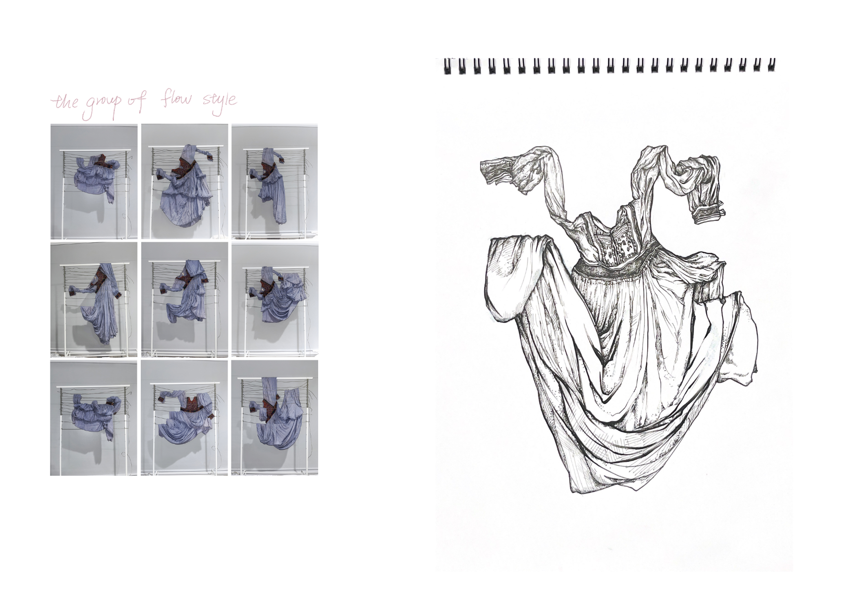 The seed of this collection grew while listening to the melancholic purity of Armenian music. It made me think of the documentary 'Coda' by Ryuichi Sakamoto where he plays ambient and soothing music on a broken piano which had been submerged under water after the Japanese tsunami of 2011 and had, in his words, been "re-tuned by nature". My research compared the inner workings of a damaged piano with that of a dented soul which I contrasted with elements of Armenian costume. Through my fabric choices and cutting techniques, I hope to have achieved clothing that has an emotional connection with the wearer and is similarly atmospheric, gentle and relaxing.