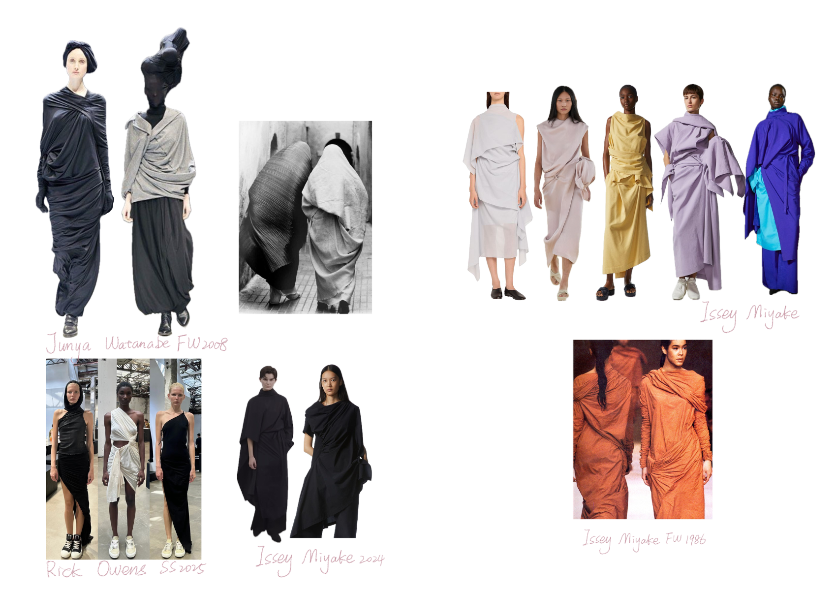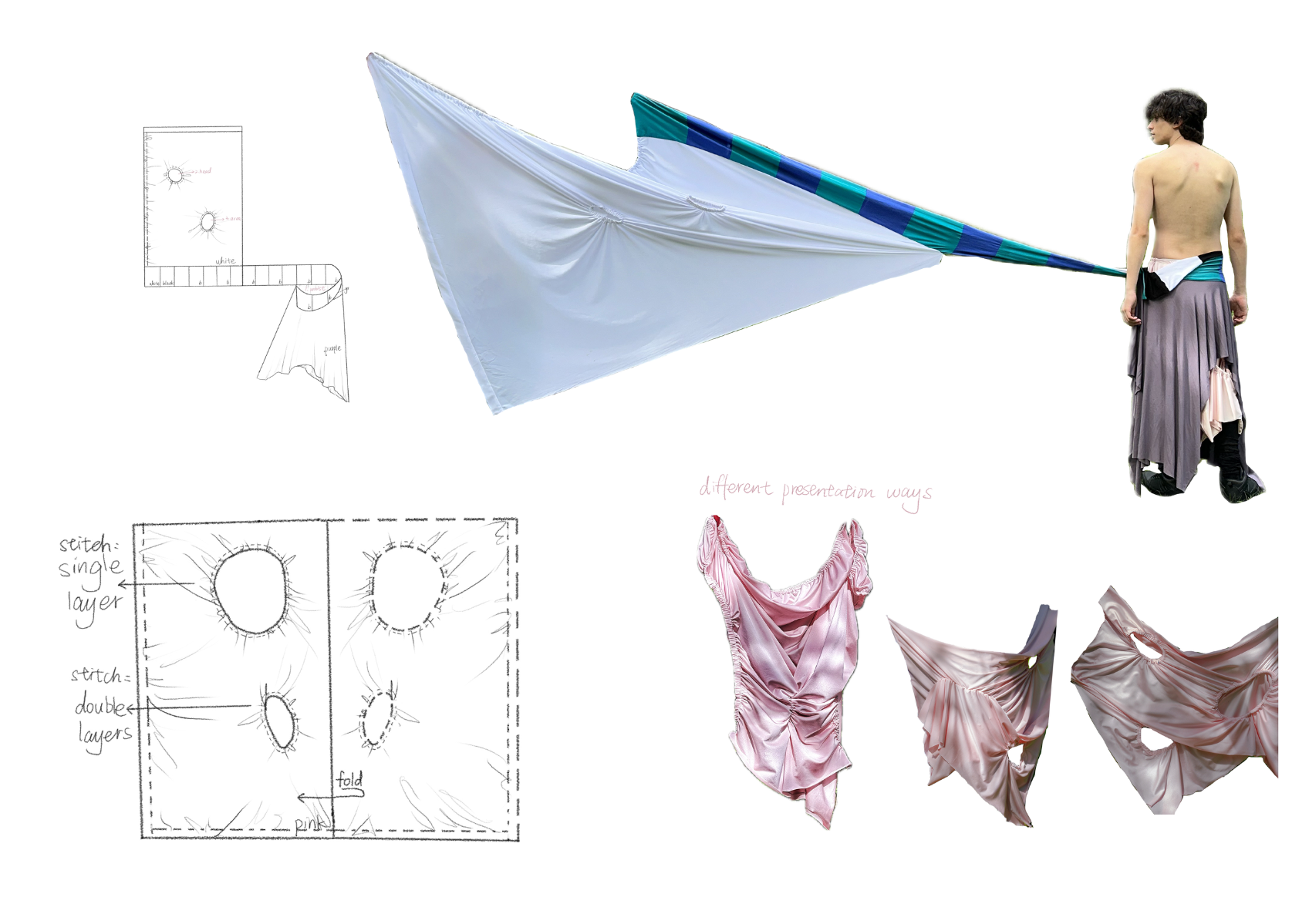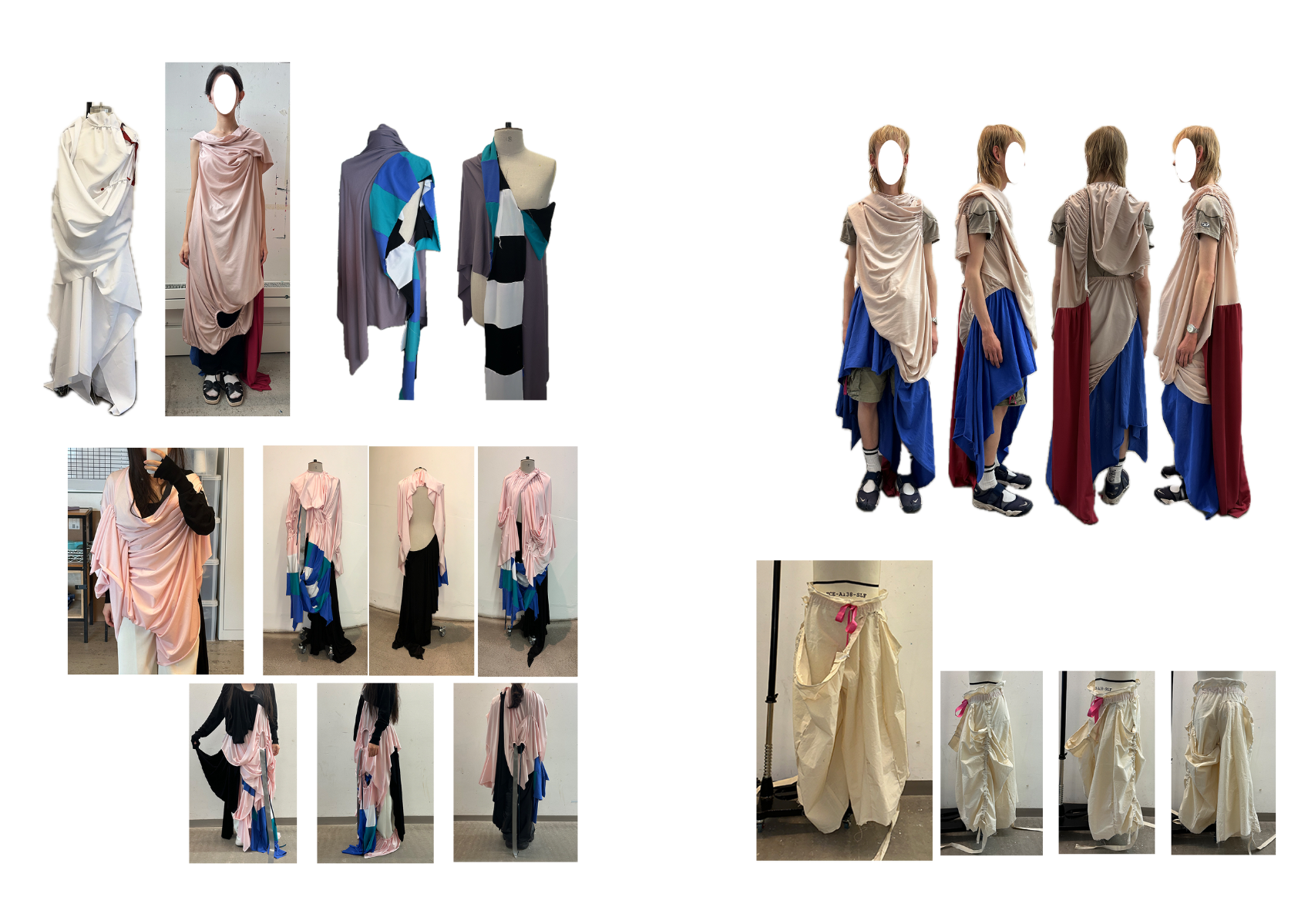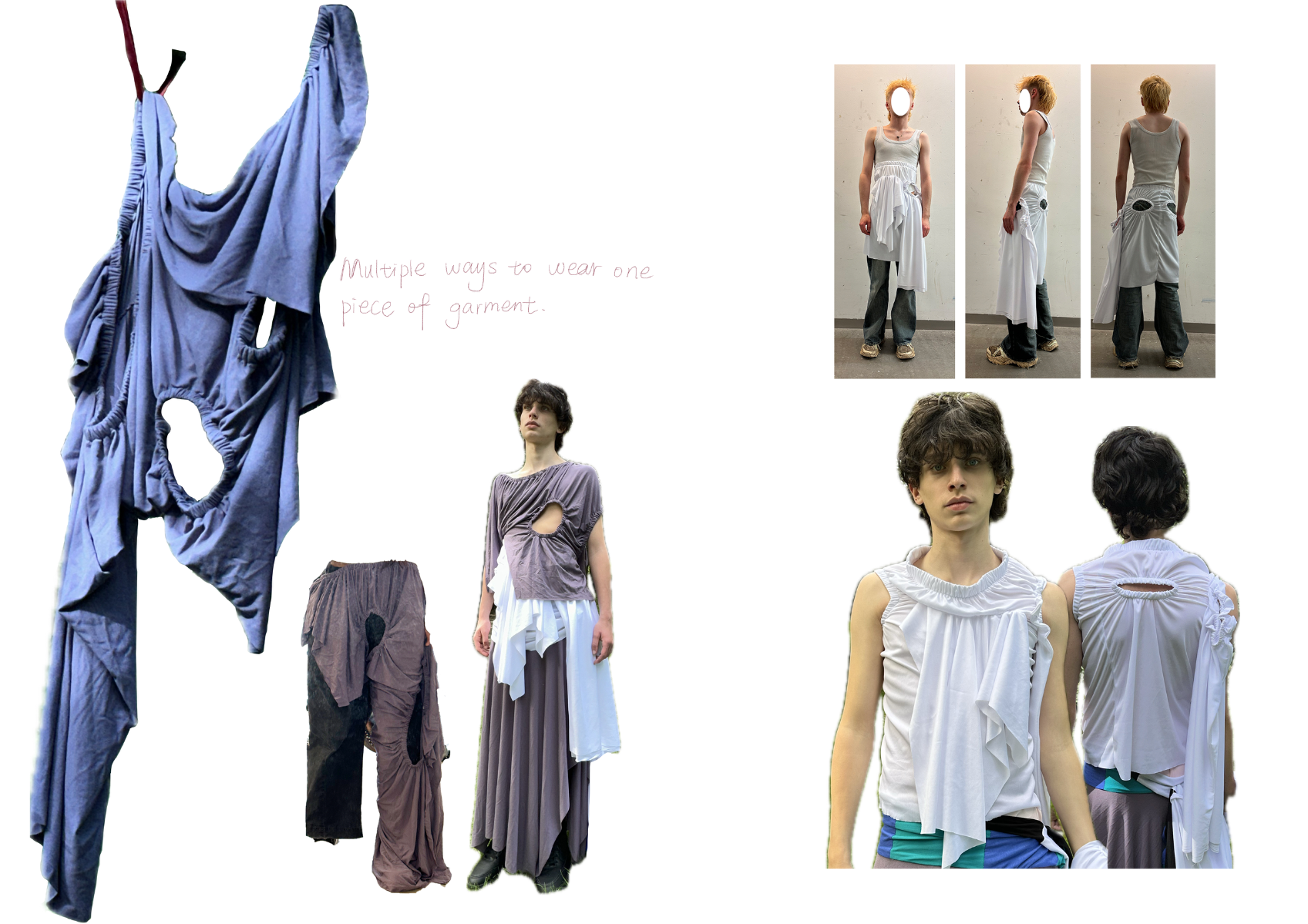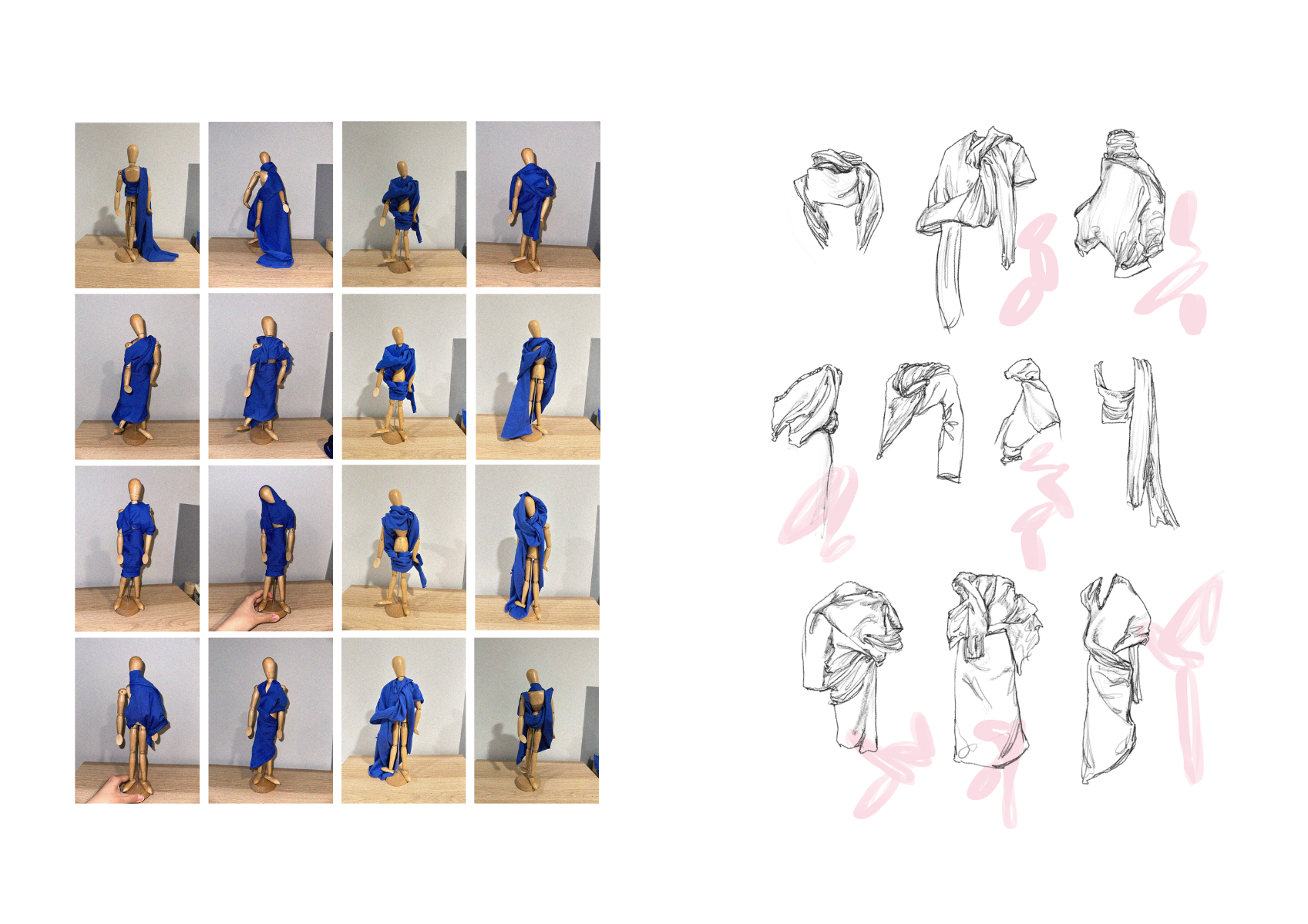 The seed of this collection grew while listening to the melancholic purity of Armenian music. It made me think of the documentary 'Coda' by Ryuichi Sakamoto where he plays ambient and soothing music on a broken piano which had been submerged under water after the Japanese tsunami of 2011 and had, in his words, been "re-tuned by nature". My research compared the inner workings of a damaged piano with that of a dented soul which I contrasted with elements of Armenian costume. Through my fabric choices and cutting techniques, I hope to have achieved clothing that has an emotional connection with the wearer and is similarly atmospheric, gentle and relaxing.