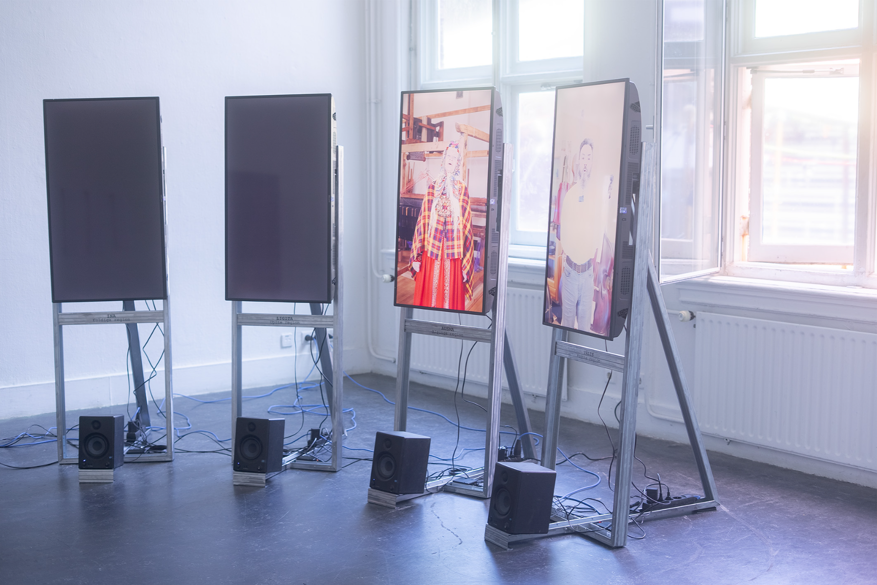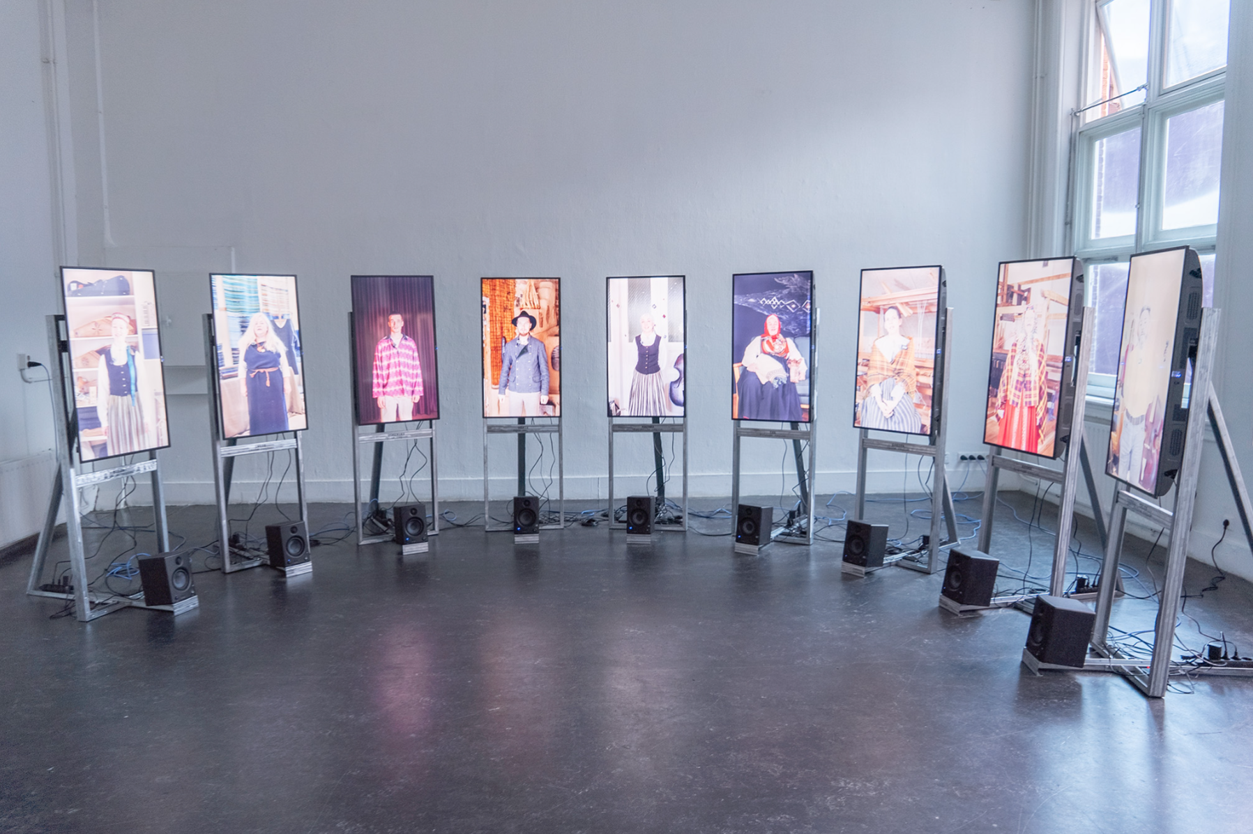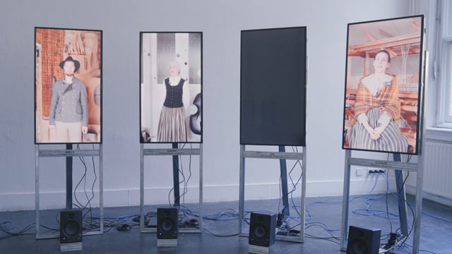 Tuned Voices is an audiovisual installation that explores how Latvian folk songs, often framed as orderly national treasures, were reshaped to serve collective identity. At its centre is Pūt, vējiņi (Blow, Wind), a song once sung informally in homes and taverns. In 1884, composer Andrejs Jurjāns arranged it into a grand choral work, transforming it into a symbol of Latvian nationalism. This formalised version is contrasted with recordings of nine singers from different regions of Latvia, each performing personal, oral renditions. Beginning raw and unpolished, their voices are gradually autotuned and synchronised, echoing how living traditions are standardised within institutional frameworks. The work exposes tensions between tradition and nationalism, while reclaiming folklore as diverse, shifting, and resistant to uniformity.