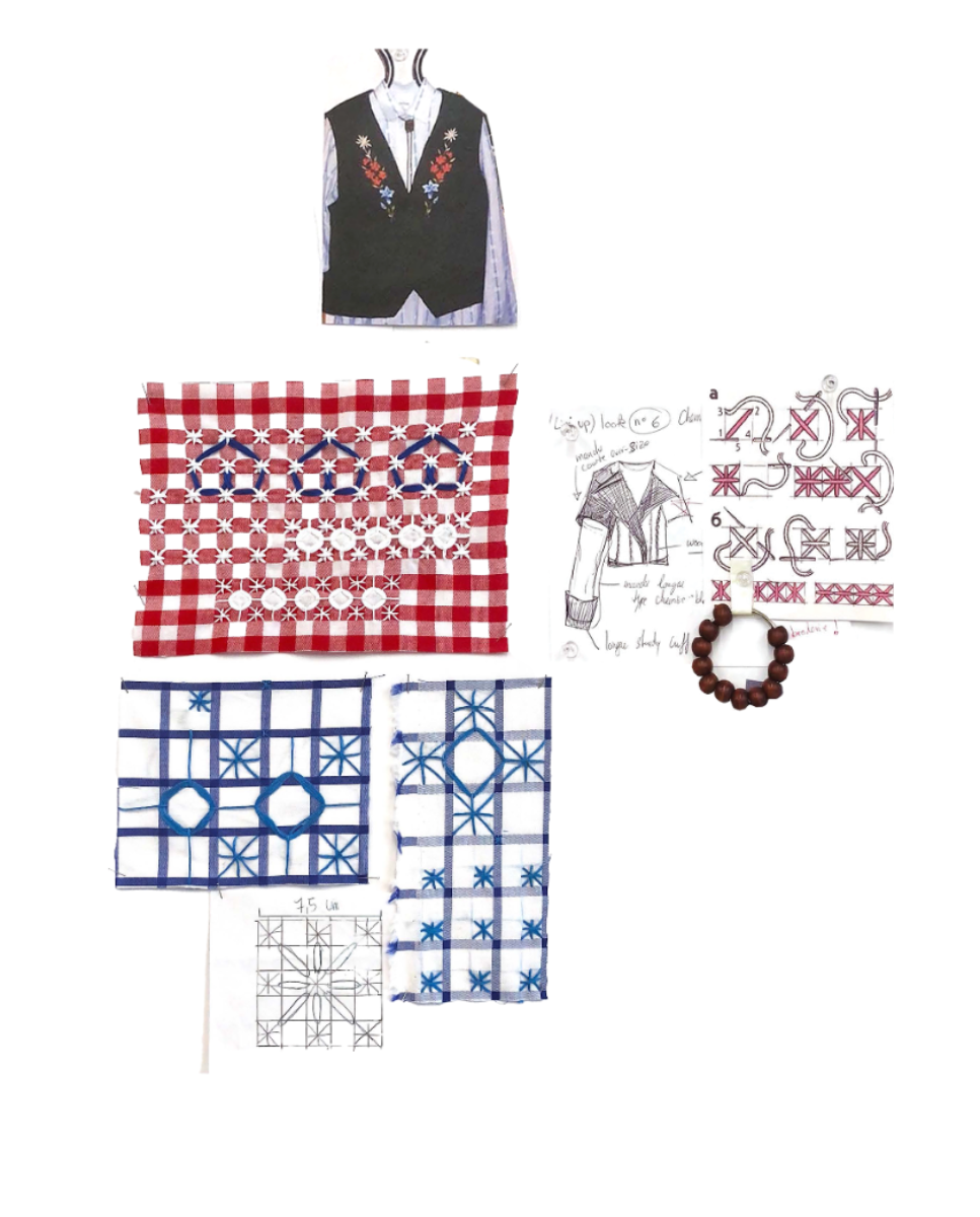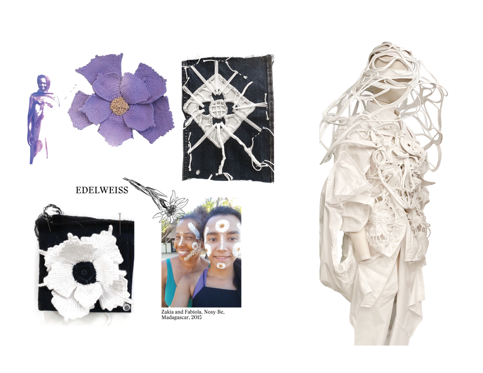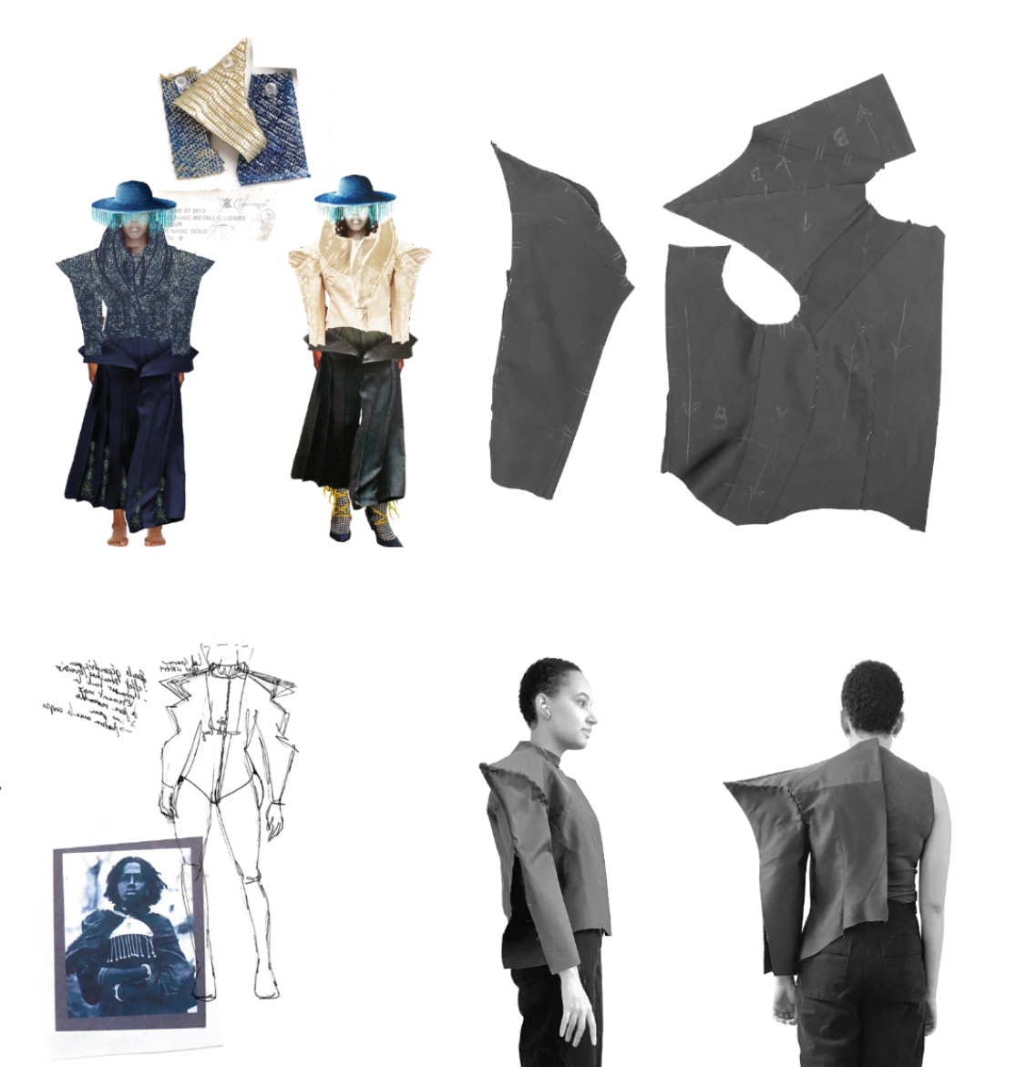 The captivating Fihavanana collection finds its roots in the Malagasy concept of togetherness, echoing my dual Swiss-Malagasy heritage. It explores the duality of identity and its connection to collective memory by breathing new life into discarded leather, raffia fibers, and intricate silhouettes. This collection fearlessly challenges fashion's pursuit of perfection by celebrating the raw beauty of leather's imperfections, symbolizing life's constant evolution. Each of the five leather jackets is a testament to sustainability, crafted from deadstock materials, remnants, or scraps, each with a unique story. Raffia, a cornerstone material, holds deep cultural significance in Madagascar, where artisans hand-weave it, resulting in patterns and textures that mirror life's natural variations. Through this craft, I explore the transformative power of personal connections, nostalgia, and memories, elevating the mundane into expressions of identity. This collection seamlessly blends the artistry of Malagasy and Swiss traditions, guided by elements of science fiction. It reflects on the impact of colonial history and African roots on our perception of the body. Drawing inspiration from works like Octavia Butler's "Kindred" and Ridley Scott's "Blade Runner," it delves into the complex interplay of race, memories, and identity. The collection navigates the uncanny realm of memories, where the familiar and foreign merge, creating fresh experiences from past echoes.