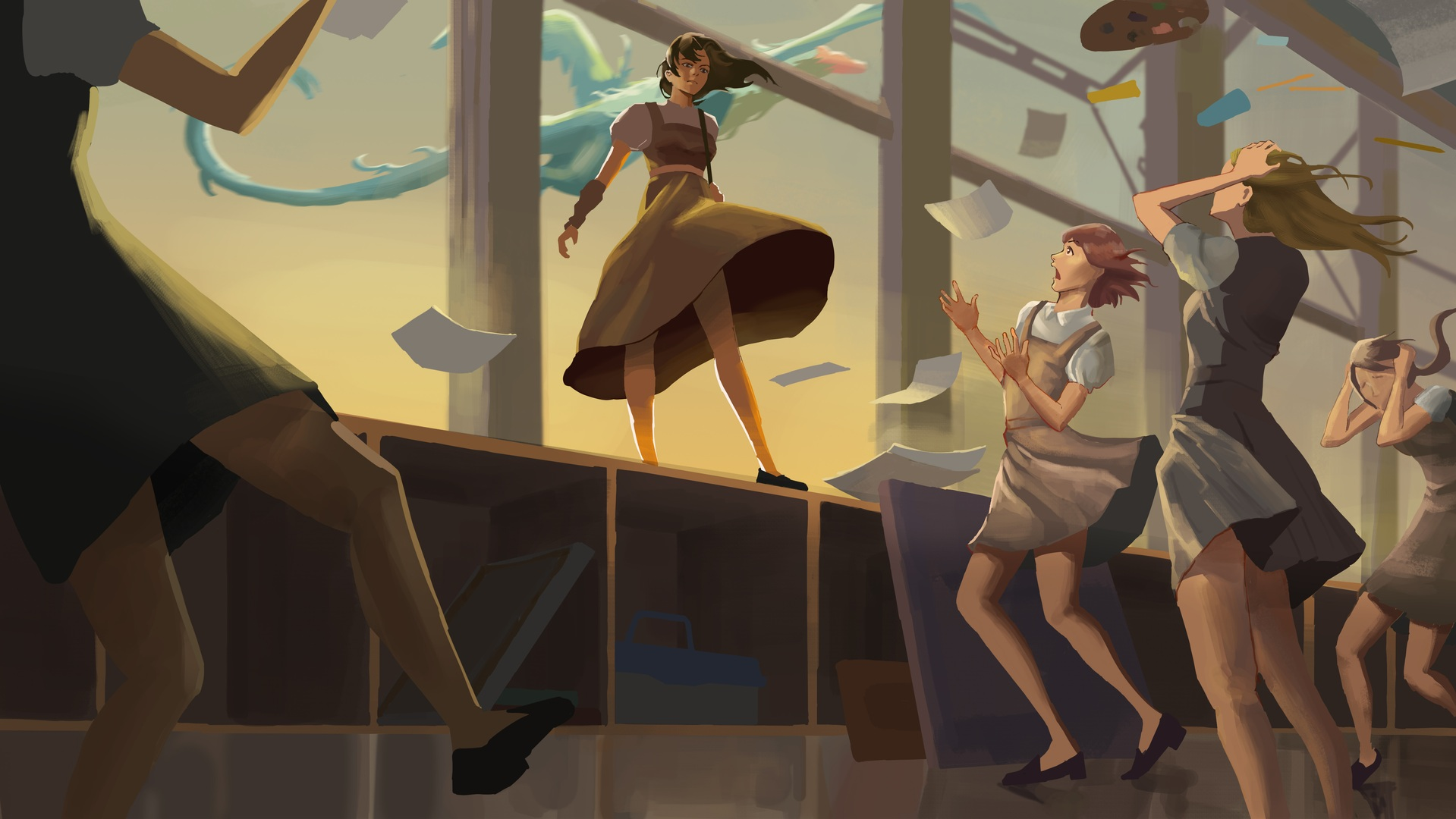 Fallen Sky is a visual development project set in the canyons divided by betrayal and survival. Long ago, the fennec fox elites sided with their god in a great war, abandoning the poor foxes to the scorched badlands while they ascended to floating islands of luxury. The story begins when a young rebel steals a sacred fruit, awakening the wrath of the god. To bring life back to the dying desert, she must face the consequences of that act and challenge the history that tore her people apart.