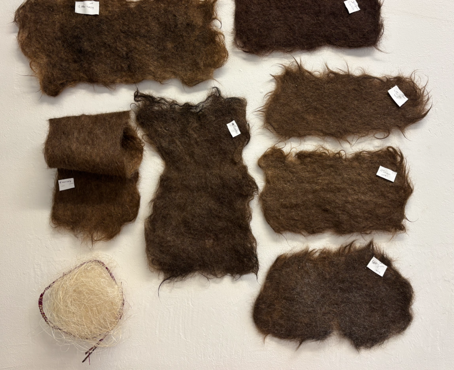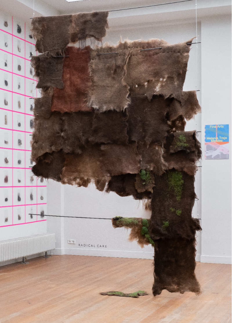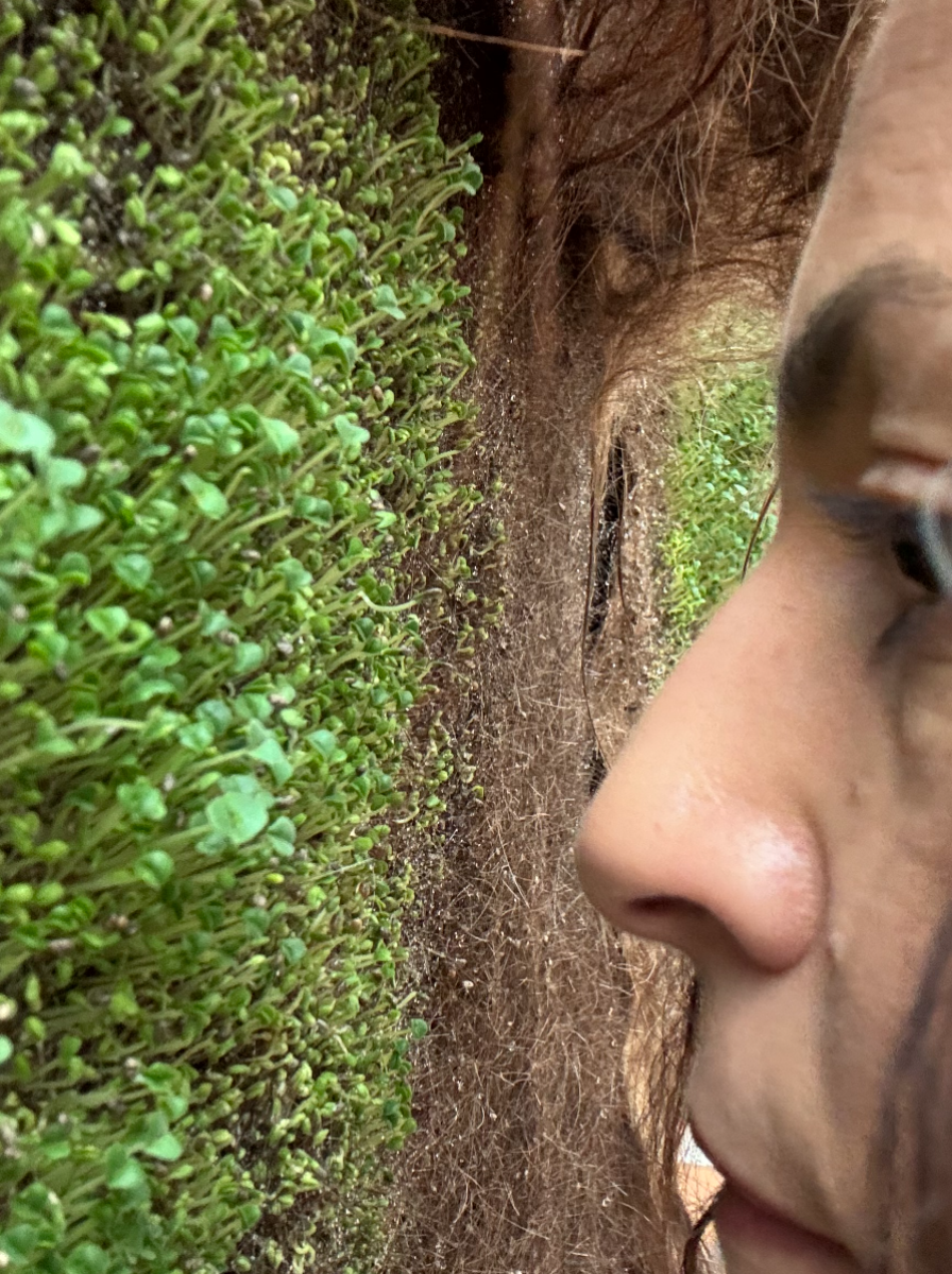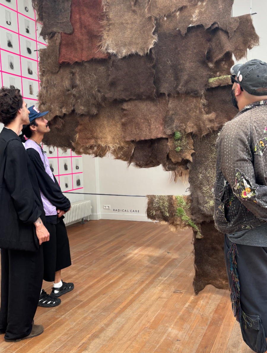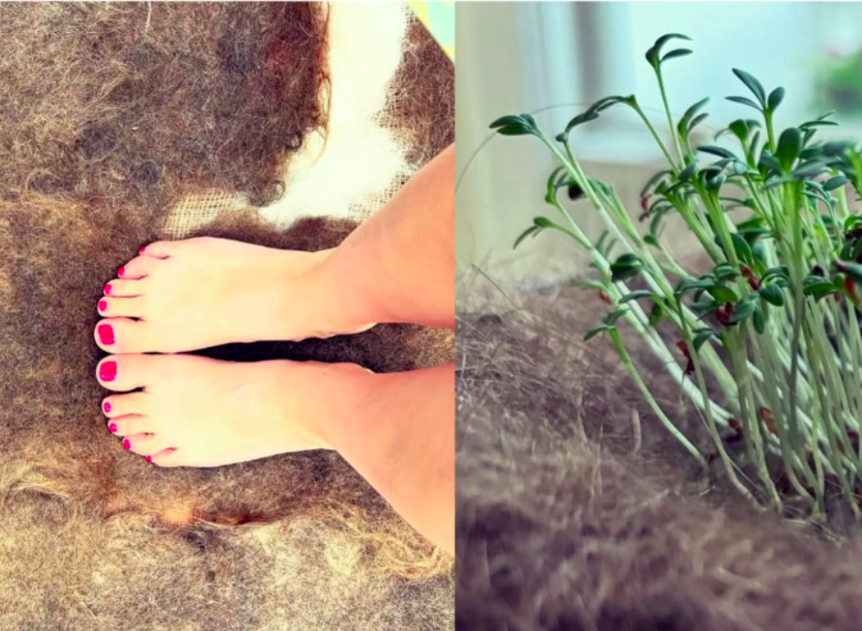 Interested in the potential of radical matter (traditionally thought as waste), Melania’s artistic research contributes to an art movement that looks into rebalancing our (human) relationship with the planet. Her detailed investigation on human hair shows a deep understanding of the material's chemical components, it's potential applications for design and regenerative use, relationality and political implications. R A D I C A L C A R E, her graduation project, is a large scale installation that consists of two pieces: a hand-felted textile made of human hair (400 x 190cm) bringing life to (edible) micro greens that can be seen sprouting from it, and a collection of approx 200 hair donations that carry the stories and connections from the female bodies/territories they once belonged. This piece has a strong conceptual element. It is provocative, experimental and biodegradable. A profound statement on materiality (beyond sustainability), ecological awareness, and reclamation of contemporary craft.