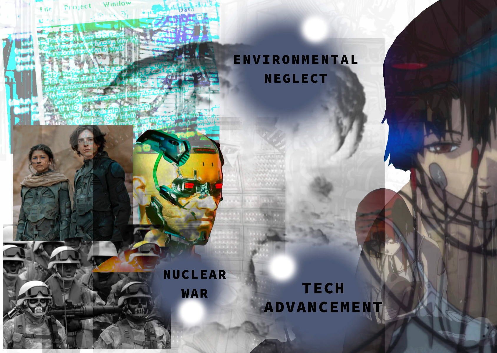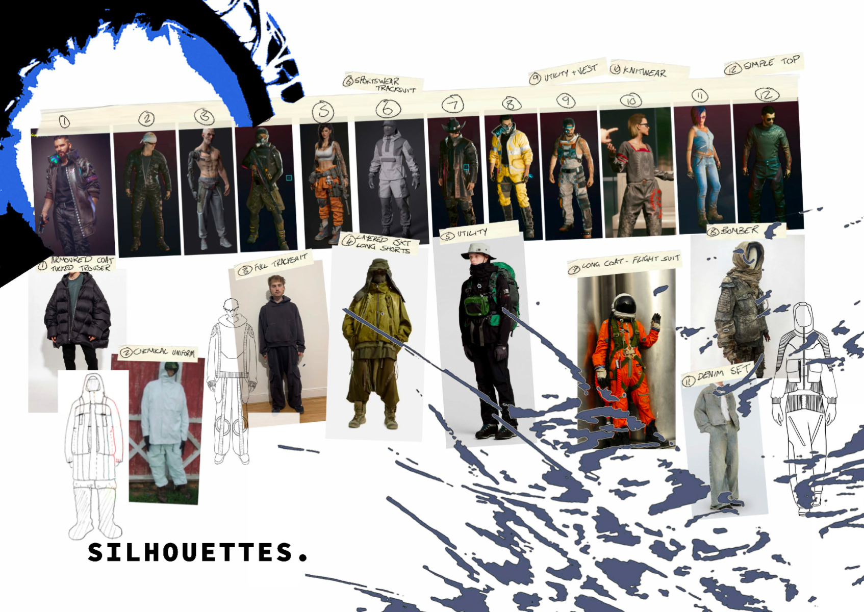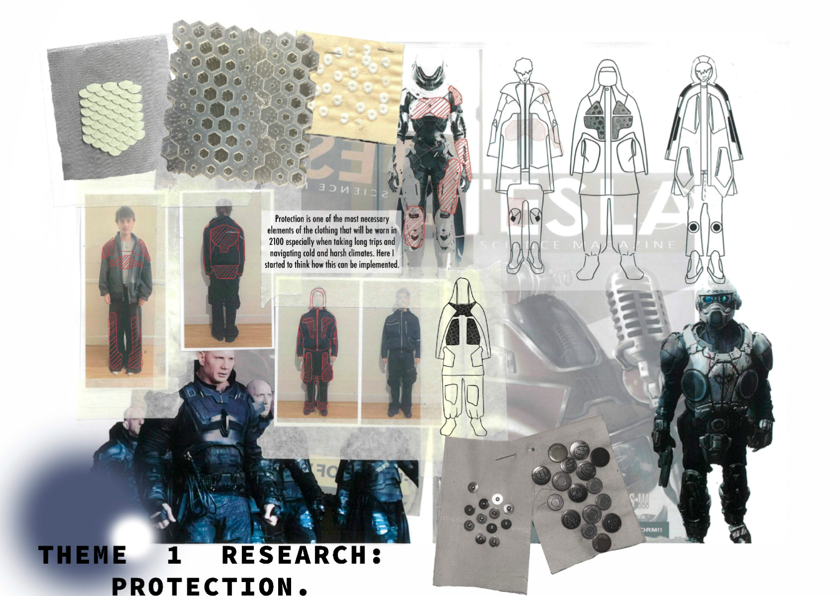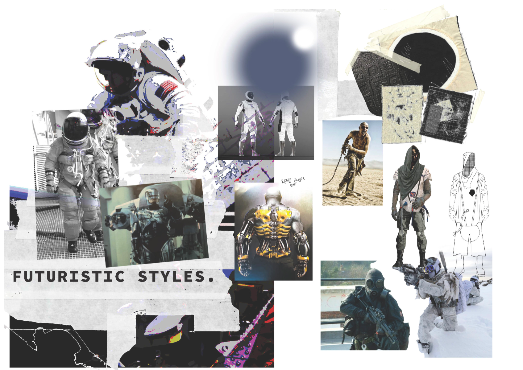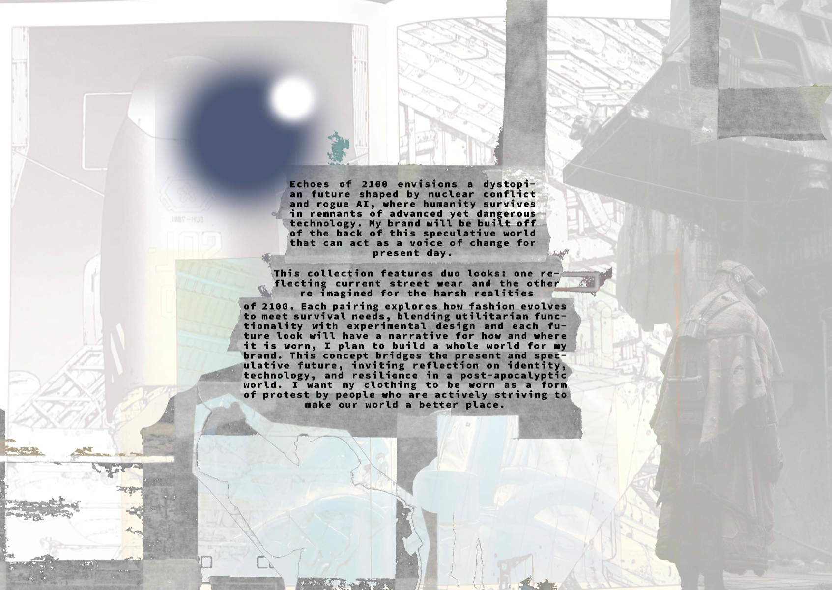By the year 2100, the air is thick with radioactive dust, a lingering consequence of wars and unchecked technological advancement. Many cities lie abandoned, crumbling under the weight of past conflicts, while others have evolved into sprawling, high-tech hubs where life contin- ues amidst neon lights and towering skyscrapers. In these advanced civilizations, AI dominates every aspect of society, creating a world that is both highly futuristic and deeply unequal. Outside and within these gleaming cities, nomadic survivors adapt to the harsh, radioactive waste- lands, scavenging and re purposing old-world tech. Clothing is more than just a necessity; it is a statement of resilience, identity, and defiance against the forces that brought about this new world. As a human surviving in this world, they would have to adapt massively, being able to get away from AI robots and be able to survive in harsh climates and environments. What type of clothing choices would people have to make?