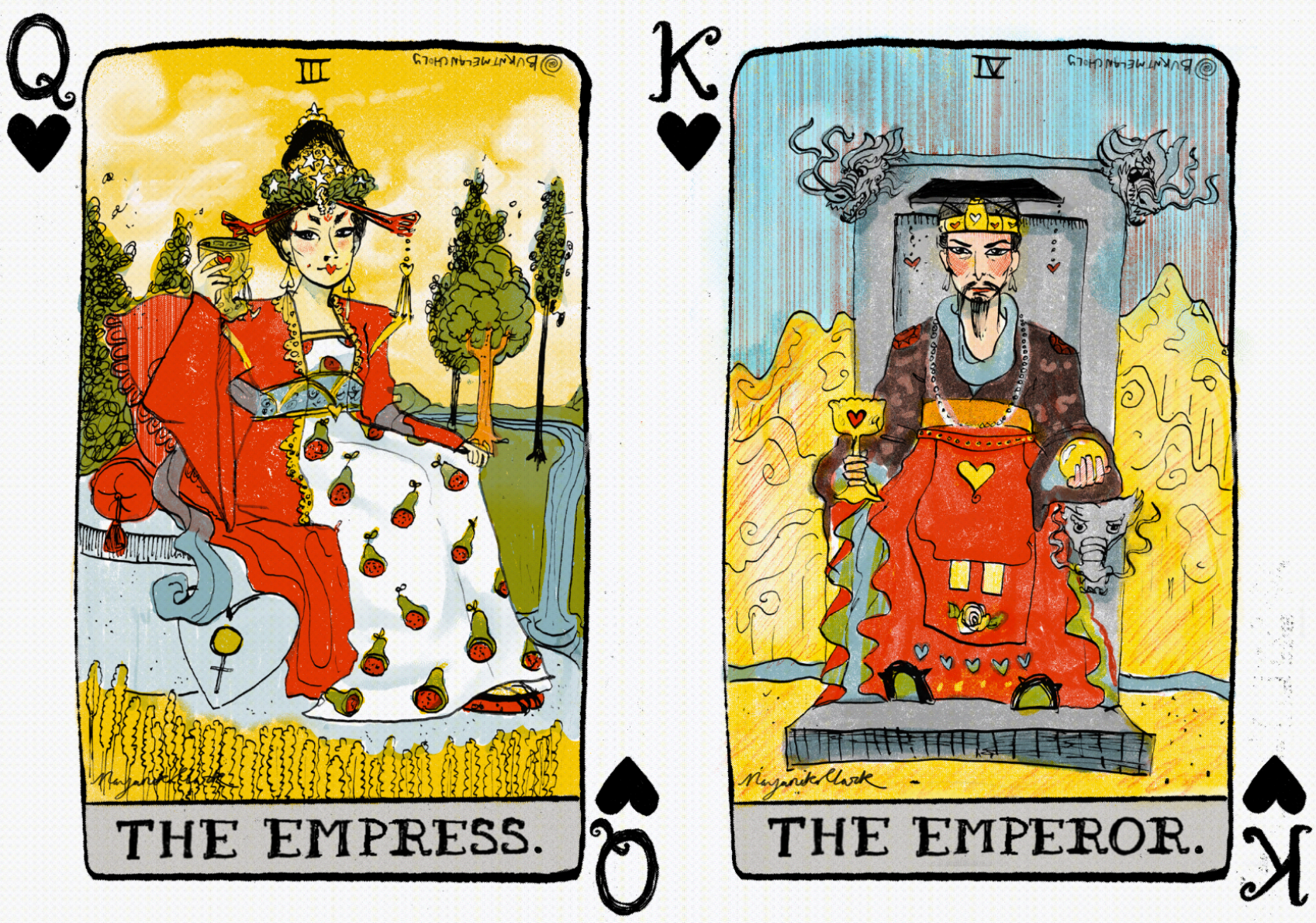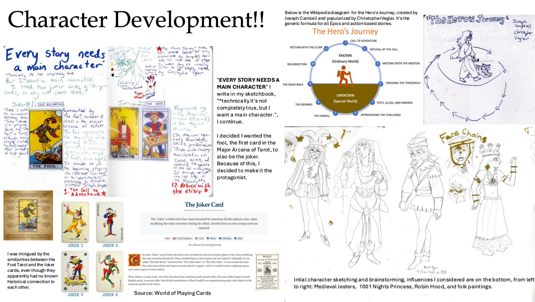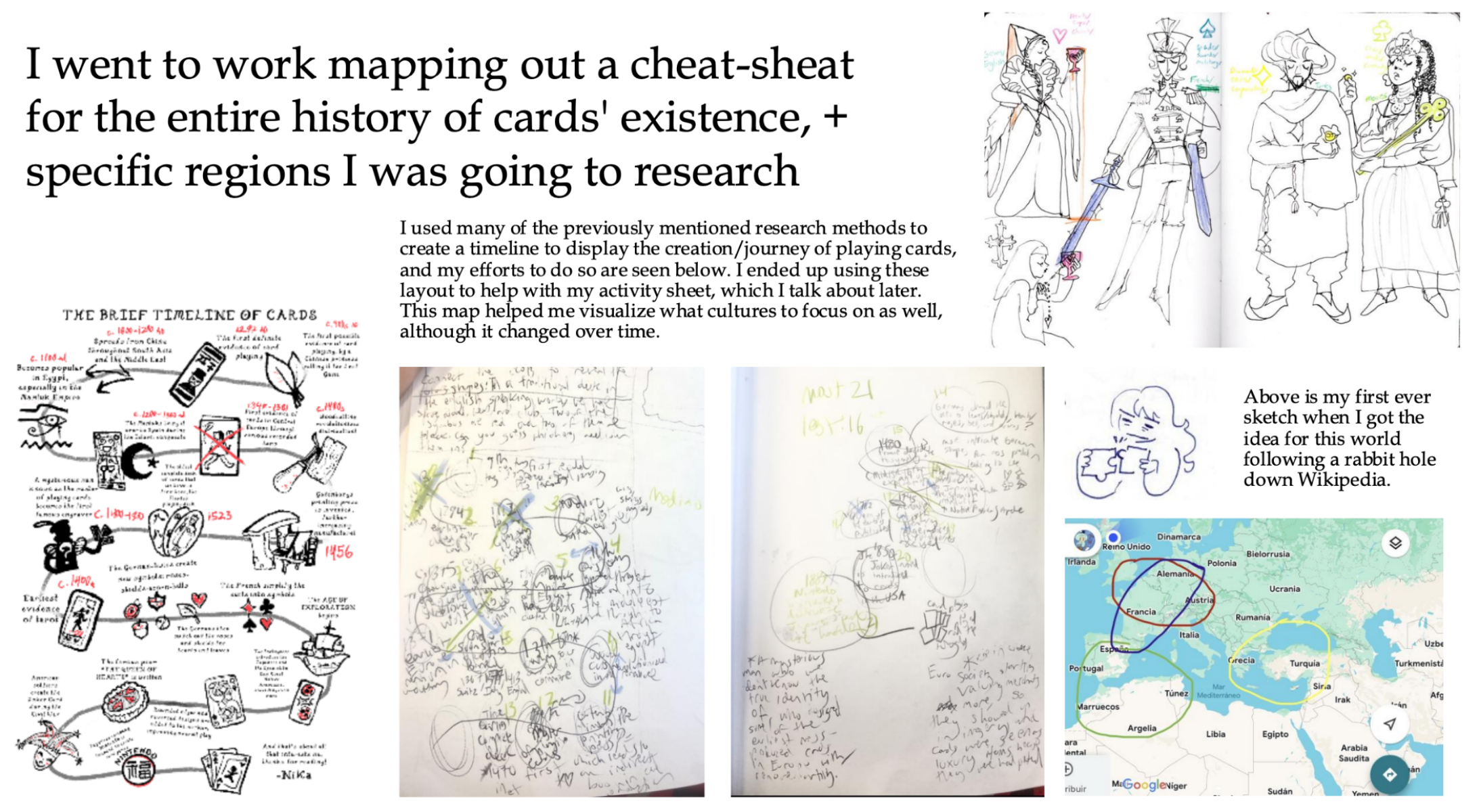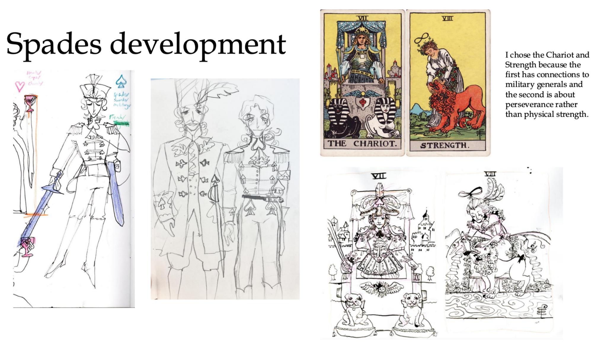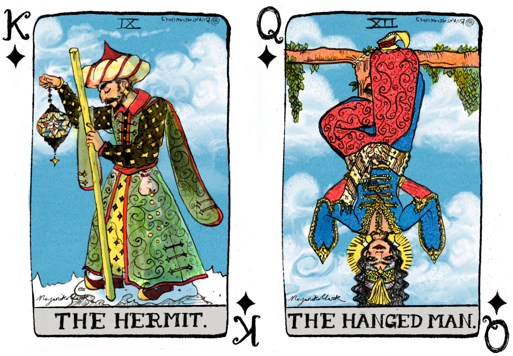 A tale of five suits tells the story of an original high fantasy world based on the forgotten ethnodiversity of Medieval times and the lore behind playing cards and tarot, through a deck of dual-play (playable as both classic and tarot) cards. The history of playing cards is a culmination of so many different cultures, which is not well remembered in modern times. My cards showcased clothes and cultures of the Ottoman Turks, Tang Dynasty China, the Mamluk empire, Moorish Spain, Chandra and Deva era Bengal, and Rococo France, chosen due to their distinct connections to playing card history. In my fictional world, each suit is a distinct kingdom with their own forms of magic and government. For my first drawings, I decided to depict the Queen and King of each respective kingdom, as well as the Joker cards from a different kingdom, in the form of the Major Arcana of the traditional Tarot lore. I hope to accomplish completing at least 8 other additional Tarot cards of the Major Arcana, digging deeper into the historic contexts, and having that reflect through my character design and technical artist, but eventually my goal is to have a whole deck, as well as a cohesive story that fits the Hero's Journey.