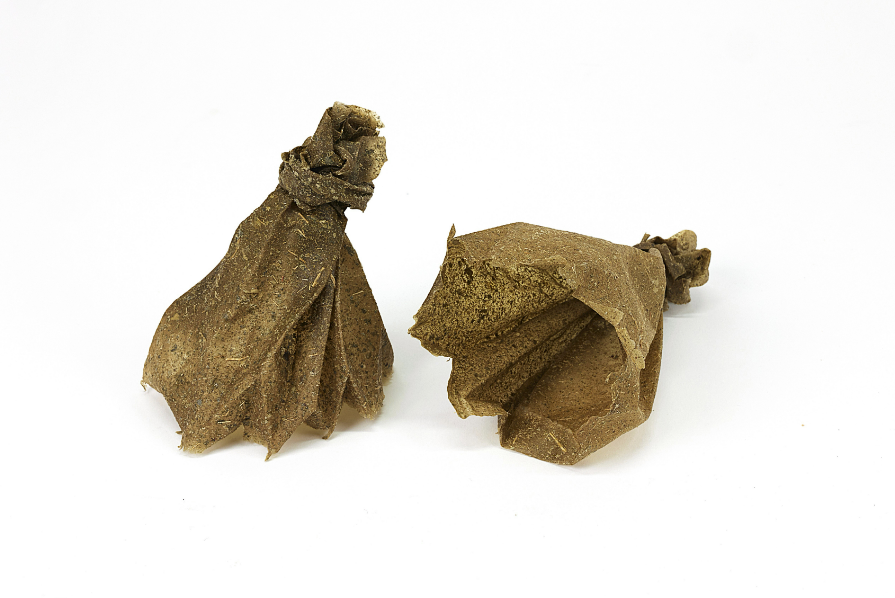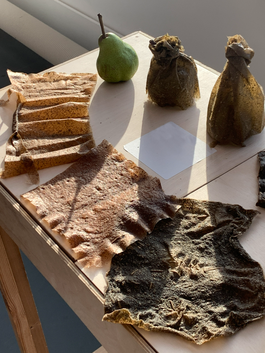 Agri-fruit-bag is a fruit growing bag used in guava production. It regenerates tomato leaves into biofilm. It replaces unrecyclable double-layer plastic guava bags, which are foam nets and outer bags used to protect fruits from pests, sunburn, and damage. Its shape structure protects fruits from farm to market. It's biodegradable in soil as fertilizer and decomposes after harvesting fruits. Agri-fruit-bag is made from the farm and returns to enrich it. It transforms agricultural waste into a second skin for fruits, while protecting the land we all share.