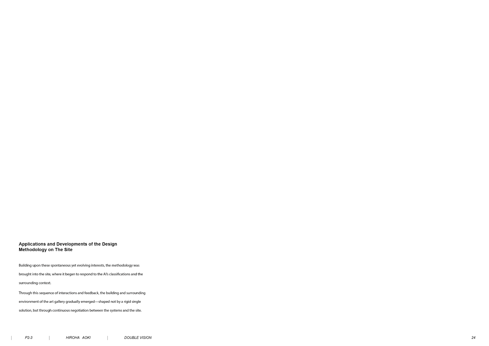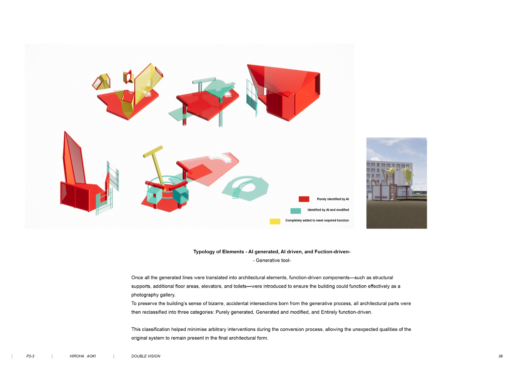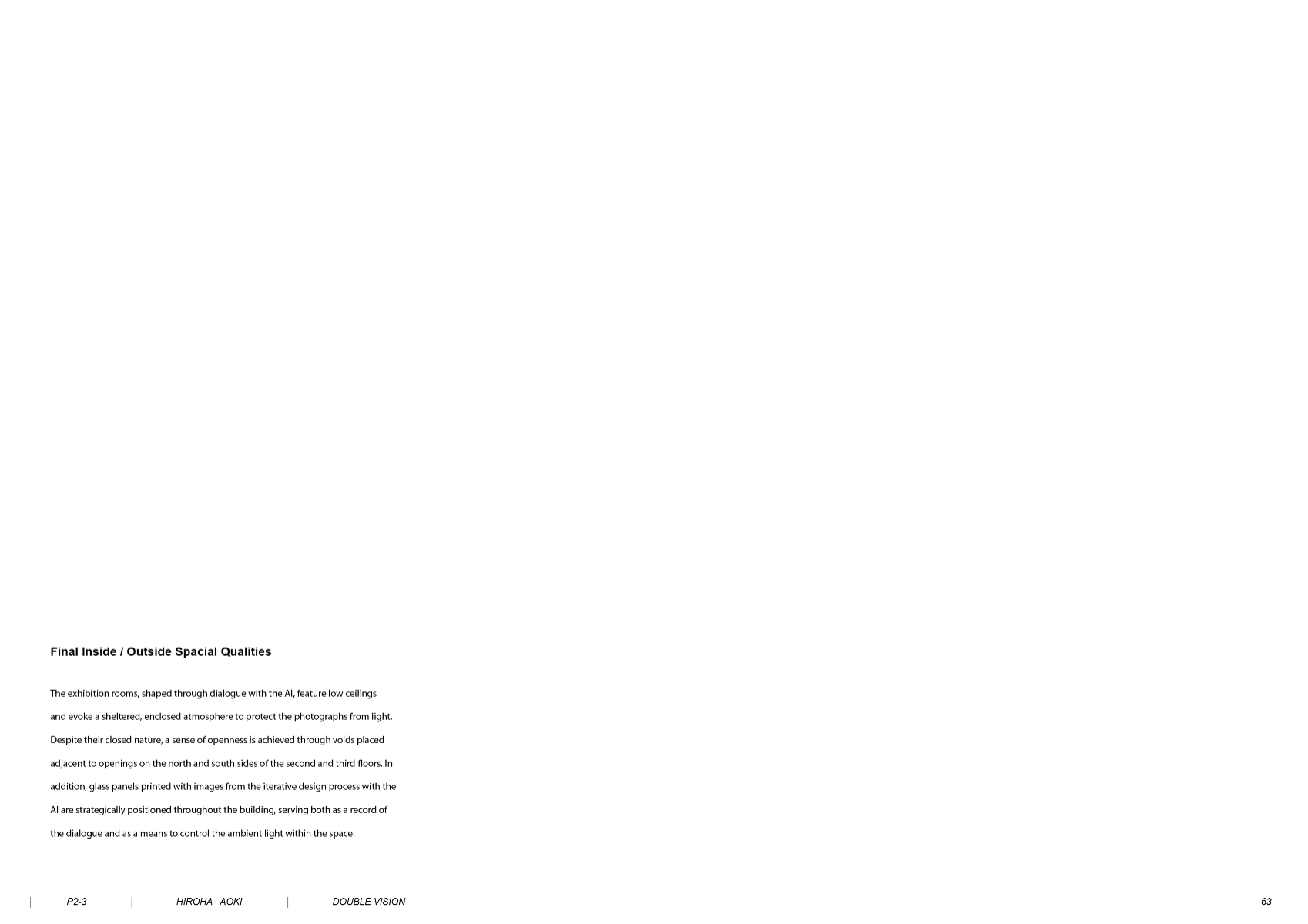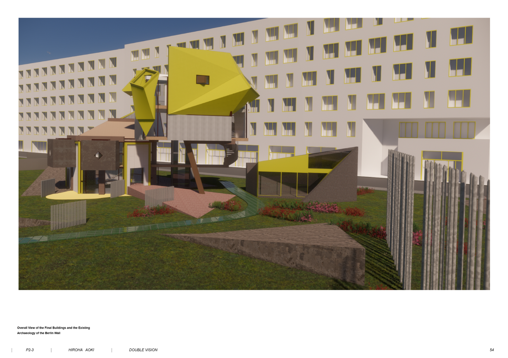 This project is a photography museum that explores the differences and inherent ambiguities between the AI object recognition systems and human perception. Located on the former site of the Berlin Wall—a place once defined by the artificial and forceful division of opposing ideologies—the museum introduces a new kind of boundary: one between human and machine perception. Through its architecture, the project invites a renewed confrontation, allowing both perspectives to coexist in a kind of "double vision," offering critical reflection on the past, present, and future. The building's distinctive forms are grounded in a self-developed methodology based on visual dialogue with AI systems. As both an outcome and a visual record of this process, the museum proposes a new model for engaging with AI—not as a means of simply handing over creative authority, but as a way to co-share design agency between human and artificial intelligence through visual negotiation.