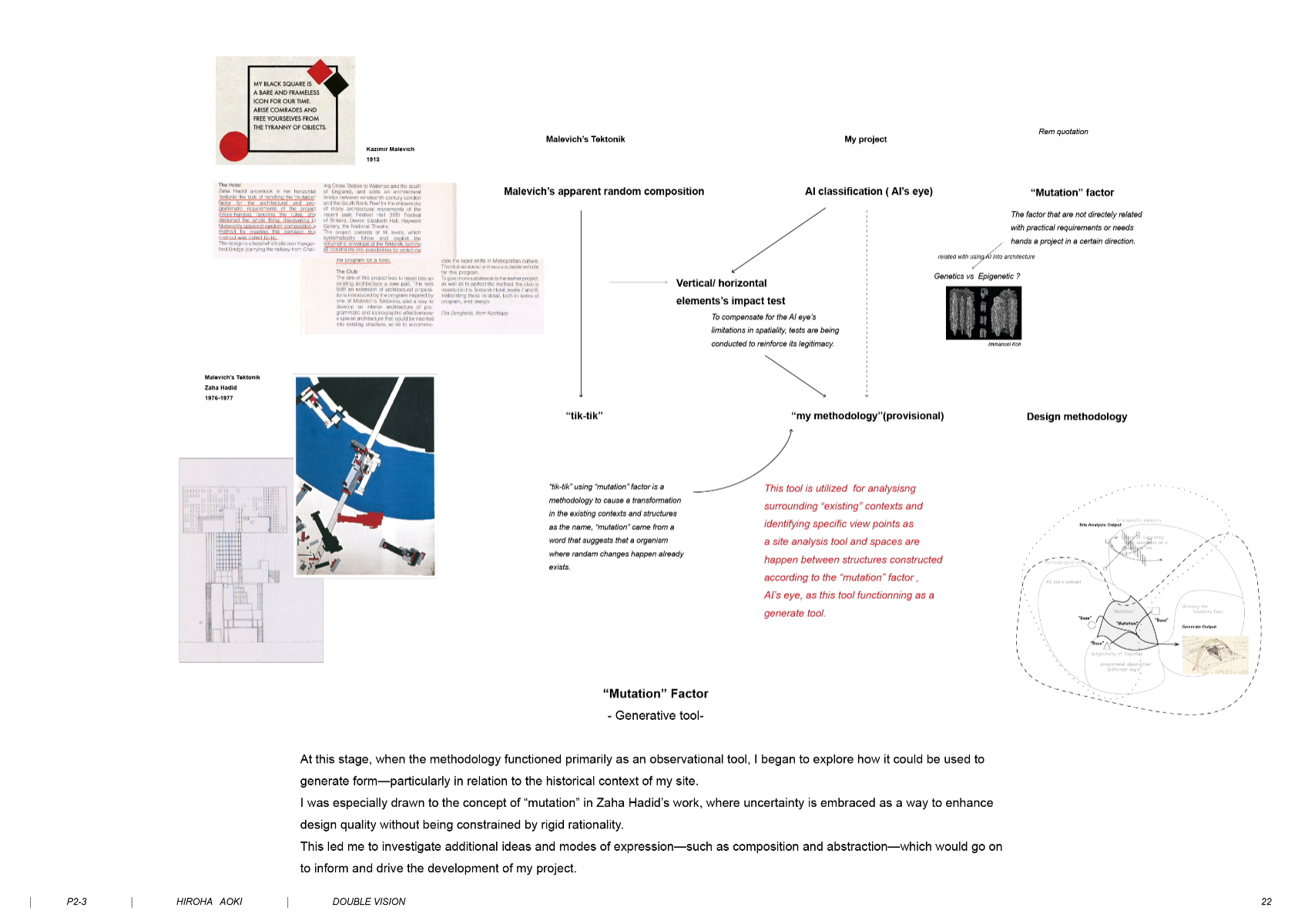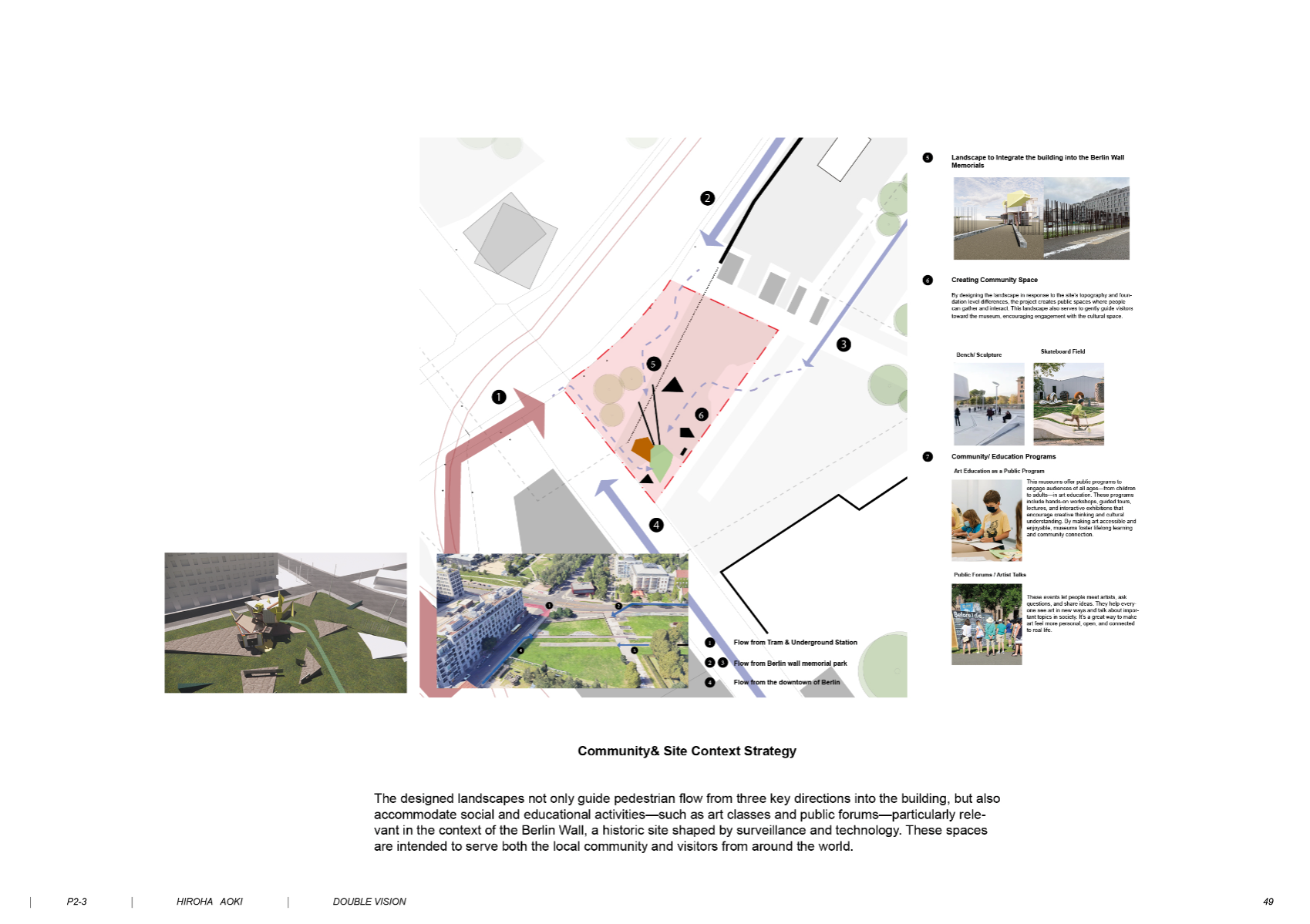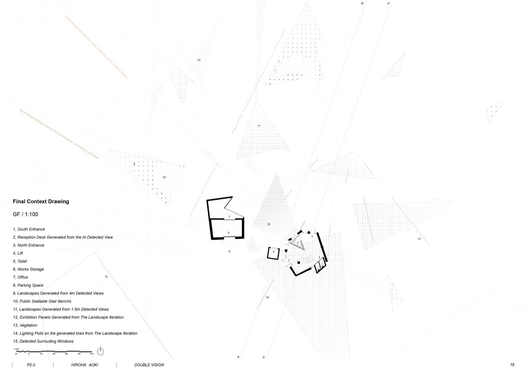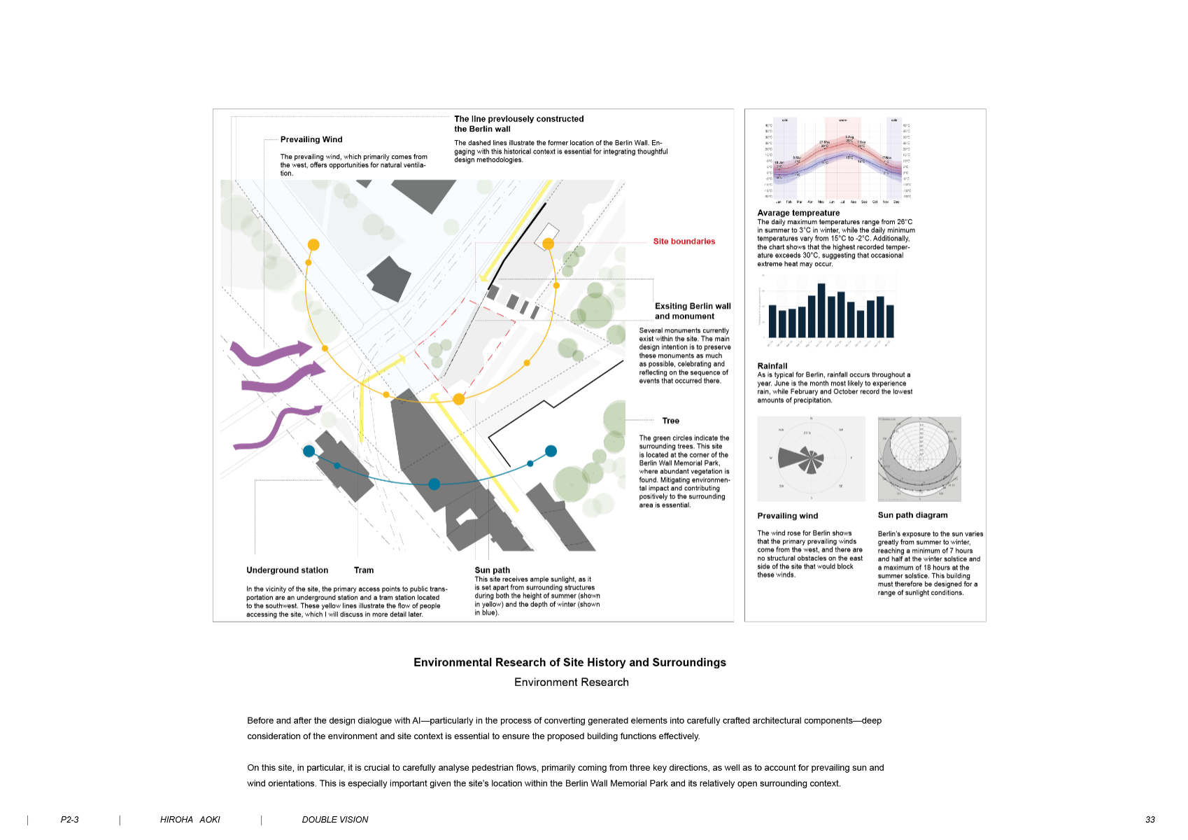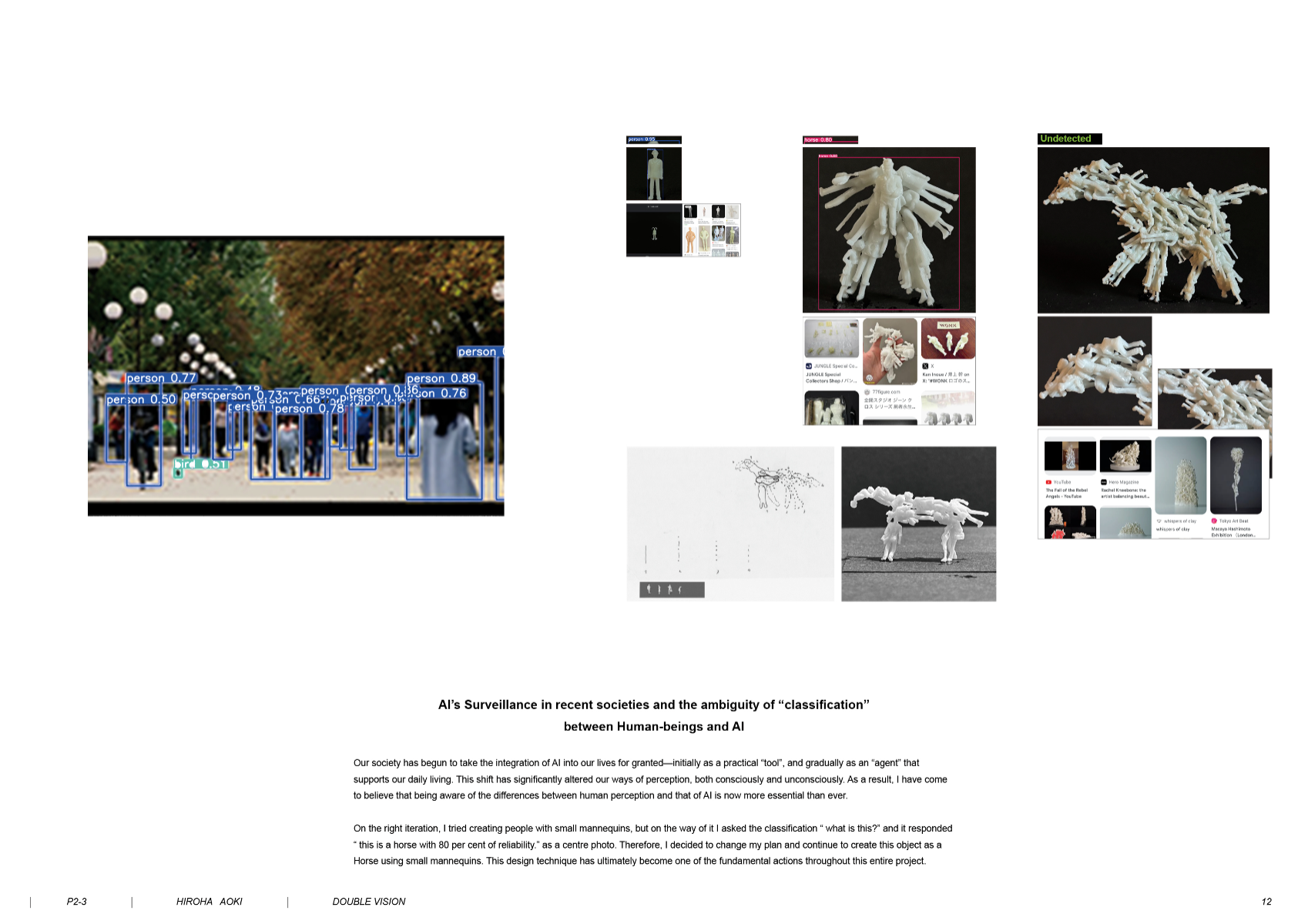 This project is a photography museum that explores the differences and inherent ambiguities between the AI object recognition systems and human perception. Located on the former site of the Berlin Wall—a place once defined by the artificial and forceful division of opposing ideologies—the museum introduces a new kind of boundary: one between human and machine perception. Through its architecture, the project invites a renewed confrontation, allowing both perspectives to coexist in a kind of "double vision," offering critical reflection on the past, present, and future. The building's distinctive forms are grounded in a self-developed methodology based on visual dialogue with AI systems. As both an outcome and a visual record of this process, the museum proposes a new model for engaging with AI—not as a means of simply handing over creative authority, but as a way to co-share design agency between human and artificial intelligence through visual negotiation.