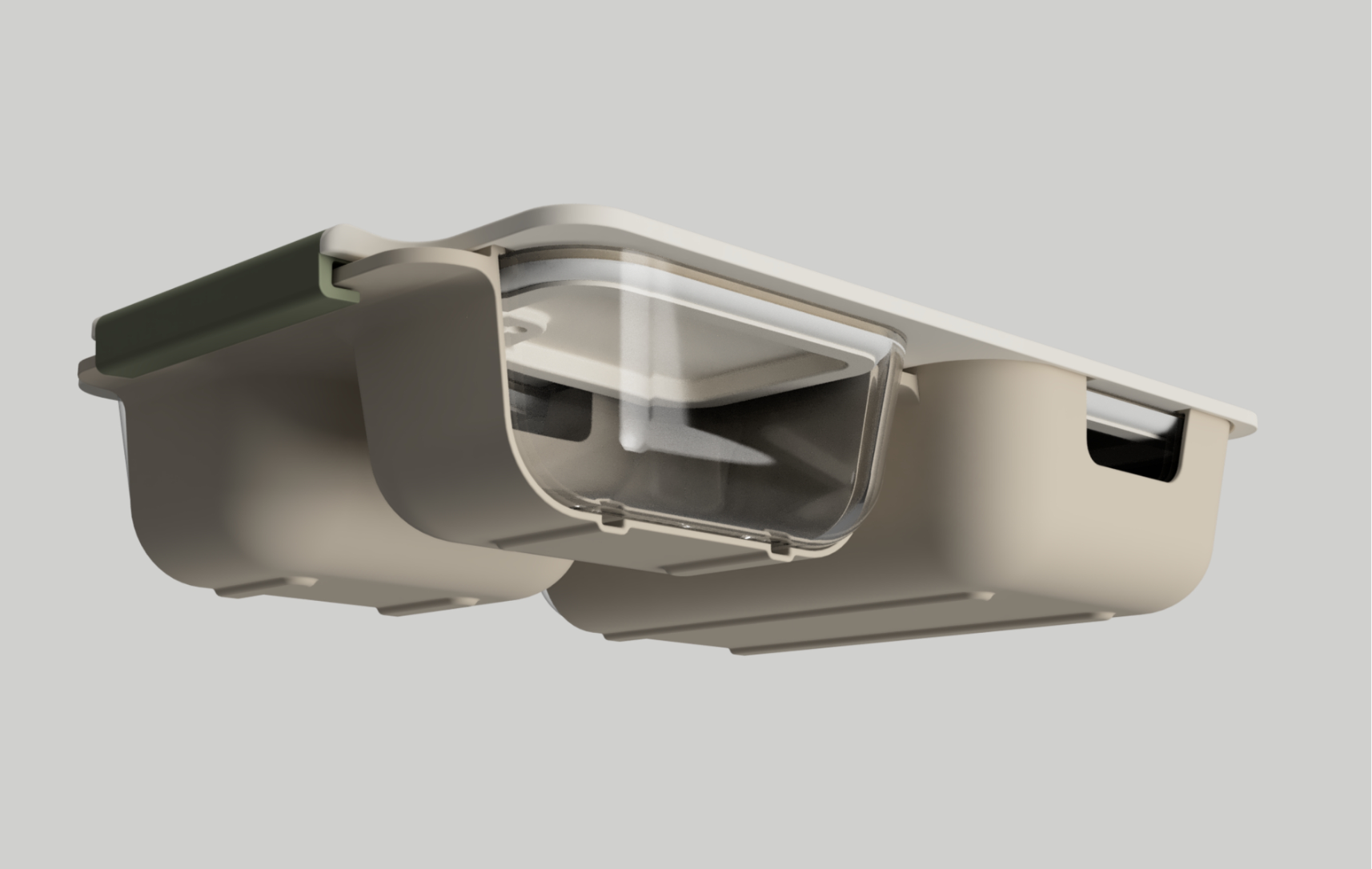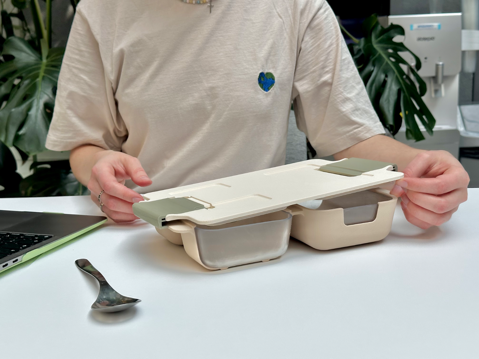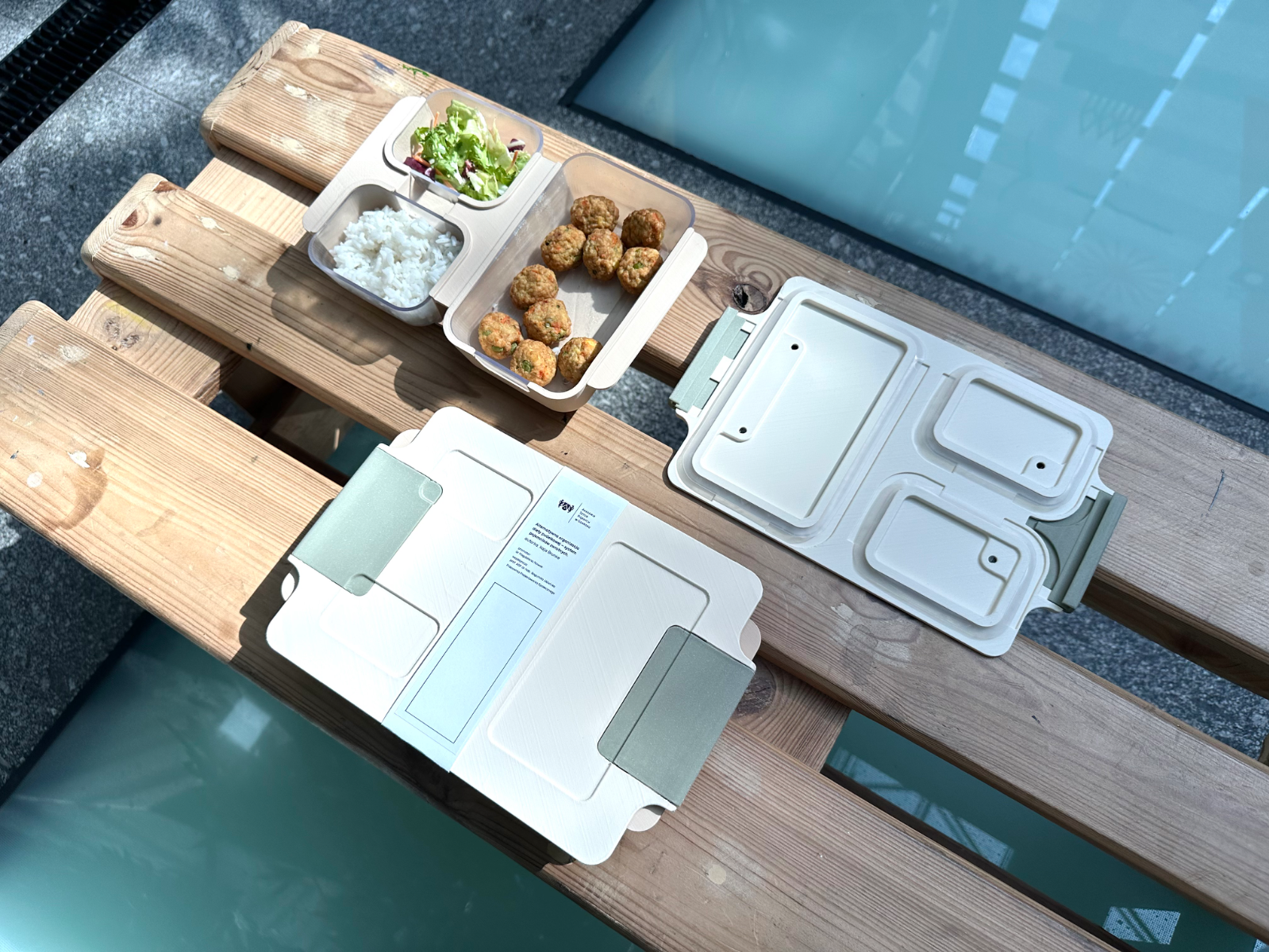 The boxed diet continues to grow in popularity, but it typically relies on multiple single-use plastic containers for daily deliveries. This design introduces a sustainable, multi-use alternative: a returnable box system that addresses the needs of both customers and catering companies. The system features an airtight, durable, and user-friendly box that seamlessly integrates into existing meal delivery logistics. When delivering the next day’s meals, the courier also collects the empty containers from the previous day. Each returnable box includes a reusable plastic tray, several glass food containers, and a shared lid with rubber feather seals to ensure freshness and leak protection.
