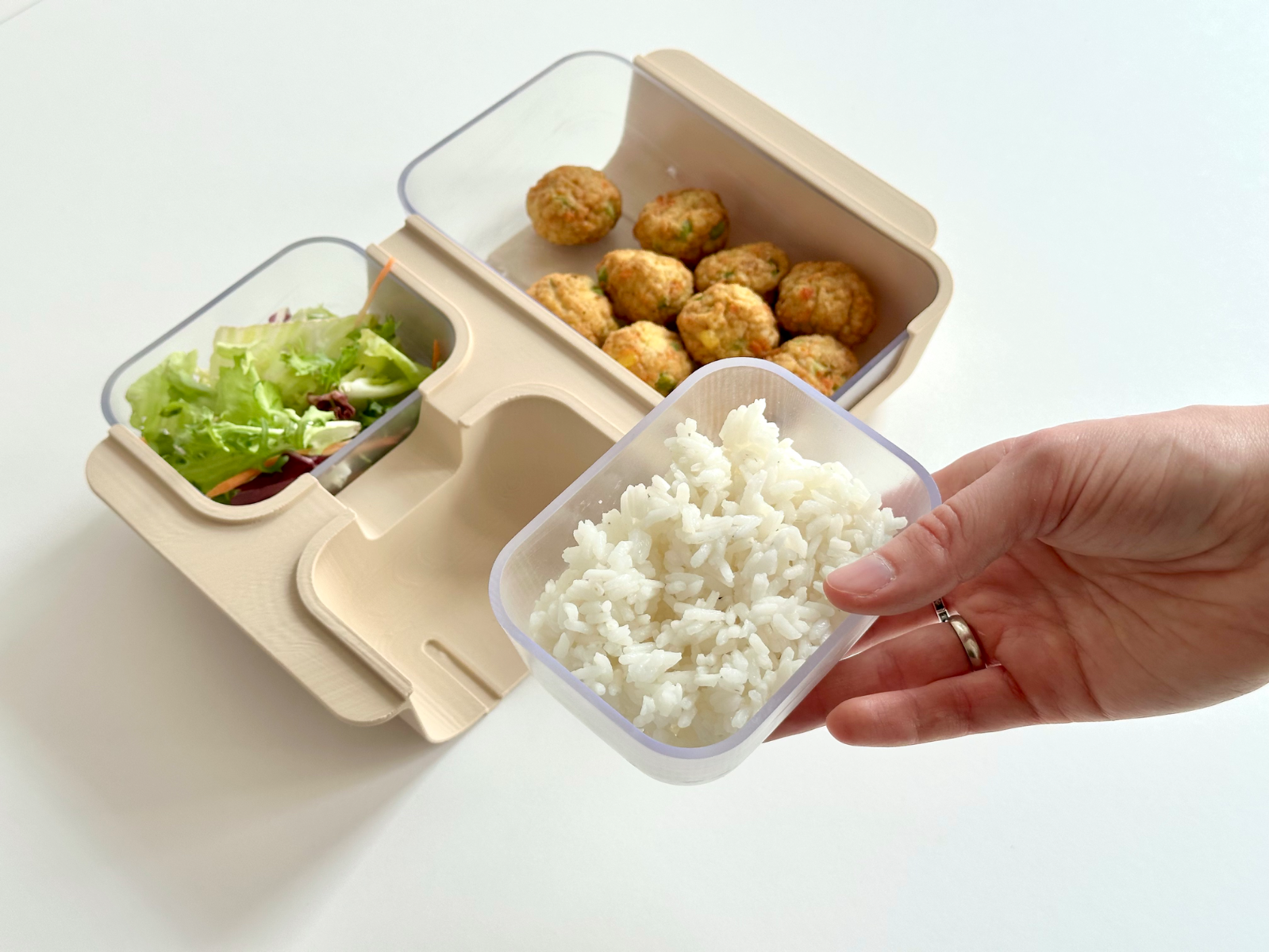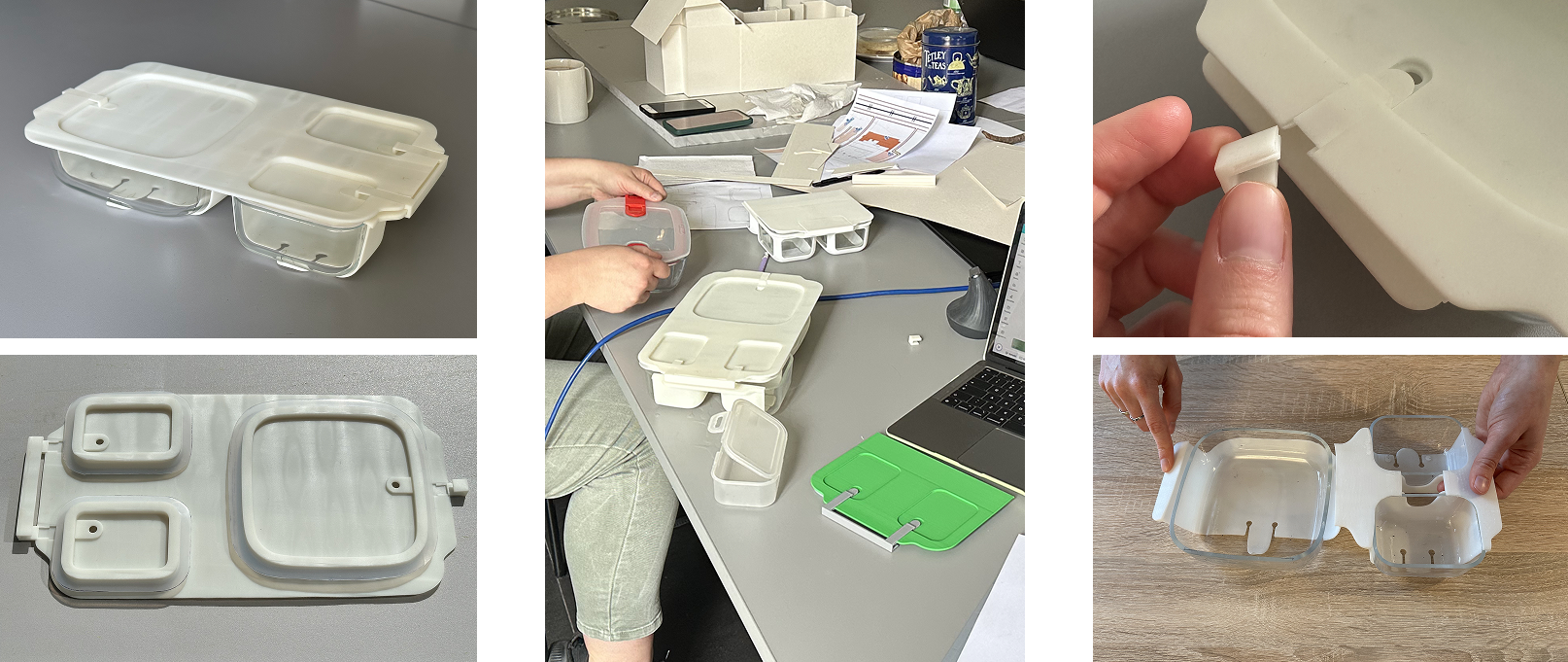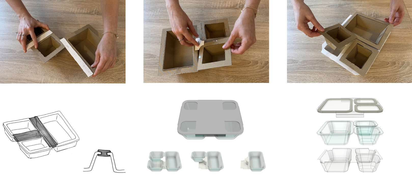 The boxed diet continues to grow in popularity, but it typically relies on multiple single-use plastic containers for daily deliveries. This design introduces a sustainable, multi-use alternative: a returnable box system that addresses the needs of both customers and catering companies. The system features an airtight, durable, and user-friendly box that seamlessly integrates into existing meal delivery logistics. When delivering the next day’s meals, the courier also collects the empty containers from the previous day. Each returnable box includes a reusable plastic tray, several glass food containers, and a shared lid with rubber feather seals to ensure freshness and leak protection.