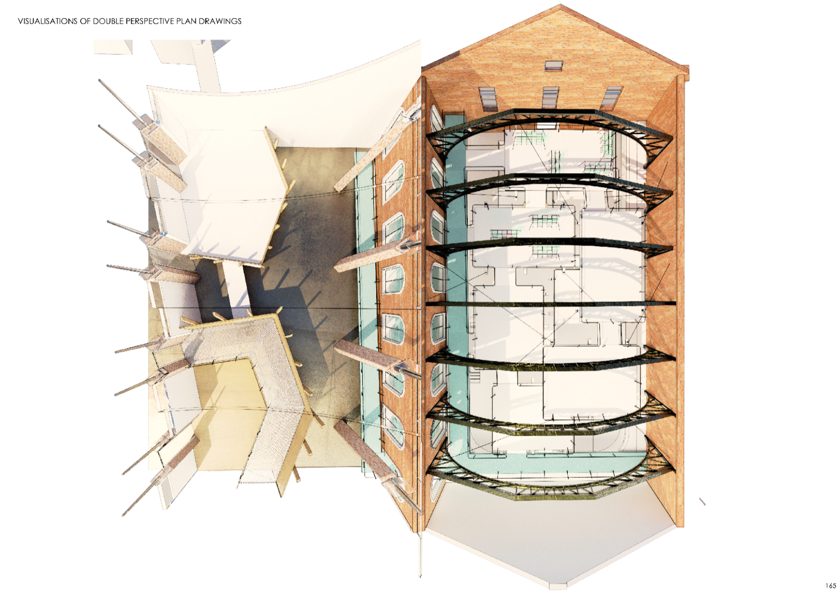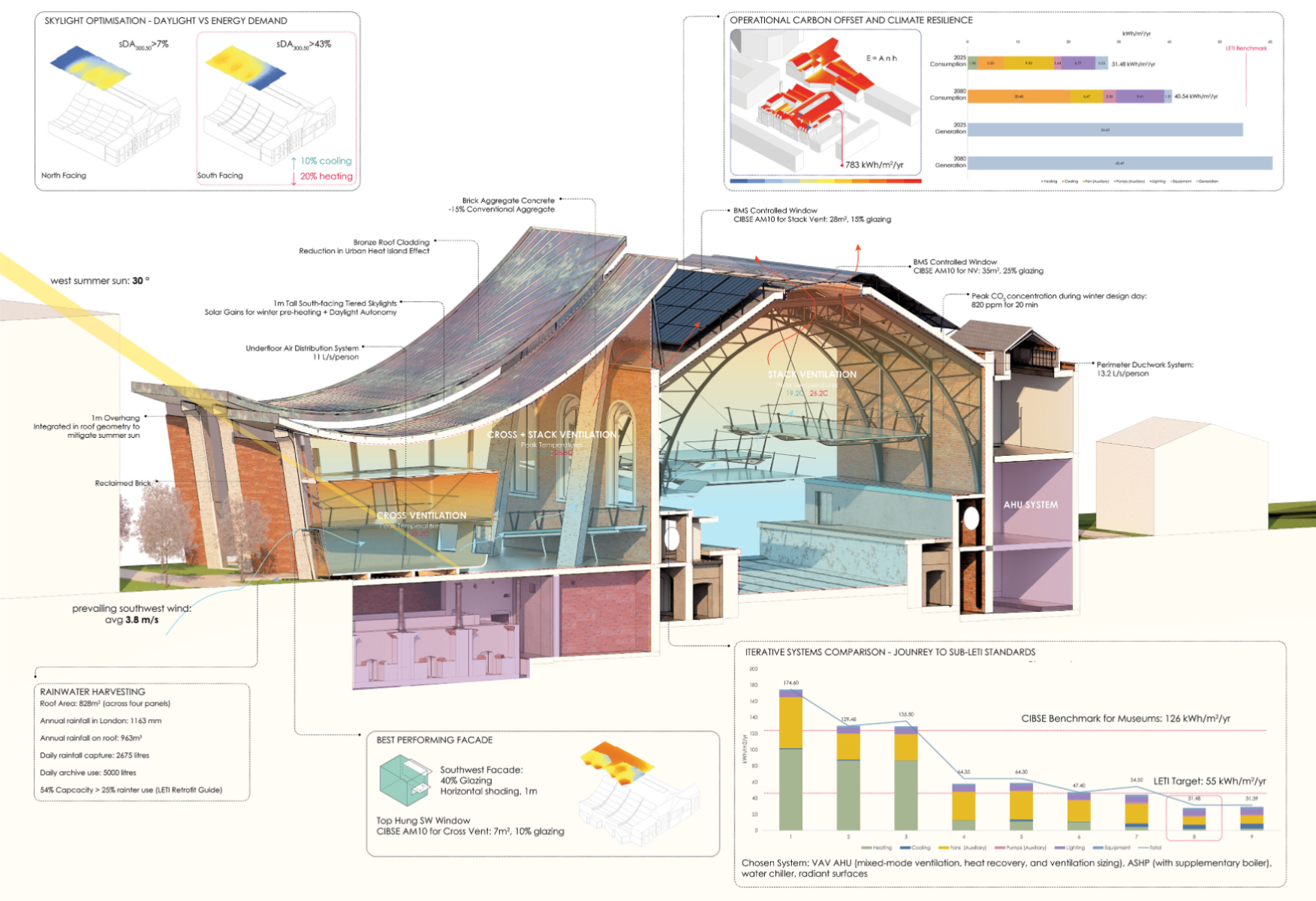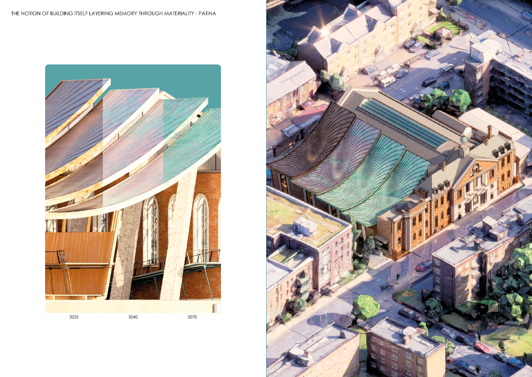 Memory is intrinsically tied to happiness and our shared understanding of one another. This interpretation of eutopia weaves a garden of remembered and forgotten fragments, layered over the Victorian Haggerston Baths as a vessel for holding, healing, and re-inscribing memory. As visitors ascend a ramp into a fantastical hall of suspended platforms, they leave behind artefacts for others to uncover: neighbours, grandchildren, ex-lovers, classmates. Memory becomes a shared ritual, a timeless act of rediscovery and reinterpretation. At its core is a gestural inversion of the poolhouse frames: a funicular suspension roof and corrugated façade that respond to and redefine the existing structural rhythm. Through a multi-scalar choreography of movement, the proposal uses the existing Baths' wall as the design axis; subtle sutures that guide circulation and provoke moments of reflection and awe. These gestures stitch past and present, conjuring spaces where physical memory lingers, quietly stirring reflection within the folds of life. This project integrates structural and environmental design with architectural intent, reaching a resolution of net-zero operational carbon.