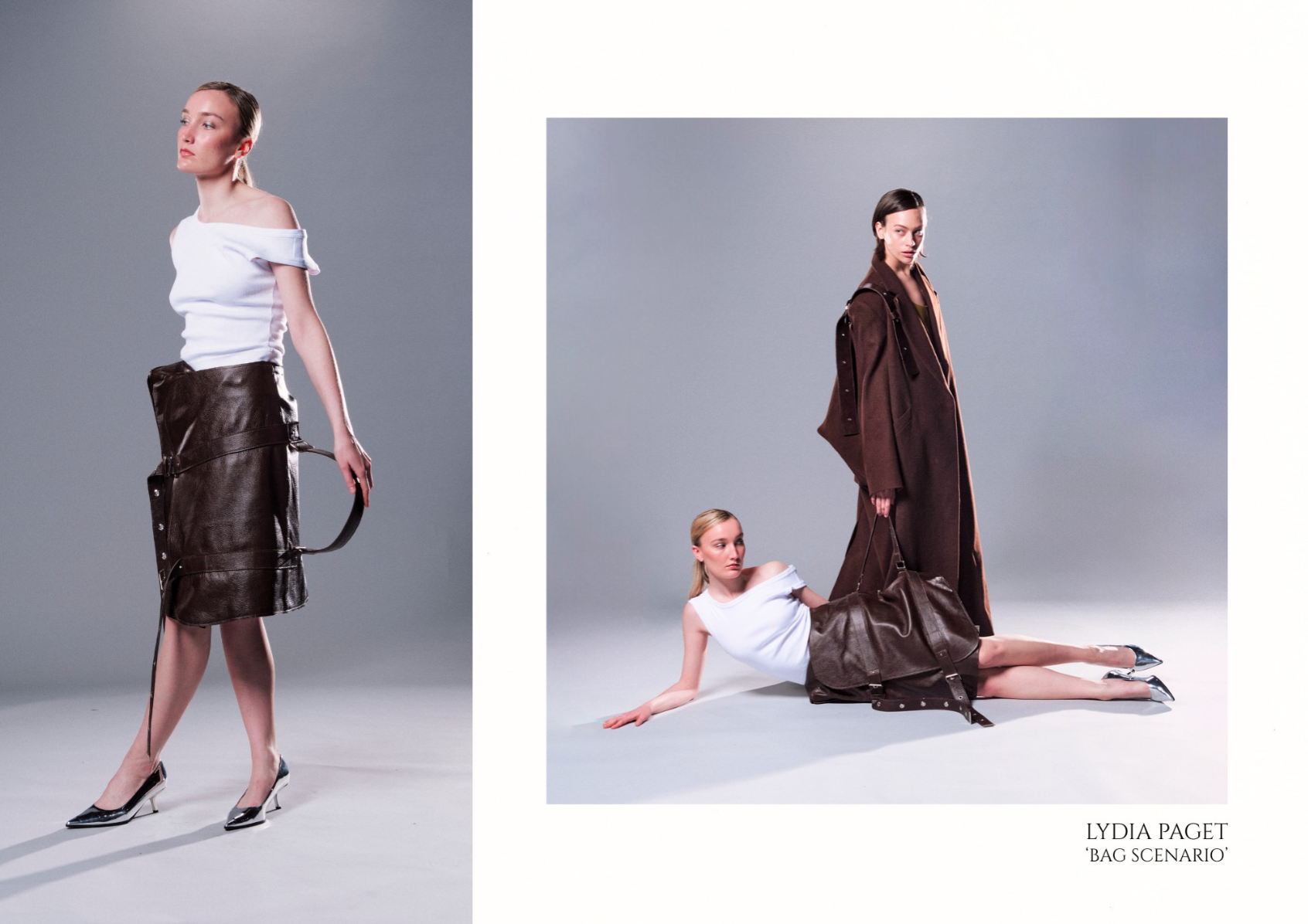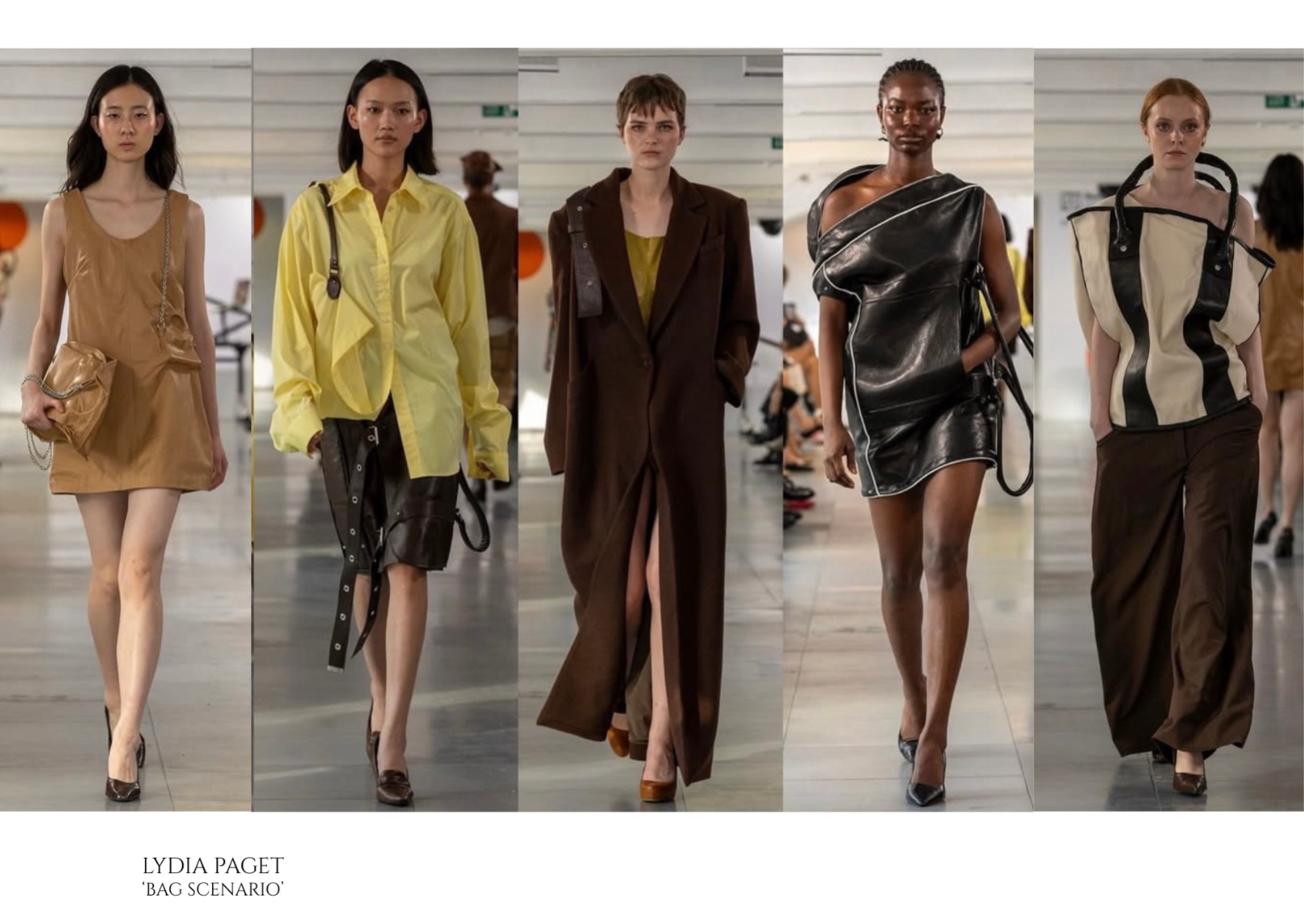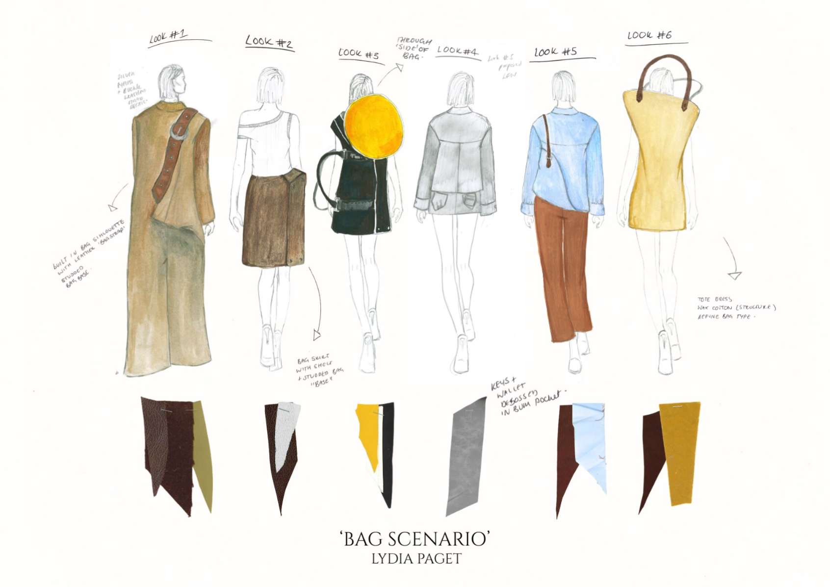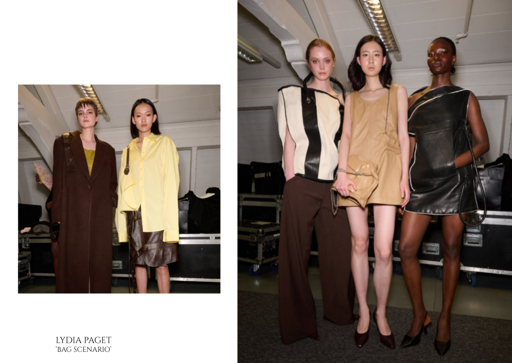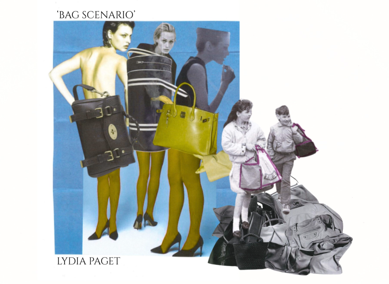 “Bag Scenario" explores the relationship between women and their bags, highlighting both the playful and sometimes inconvenient roles they occupy within a woman's dress.