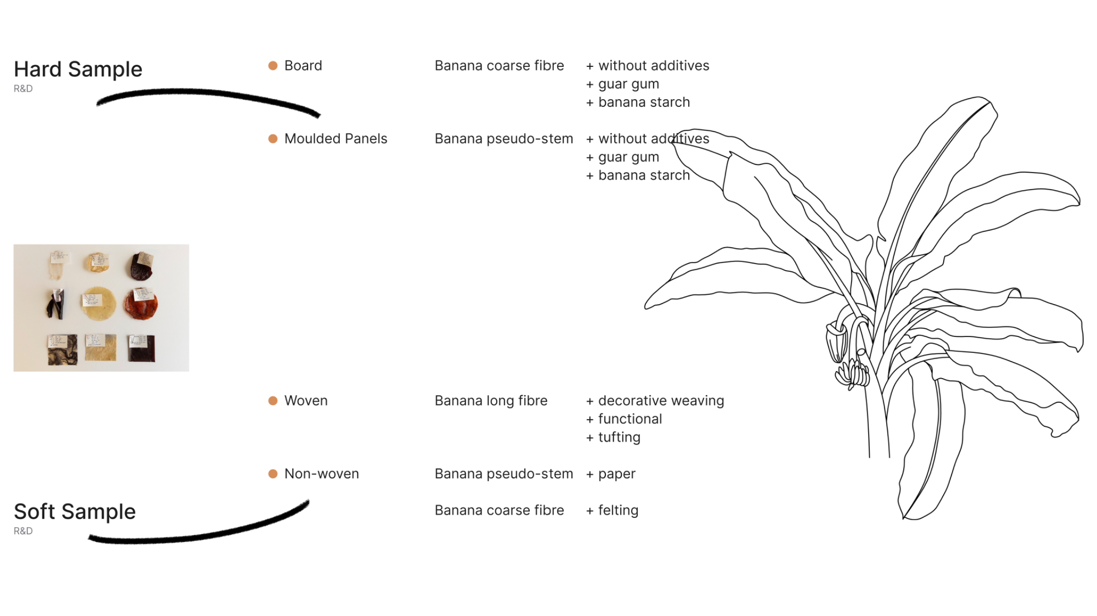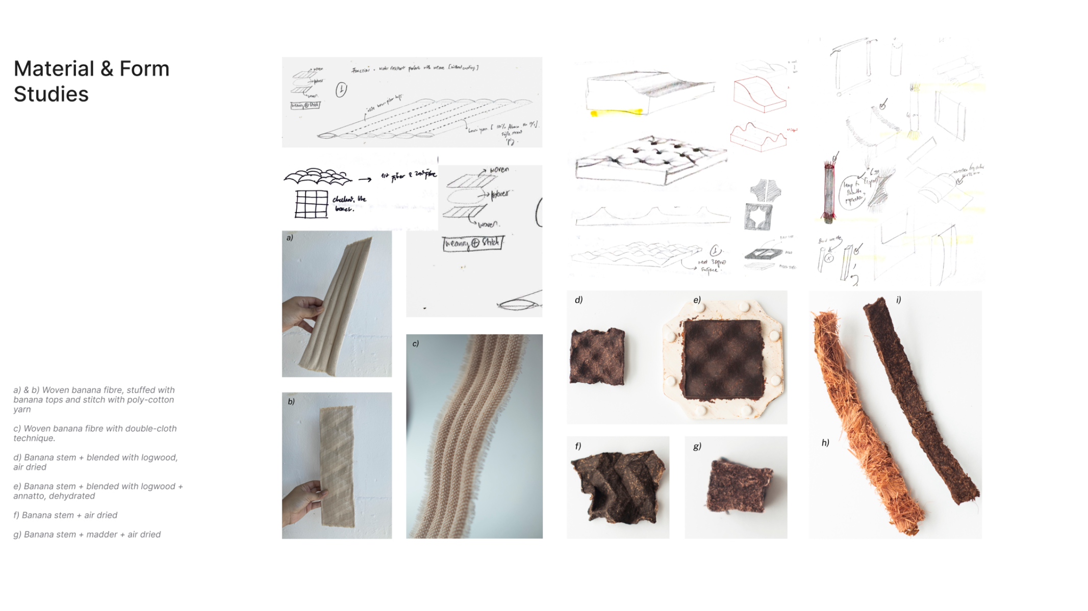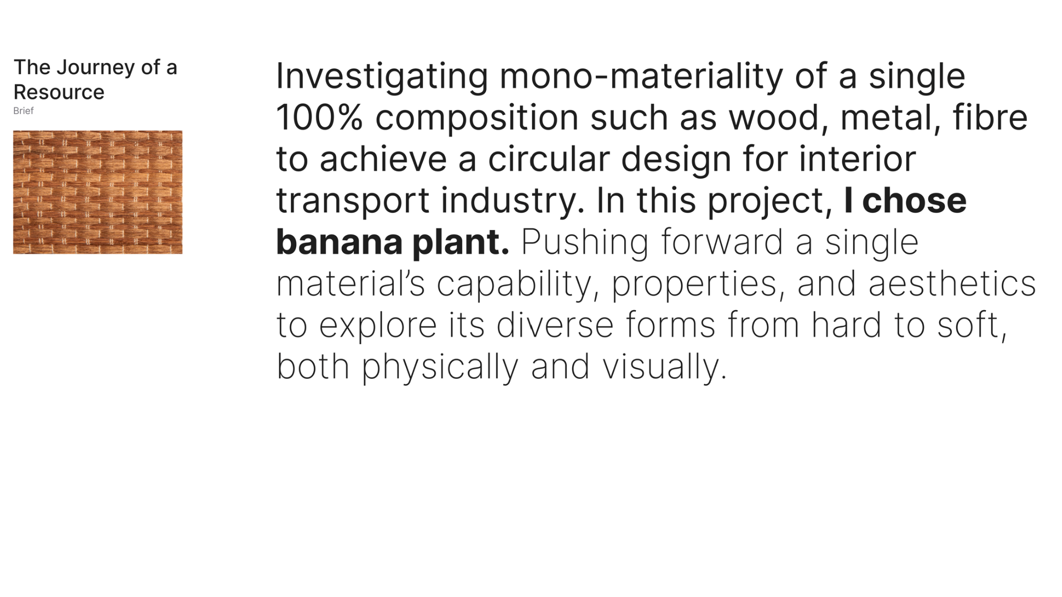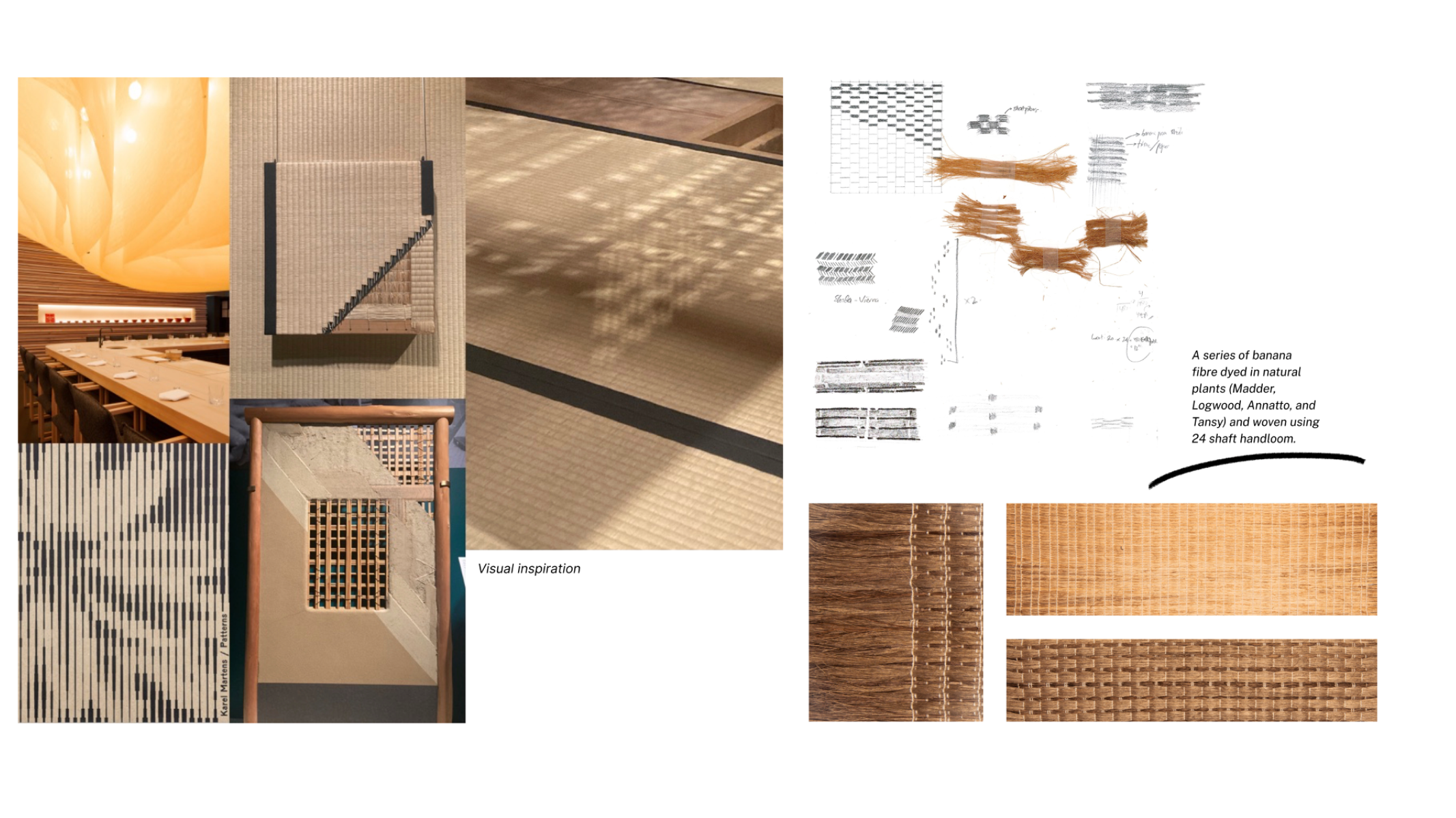 “Banana as Matter, Tradition as Knowledge” explores the banana plant as both a material and a vessel of cultural knowledge. Using the pseudo-stem, the plant’s main agricultural by-product, the project highlights banana fibre as a regenerative material requiring no extra land, water, or fertilizer. Traditionally used in Indonesia, Japan, Taiwan, and the Philippines to make textiles, ropes, and papers, the fibre is processed without added chemicals or synthetic bonding. These practices reflect ancestral knowledge of the plant’s potential. Through material experimentation, the project reconnects ecological responsibility with cultural memory, proposing low-impact systems rooted in traditional wisdom for the future.