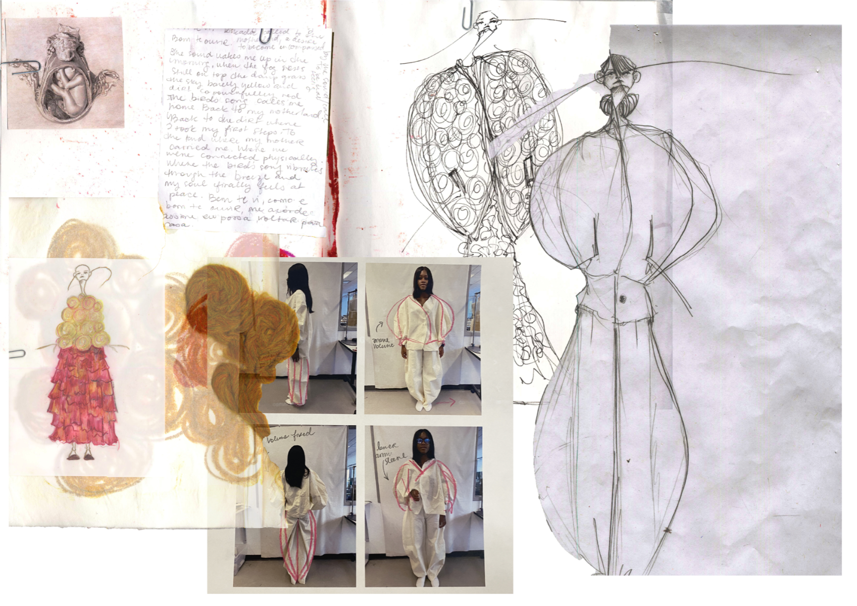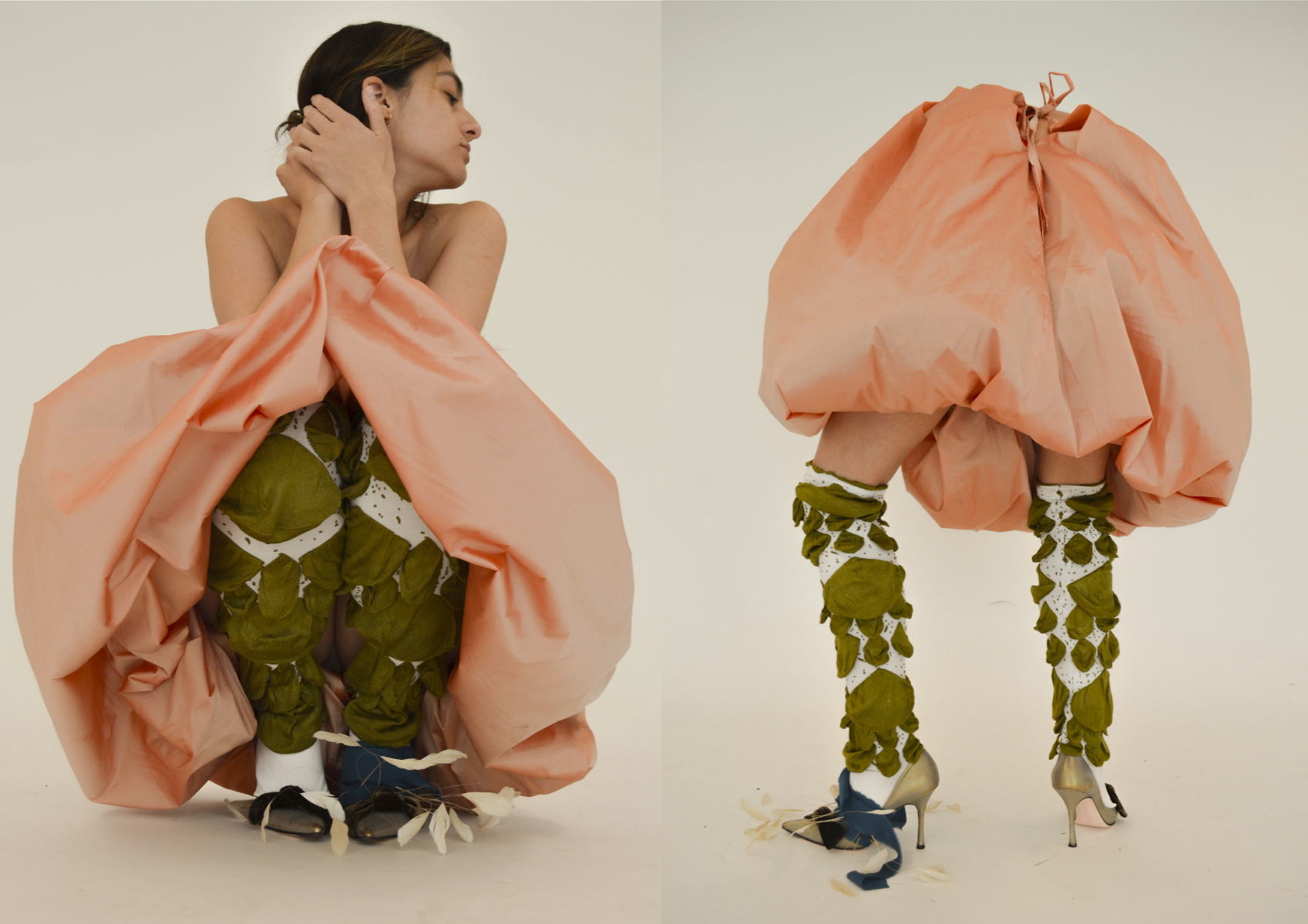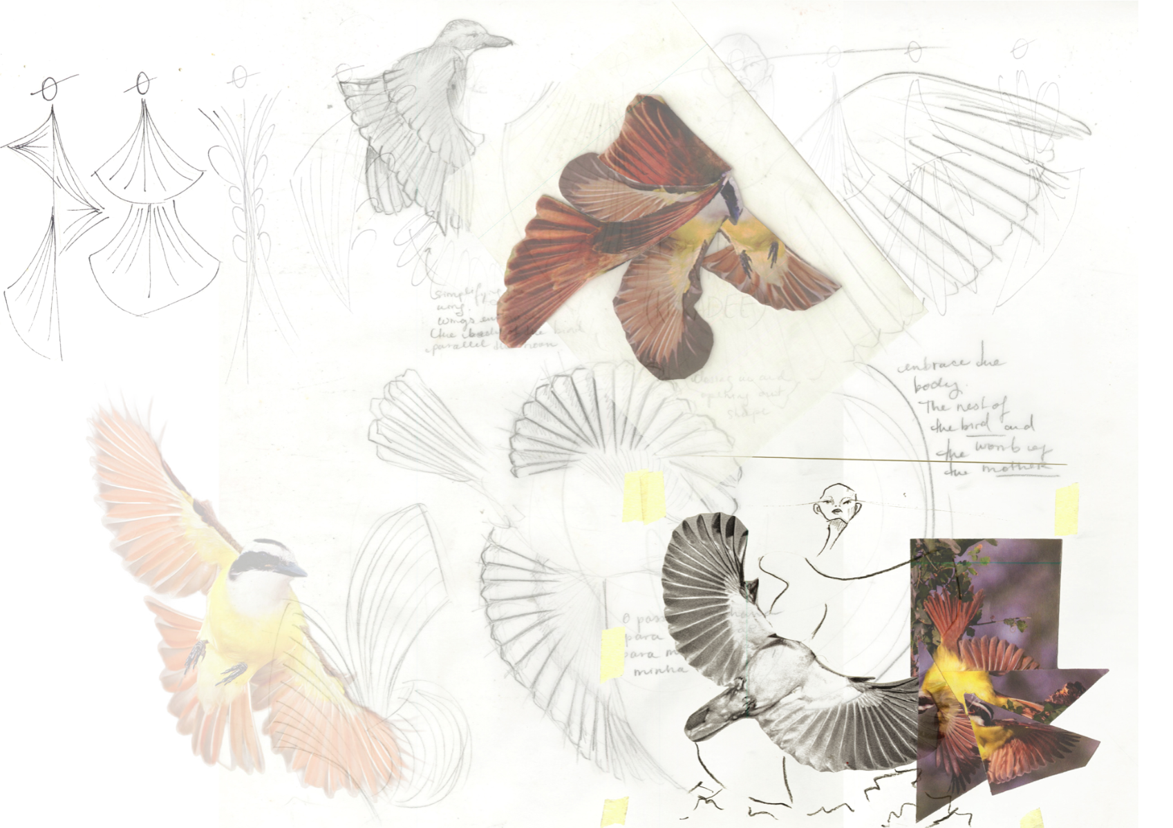 The song of the Kiskadee birds calls me home; to the smell of rain, grass, and the stains of red on my soles. I crave for its song, I crave the country that made me and my mother who raised me. I am tied to Brazil through my memories, through my skin that came from my mother, through the call of the Kiskadee that wakes me from my slumber. This collection explores the emotional and physical attachment that I hold to the sounds and presence of the Kiskadee bird, Brazil, and the person that gave me life; my mother. Through a series of shapes that embrace the body, structures that create movement, and colors that reflect my country; I tell a story of love between my motherland and I.