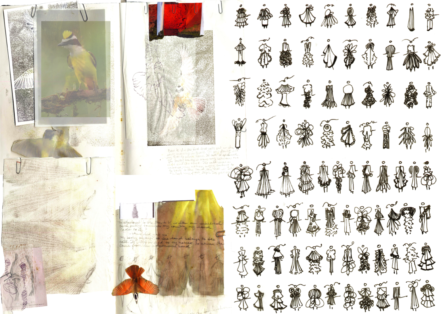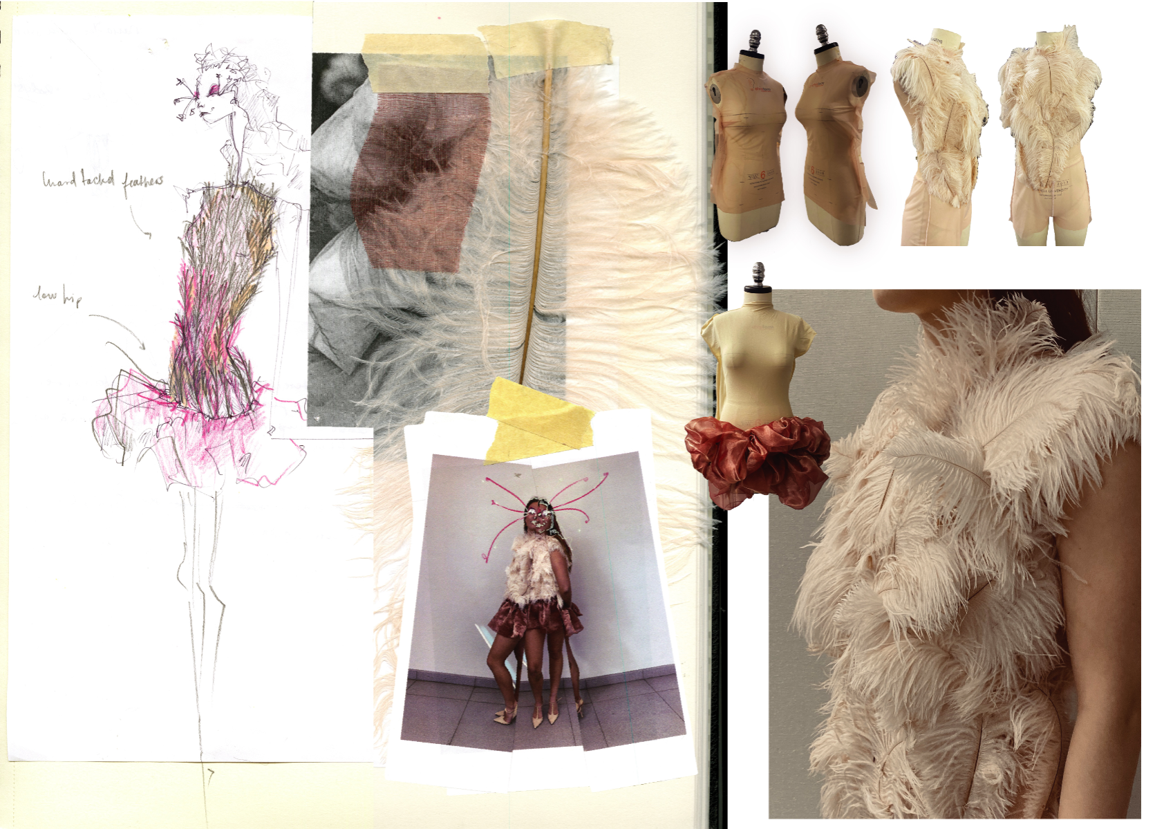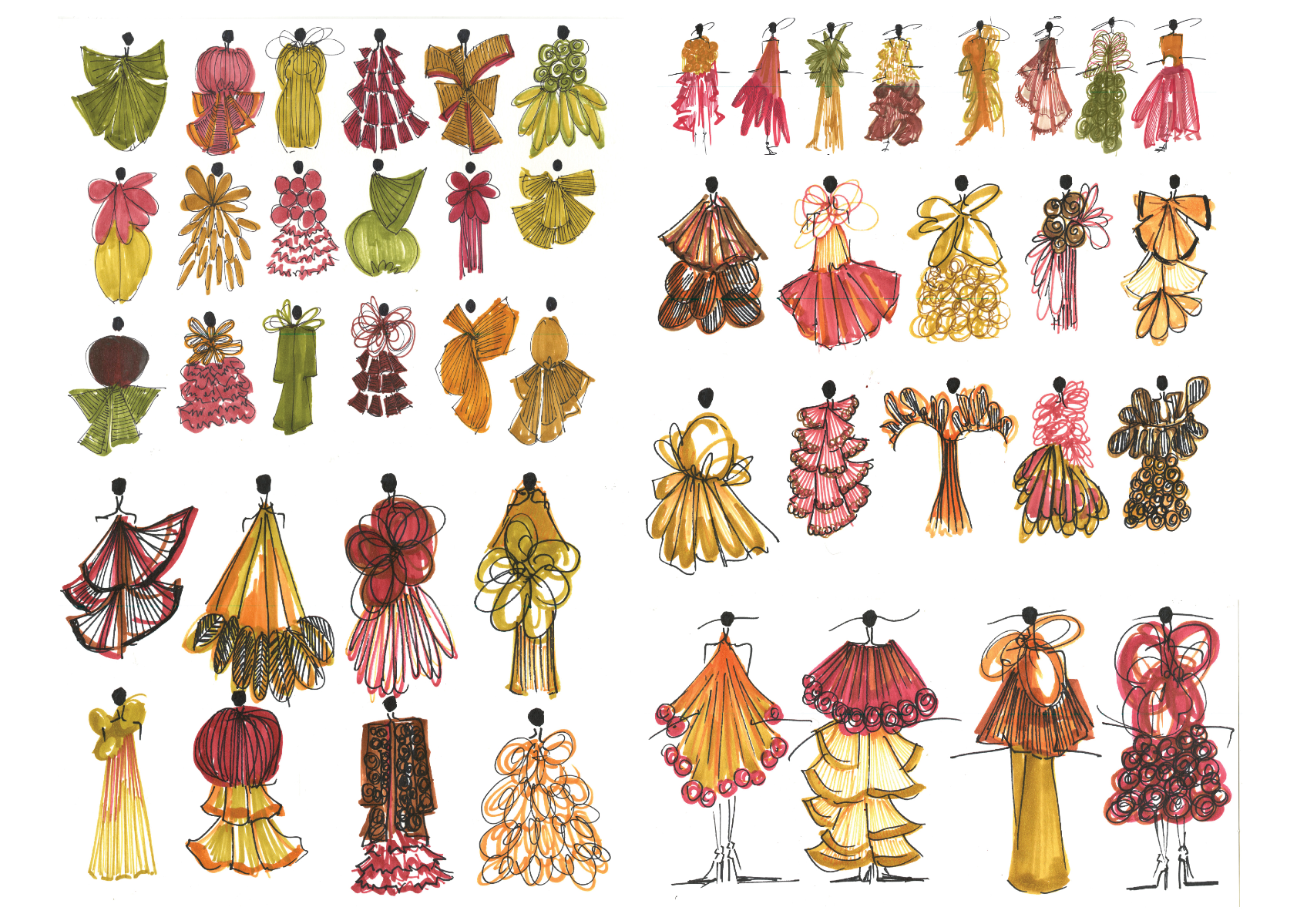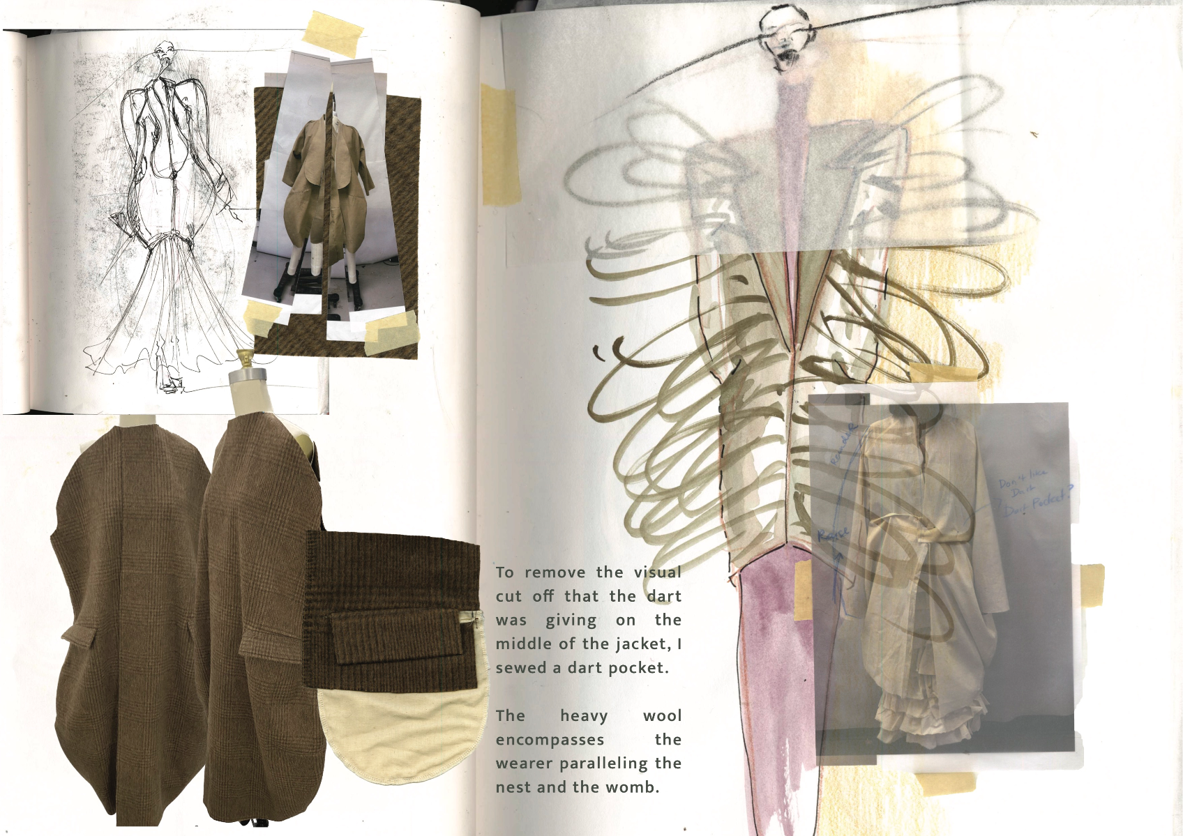The song of the Kiskadee birds calls me home; to the smell of rain, grass, and the stains of red on my soles. I crave for its song, I crave the country that made me and my mother who raised me. I am tied to Brazil through my memories, through my skin that came from my mother, through the call of the Kiskadee that wakes me from my slumber. This collection explores the emotional and physical attachment that I hold to the sounds and presence of the Kiskadee bird, Brazil, and the person that gave me life; my mother. Through a series of shapes that embrace the body, structures that create movement, and colors that reflect my country; I tell a story of love between my motherland and I.