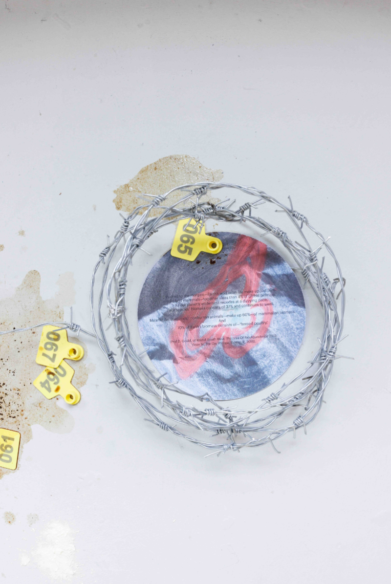 Examines the longest war on Earth—waged upon nonhuman animals who are here with us. With terror, this appetite reigns—creating devastation in its wake, consuming lifeworld's, silencing resistance, and pushing extinction as a systemic outcome. Through my practice I explore multispecies lifeworld's, intervening in capitalist time by drawing—contemplating bounded space-times and beings caught in human–animal cog-machines, like the horseshoe crab: its blue blood sustaining vaccines while their numbers collapse. As wilderness recedes, wild mammals fall below 4% of biomass; livestock swell to 60%; poultry comprise 70% of Earth’s avian biomass. (Yinon et al. 2018). Futures unravel.
