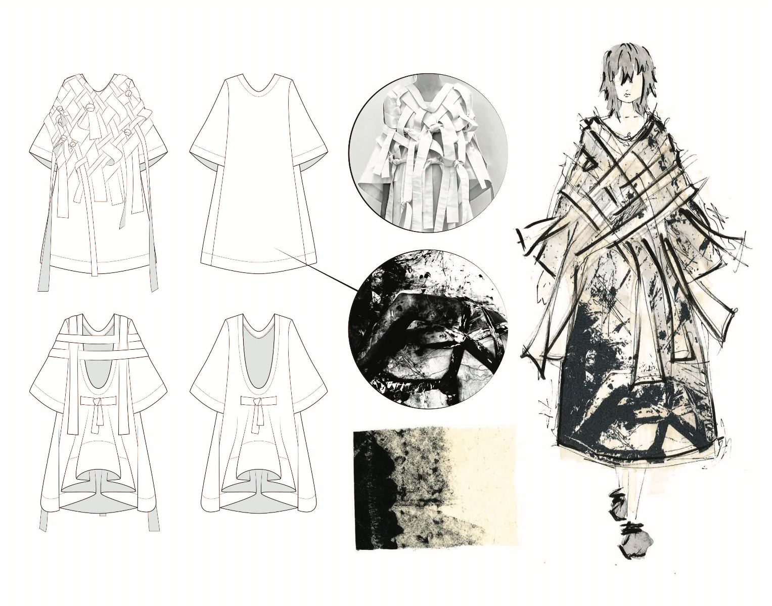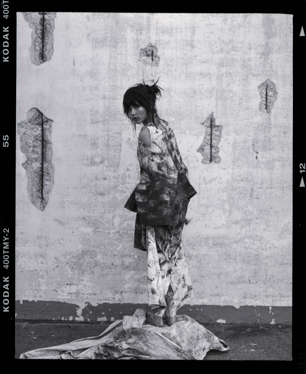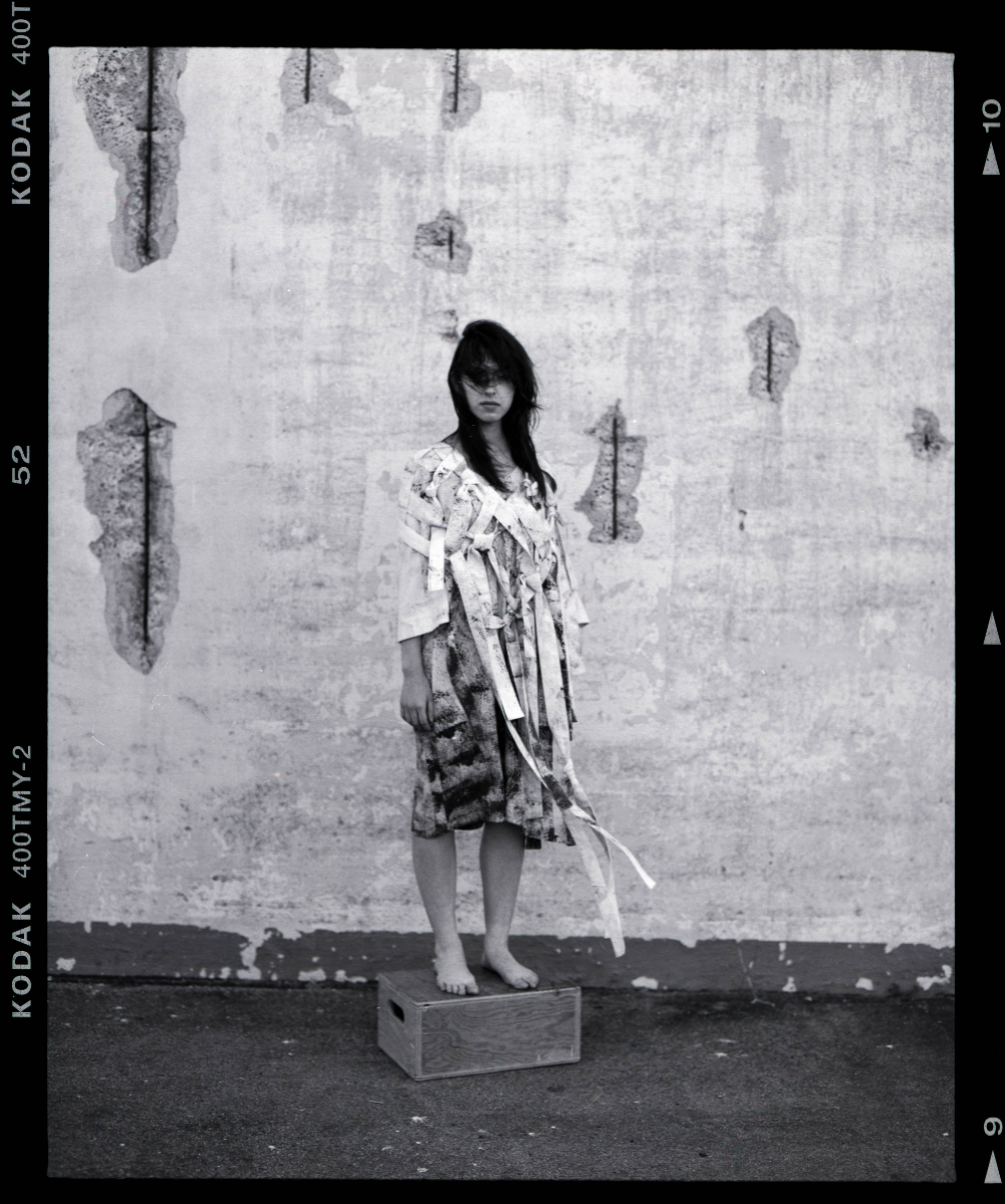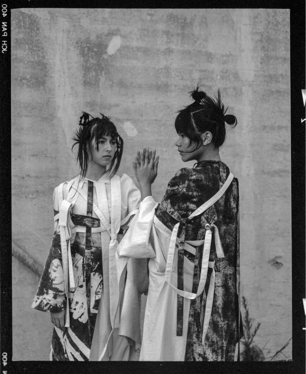 This project is inspired by a scene in The Silence of the Lambs in which Hannibal Lecter is completely restrained by a straight jacket, but is still in complete control of a room full of police. The straps and restriction of the upper body from the straight jacket are what spoke to me the most. I contrasted these motifs with flattering silhouettes and garments that allowed for and created movement in the lower body, while limiting the movement of the upper body and arms. This dichotomy was further explored through print – using a muslin fabric washed on high heat, I was able to create a soft, wrinkled fabric which was then printed with a dirty and chaotic textile design. The result is a cohesive, six-look collection that seeks to explore the dynamics of restraint vs. power through the use of restrictive clothing, print, and pattern cutting, while underlining my appreciation for craftsmanship.