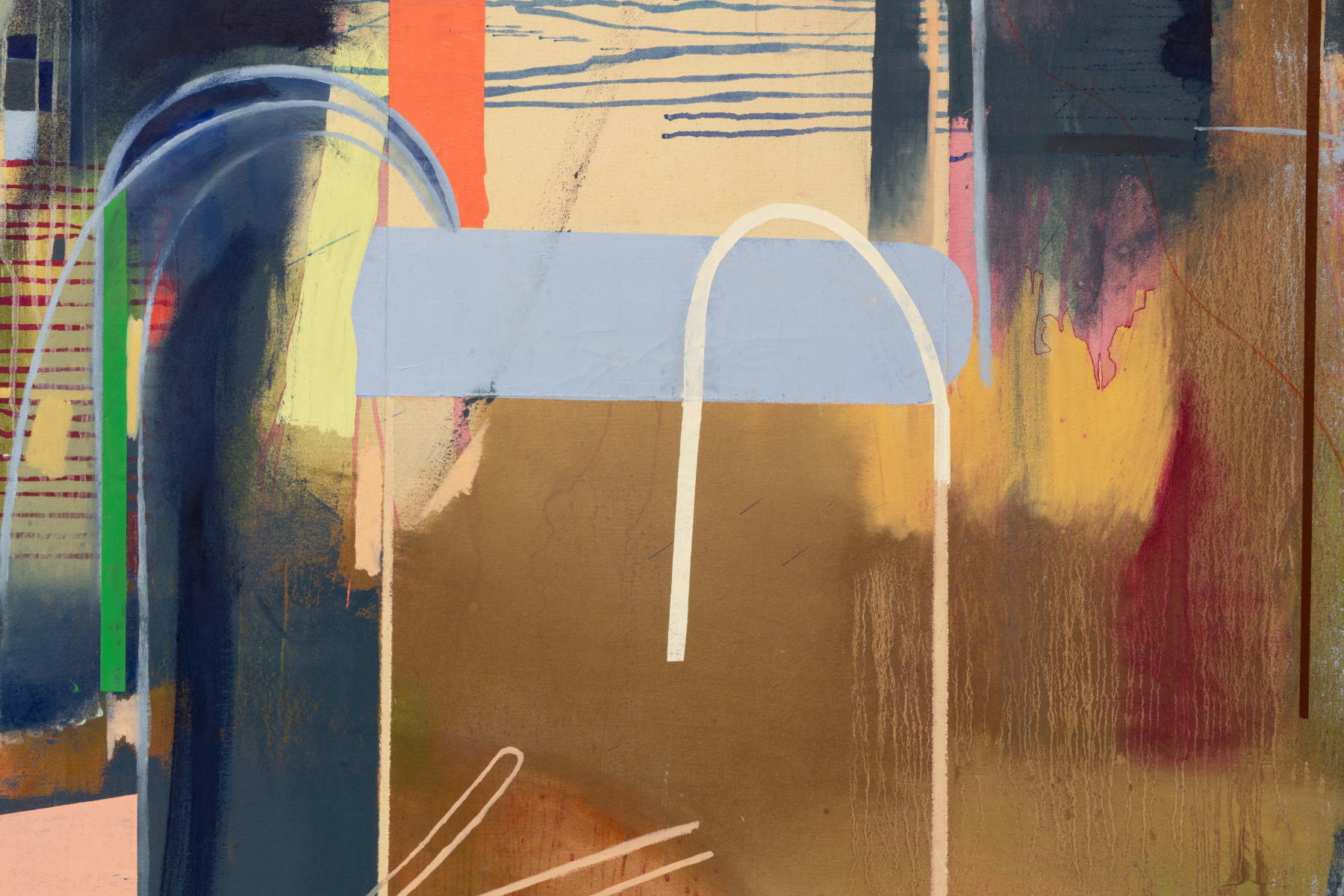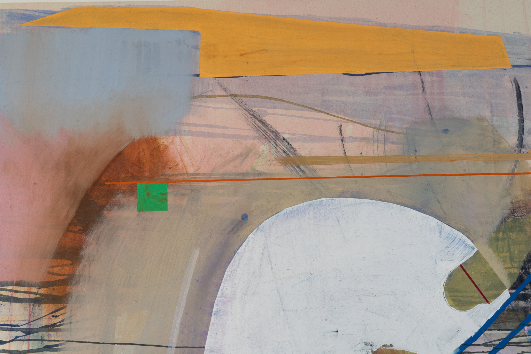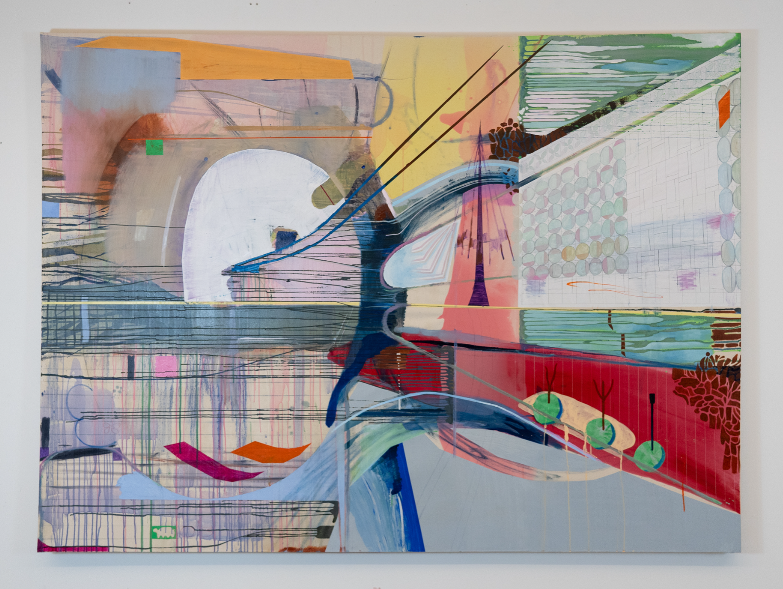 During my MFA studies at the Maryland Institute College of Art in Baltimore, MD, I created a series of paintings exploring the connections between my hometown, Taoyuan, Taiwan, and the city of Baltimore. The series began with my intention to find shared qualities and parallels between these two places. Day after day, I woke up and walked through the department hallway, peeking out the window and wondering what made the landscape I saw valuable. It is just a normal street corner between two roads with red bricks and several cars. What do you call normal? What leaves you feeling exposed, and what stirs your heart? I feel a rush of excitement as I enter the city. I feel a sense of thrill when I take in the landscapes around me. There must be a system where you put things in order. Start by drawing grids with a ruler, bind the messiness with shapes and colors until the chaos turns into structure, and hang it on the wall.