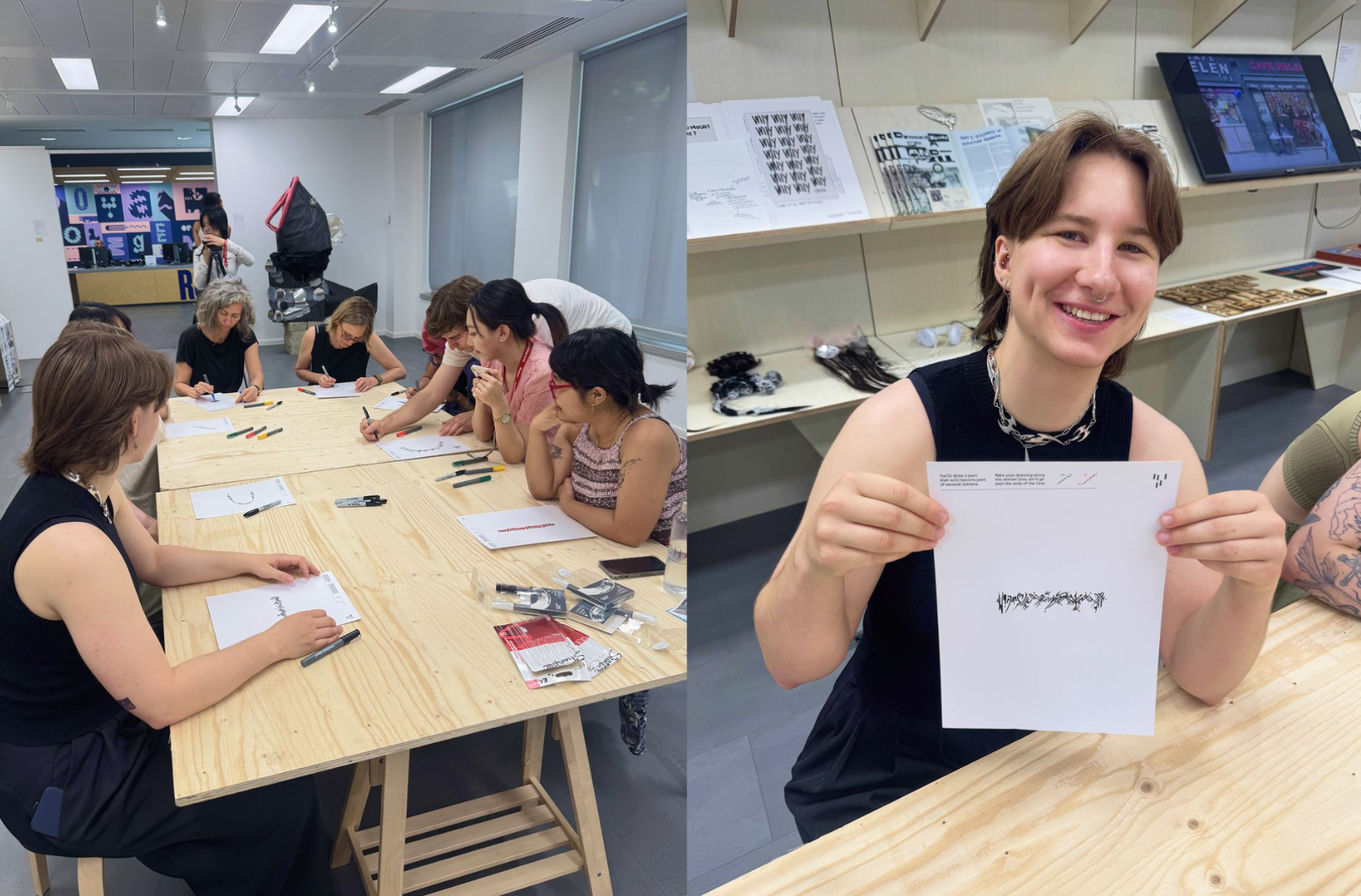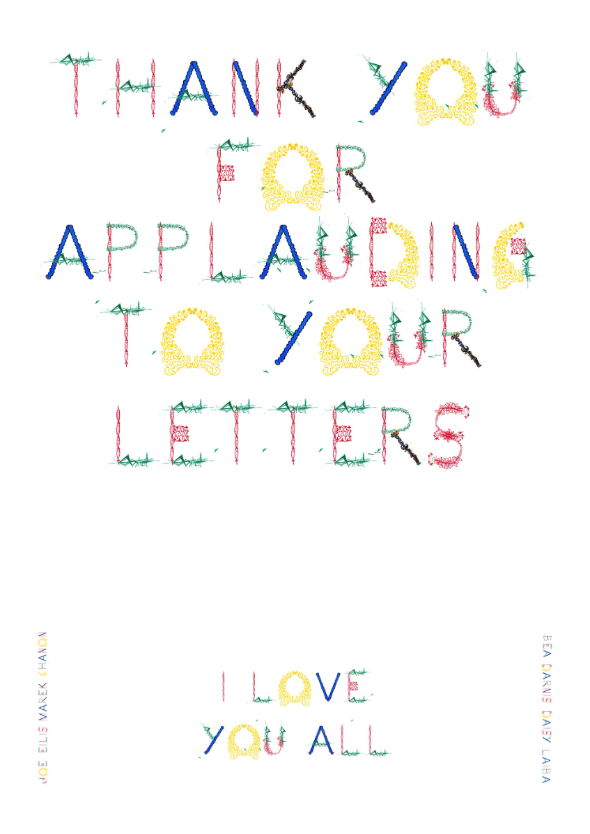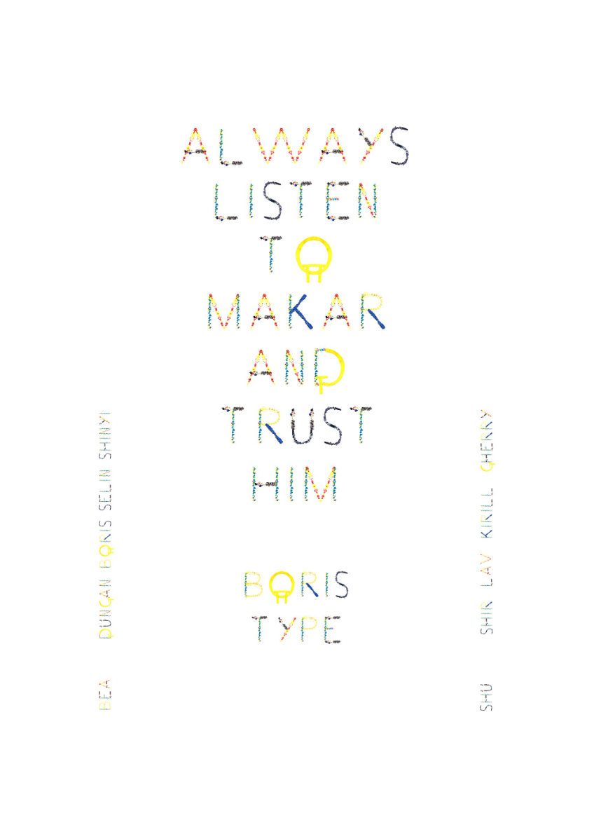 Collaborative Typeface is a workshop where participants draw shapes together, scan them and combine them in a typeface, later making a poster with the resulting font. Its aim is to explore building a common voice and human connection through co-creation and collaborative making.