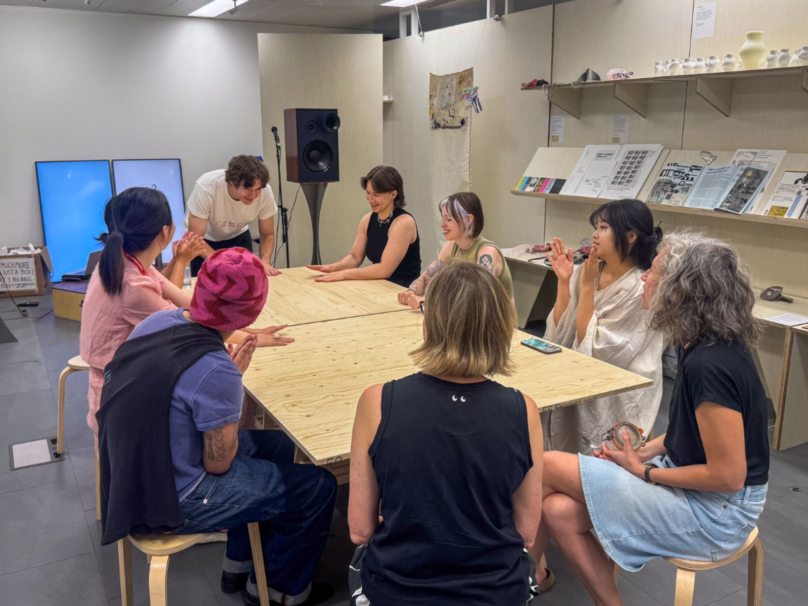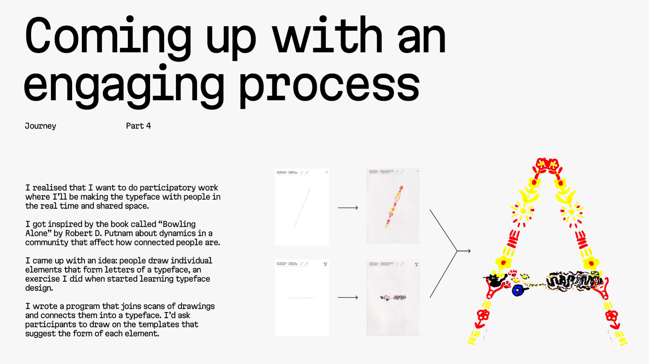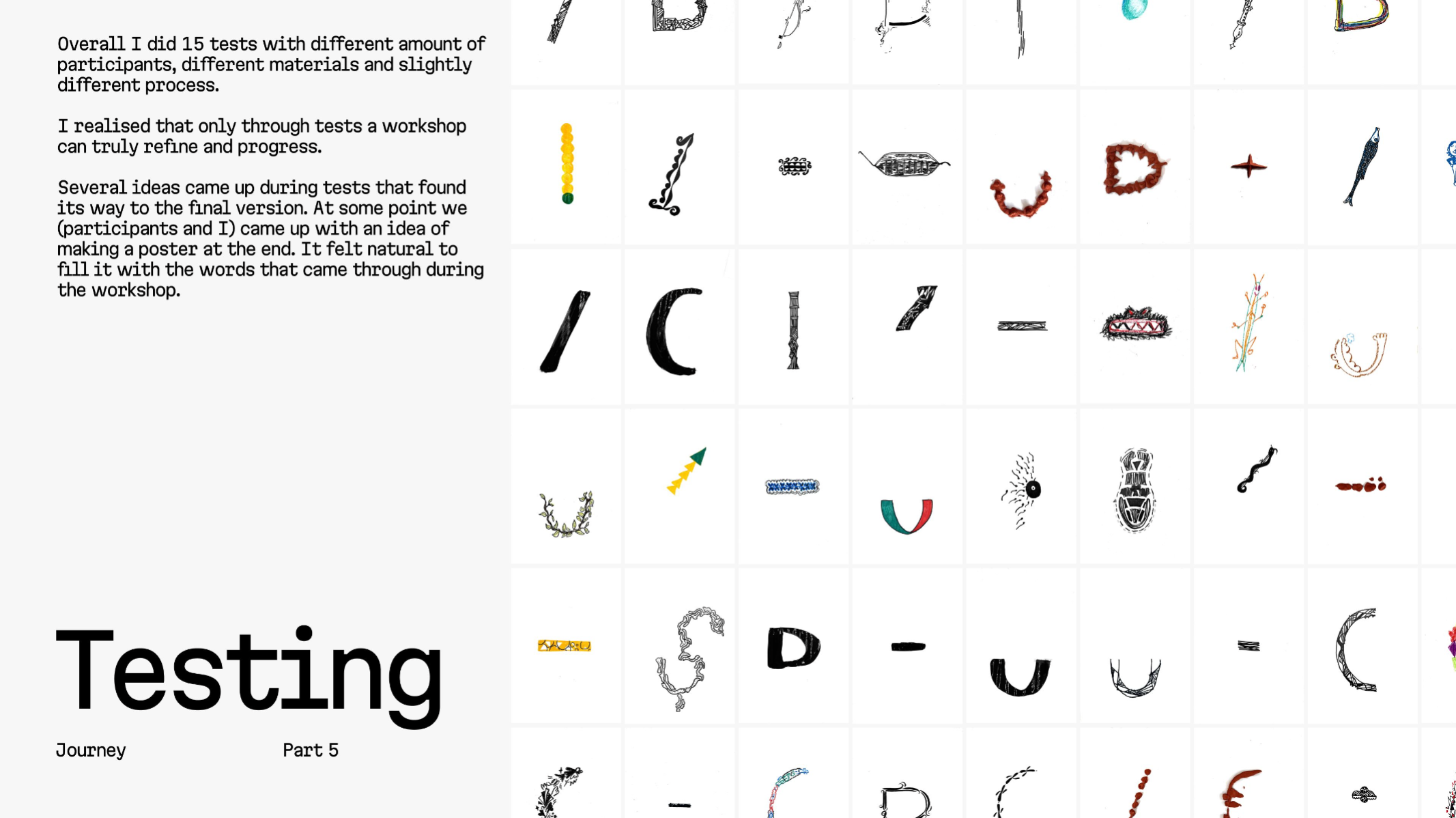 Collaborative Typeface is a workshop where participants draw shapes together, scan them and combine them in a typeface, later making a poster with the resulting font. Its aim is to explore building a common voice and human connection through co-creation and collaborative making.
