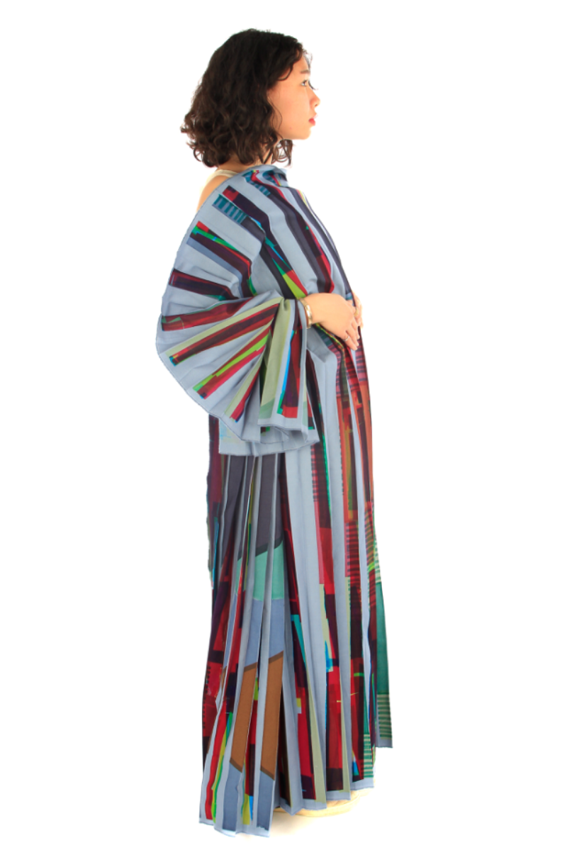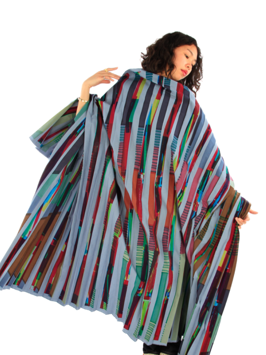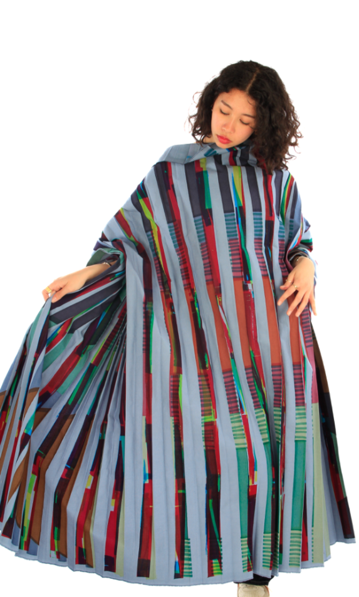 Create Something That Lasts encapsulates three collections of textiles. Episode one is inspired by the cityscape of Edinburgh, Scotland and its Georgian architecture, Episode two is inspired by the food and night markets of Kuala Lumpur, Malaysia. Episode three is where east meets west, where the two parts of Innes collide, through the use of plisse, taken from Scottish cultural dress, the kilt, and screen printing on top of the pleats to overlay motifs and patterns to create the mixed collection. Through the medium of textiles, Innes looks to start a conversation around the merging of cultures, where east meets west and where they contrast and complement each other. Growing up in Scotland Innes struggled to find other mixed children that had the same experience growing up in a mainly white country. Through her work she intends to share her story and experience, as well as let anyone that feels like they don’t belong, know that they are not alone. She wants to celebrate where and who she has come from and all the richness and vibrancy within those cultures and cultural crafts. As well as create a homage to her ethnicity and cultural identity, and create something that lasts.