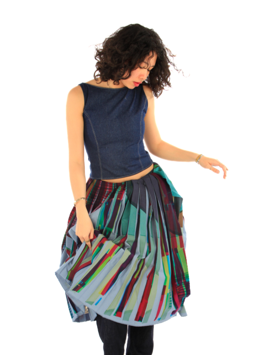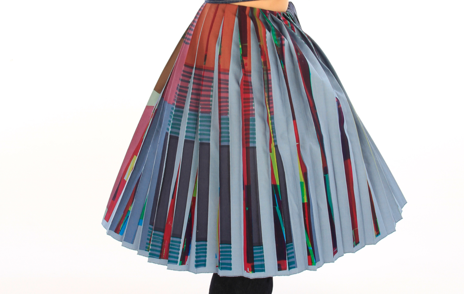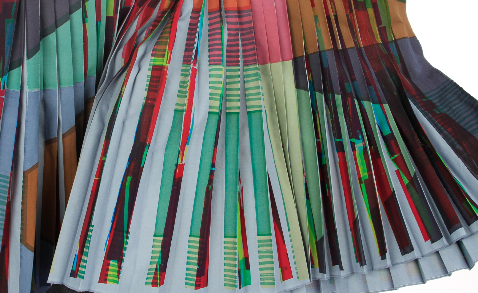 Create Something That Lasts encapsulates three collections of textiles. Episode one is inspired by the cityscape of Edinburgh, Scotland and its Georgian architecture, Episode two is inspired by the food and night markets of Kuala Lumpur, Malaysia. Episode three is where east meets west, where the two parts of Innes collide, through the use of plisse, taken from Scottish cultural dress, the kilt, and screen printing on top of the pleats to overlay motifs and patterns to create the mixed collection. Through the medium of textiles, Innes looks to start a conversation around the merging of cultures, where east meets west and where they contrast and complement each other. Growing up in Scotland Innes struggled to find other mixed children that had the same experience growing up in a mainly white country. Through her work she intends to share her story and experience, as well as let anyone that feels like they don’t belong, know that they are not alone. She wants to celebrate where and who she has come from and all the richness and vibrancy within those cultures and cultural crafts. As well as create a homage to her ethnicity and cultural identity, and create something that lasts.