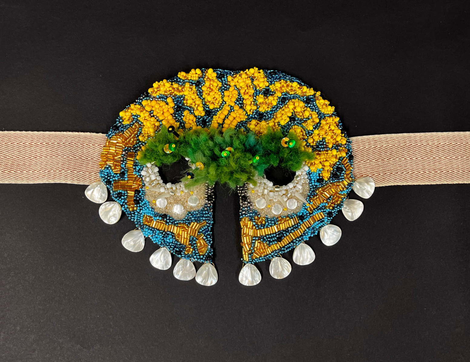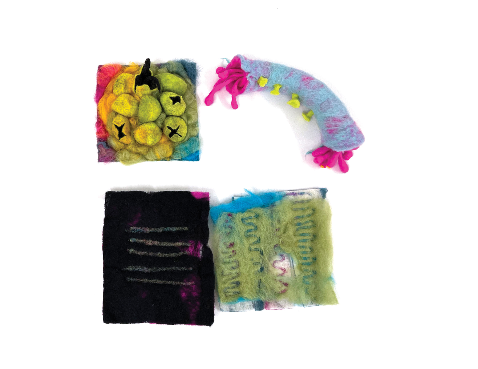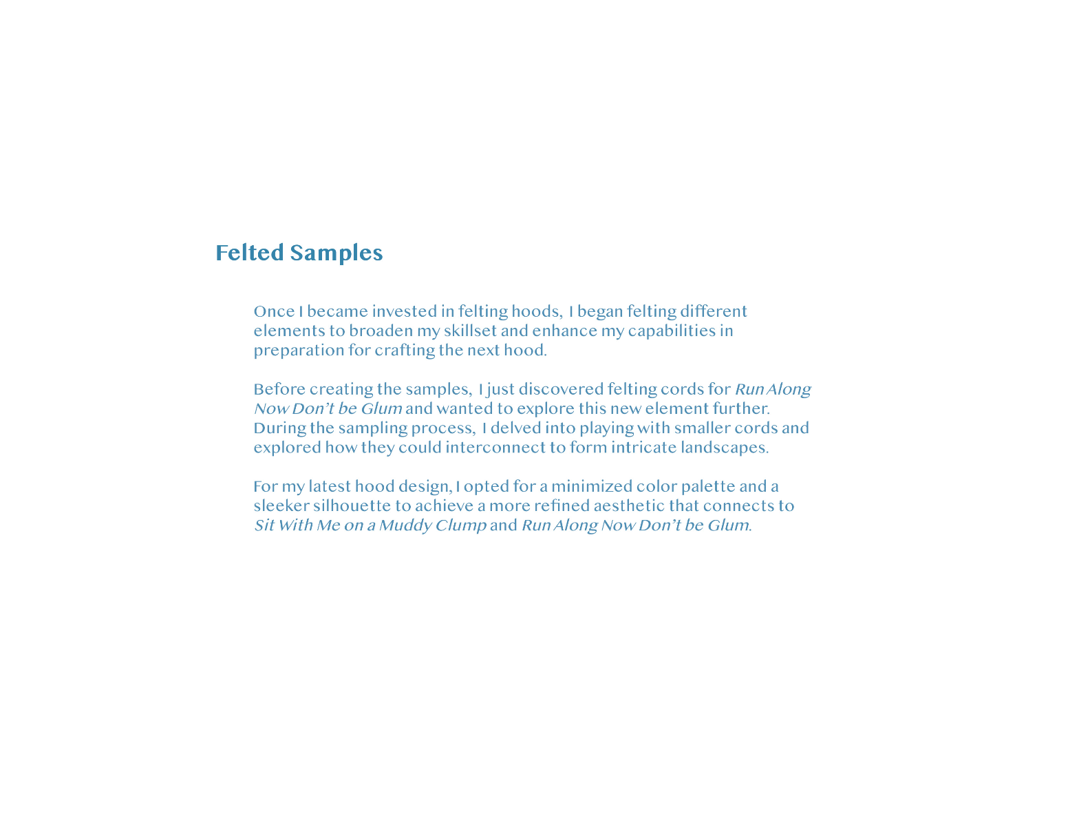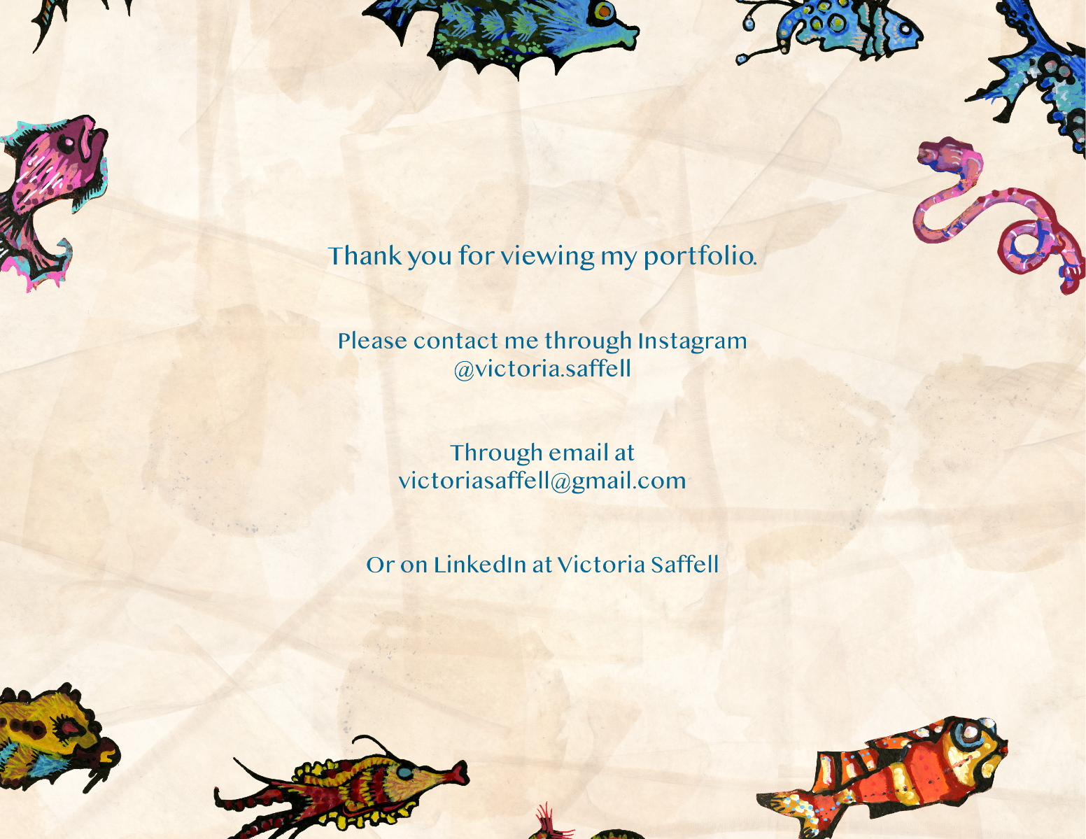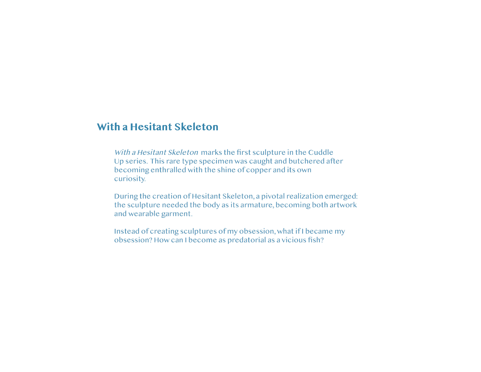 Victoria Saffell reflects natural life in a comfortable yet grim way by merging dark perspectives with bright colors and soft textures. The story of Little Red Riding Hood has greatly inspired her throughout her craft, sparking her interest in darker themes of survival and character narratives. In her collections, she draws inspiration from song lyrics and incorporates them into her work titles. Her current musical inspiration comes from Cosmo Sheldrake’s song “Come Along Now.” Victoria Saffell’s evolving collection, Cuddle Up, combines soft sculpture and surface design, showcasing her skills from Savannah College of Art and Design. As she delves into the predator-prey dynamic, survival emerges as a captivating theme for Victoria. It's the immediate, instinctual conflict that piques her interest. Within her art, she explores the predators lurking in the deep waters, fascinated by their variations of spikes, teeth, tendrils, eyes, and stingers. Each of these features serves a crucial purpose, enhancing their survival instincts with every movement. Through her creations, she seeks to transform the wearer into a predator of the depths, serving as a reminder that we, too, are predators lurking for a chance to attack.