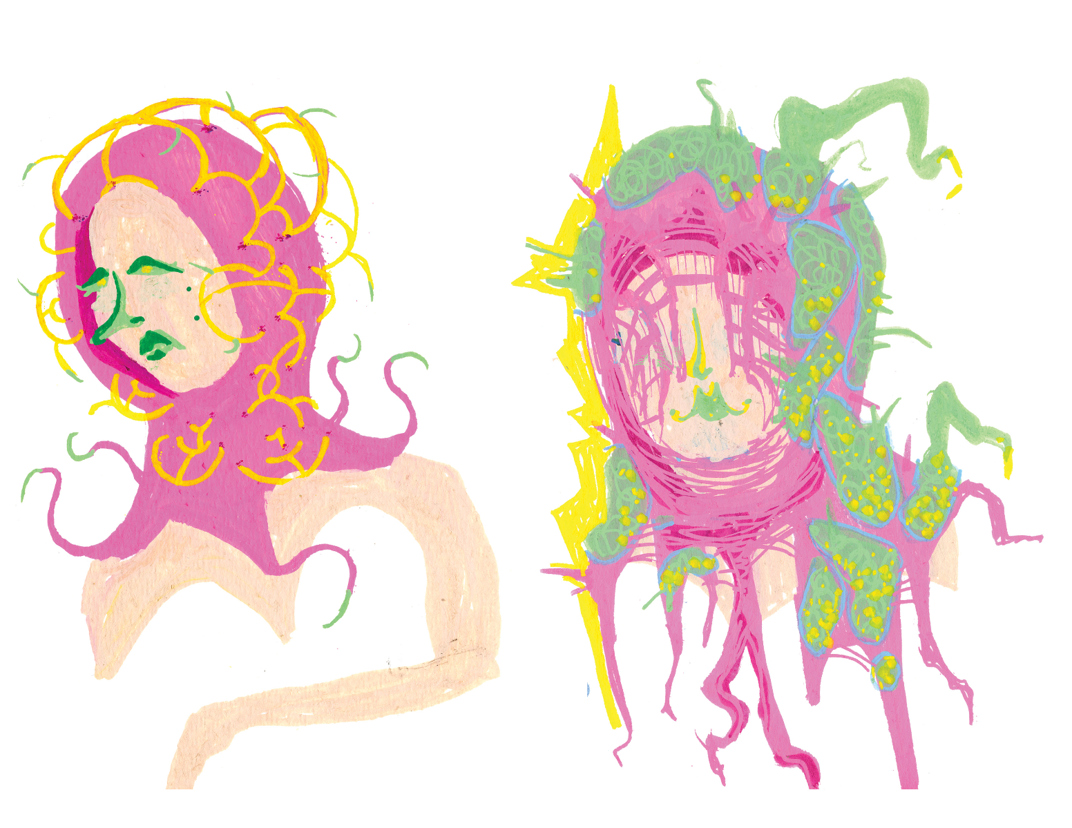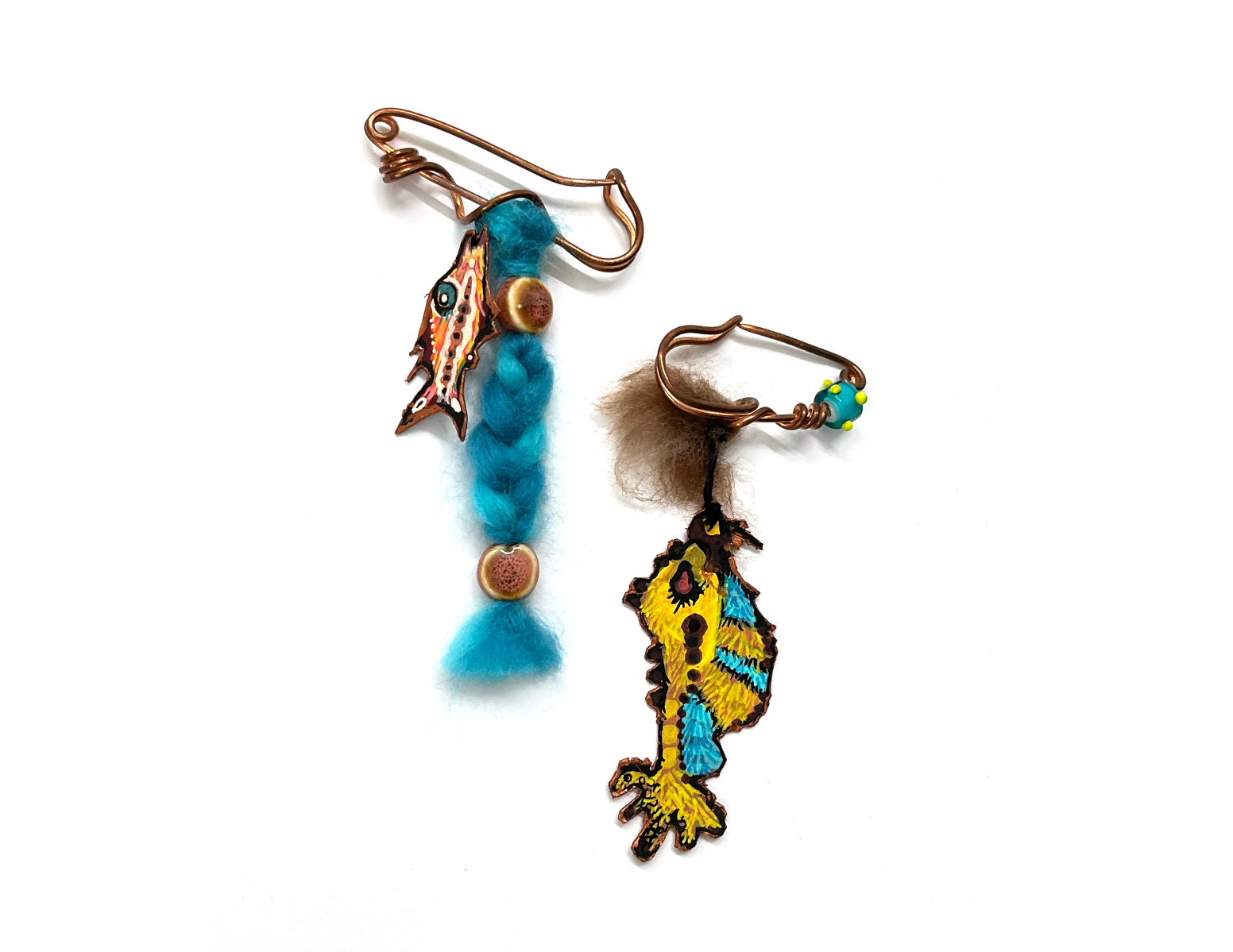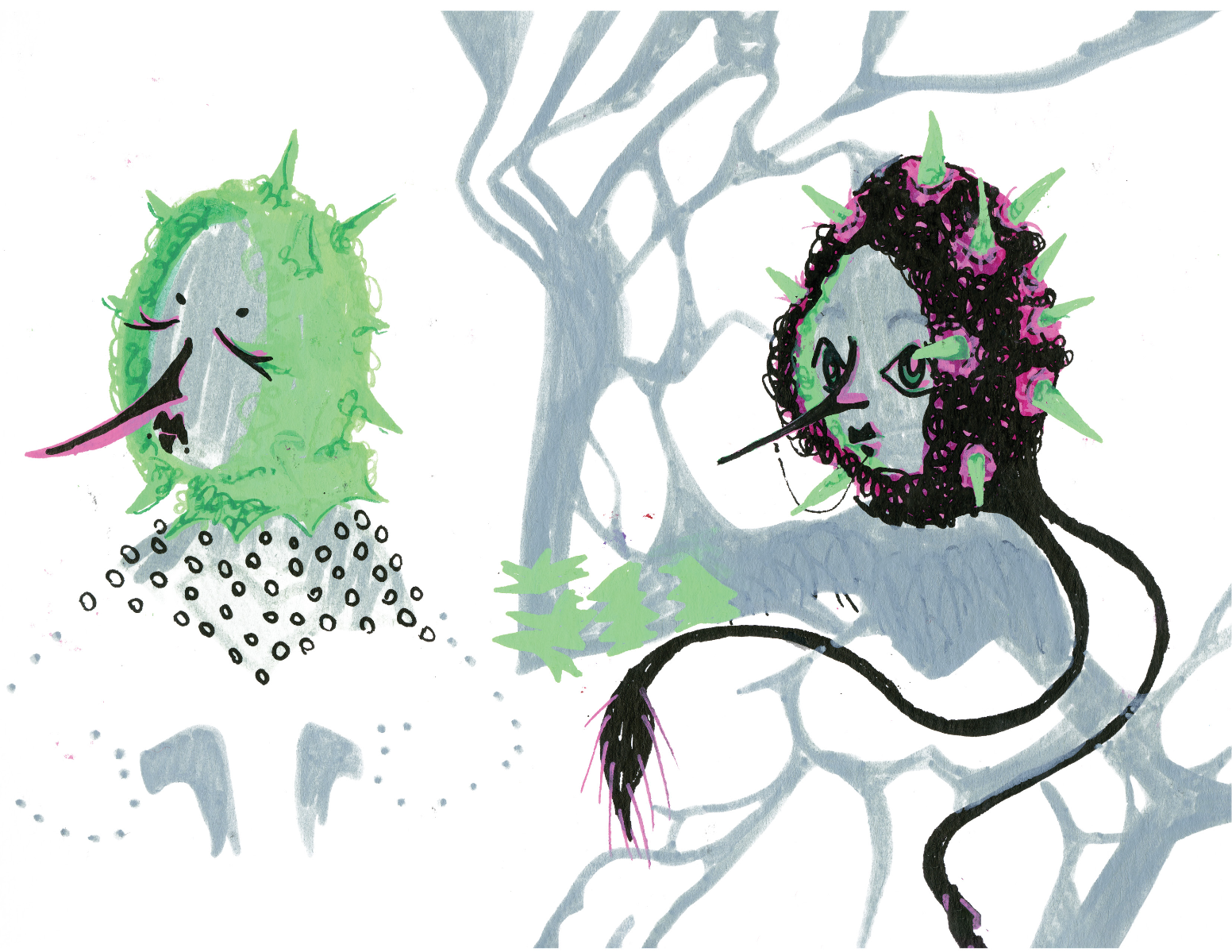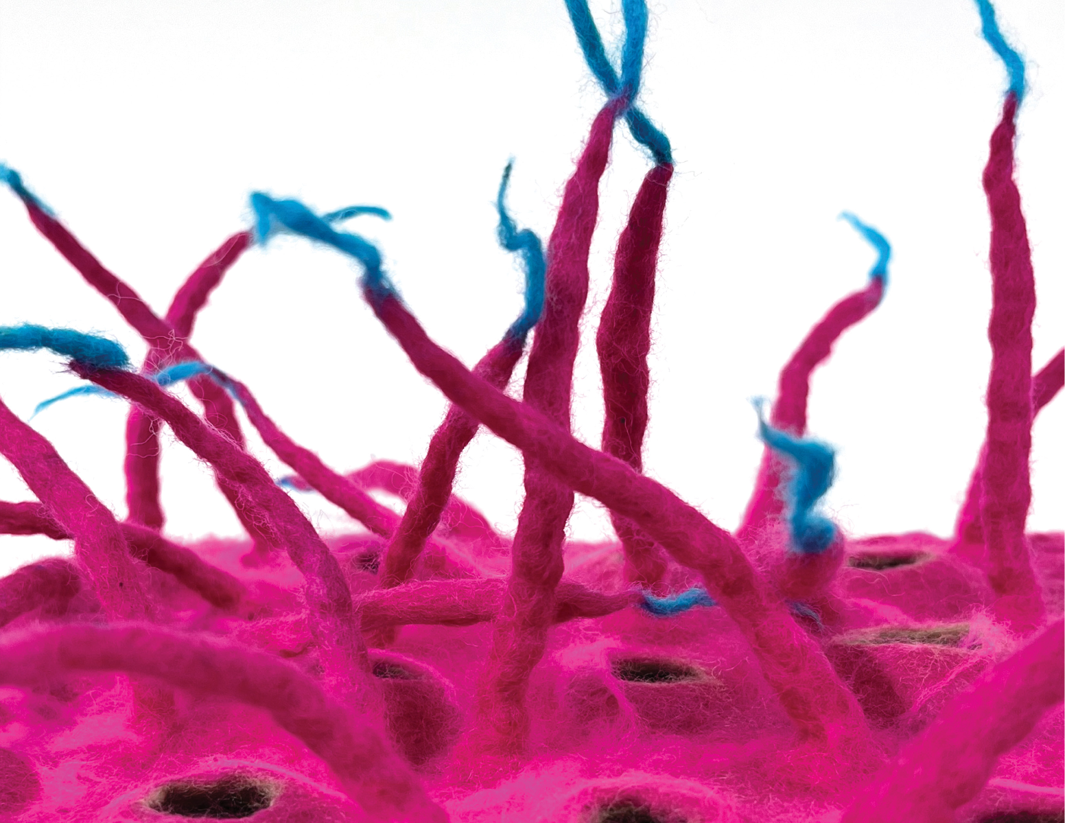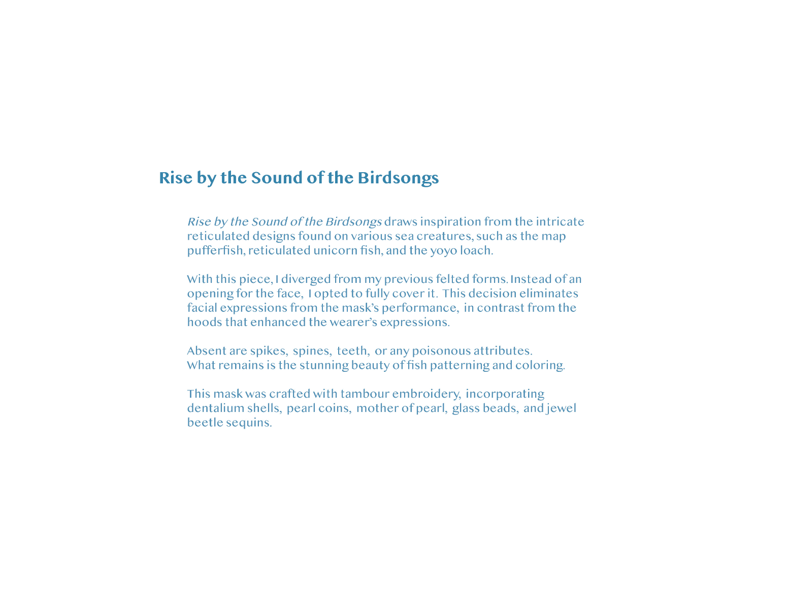 Victoria Saffell reflects natural life in a comfortable yet grim way by merging dark perspectives with bright colors and soft textures. The story of Little Red Riding Hood has greatly inspired her throughout her craft, sparking her interest in darker themes of survival and character narratives. In her collections, she draws inspiration from song lyrics and incorporates them into her work titles. Her current musical inspiration comes from Cosmo Sheldrake’s song “Come Along Now.” Victoria Saffell’s evolving collection, Cuddle Up, combines soft sculpture and surface design, showcasing her skills from Savannah College of Art and Design. As she delves into the predator-prey dynamic, survival emerges as a captivating theme for Victoria. It's the immediate, instinctual conflict that piques her interest. Within her art, she explores the predators lurking in the deep waters, fascinated by their variations of spikes, teeth, tendrils, eyes, and stingers. Each of these features serves a crucial purpose, enhancing their survival instincts with every movement. Through her creations, she seeks to transform the wearer into a predator of the depths, serving as a reminder that we, too, are predators lurking for a chance to attack.