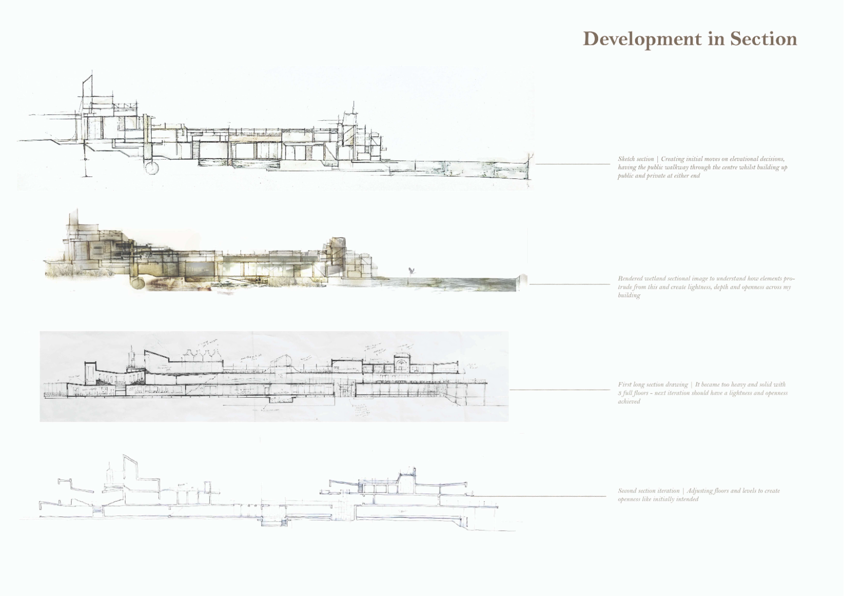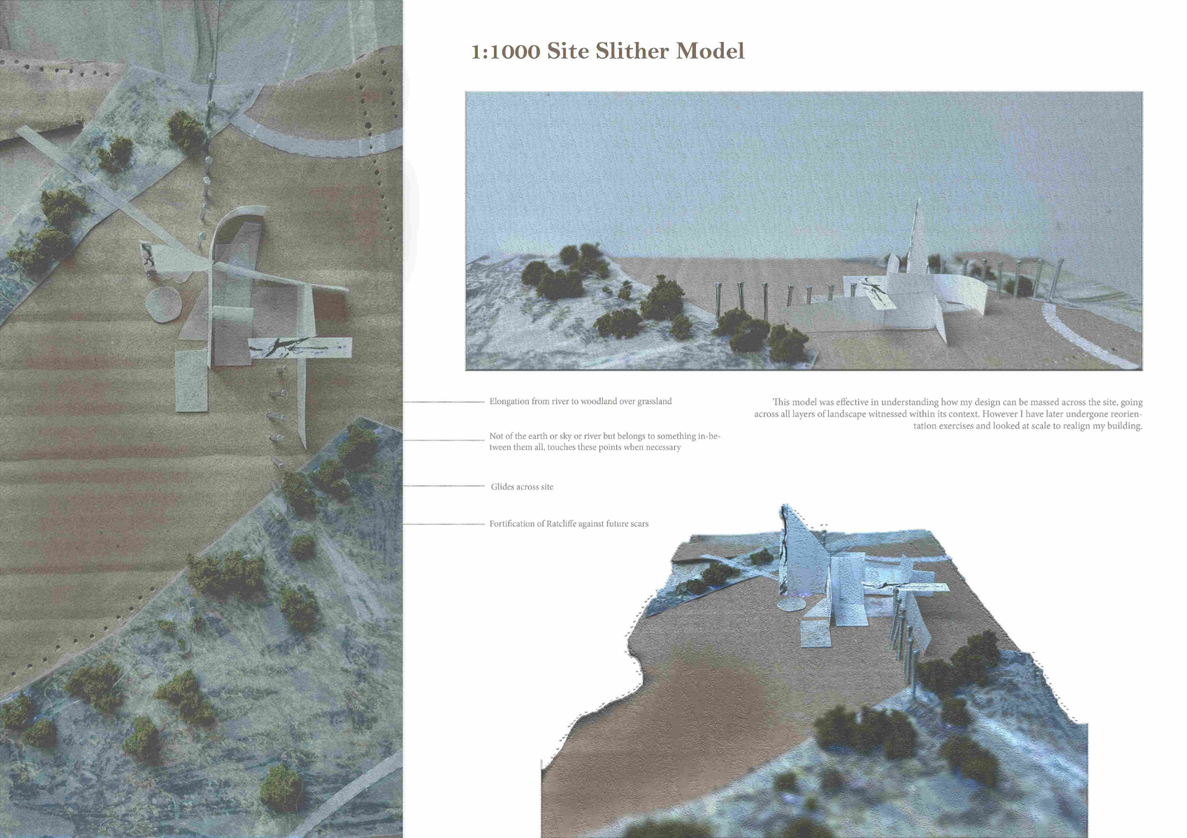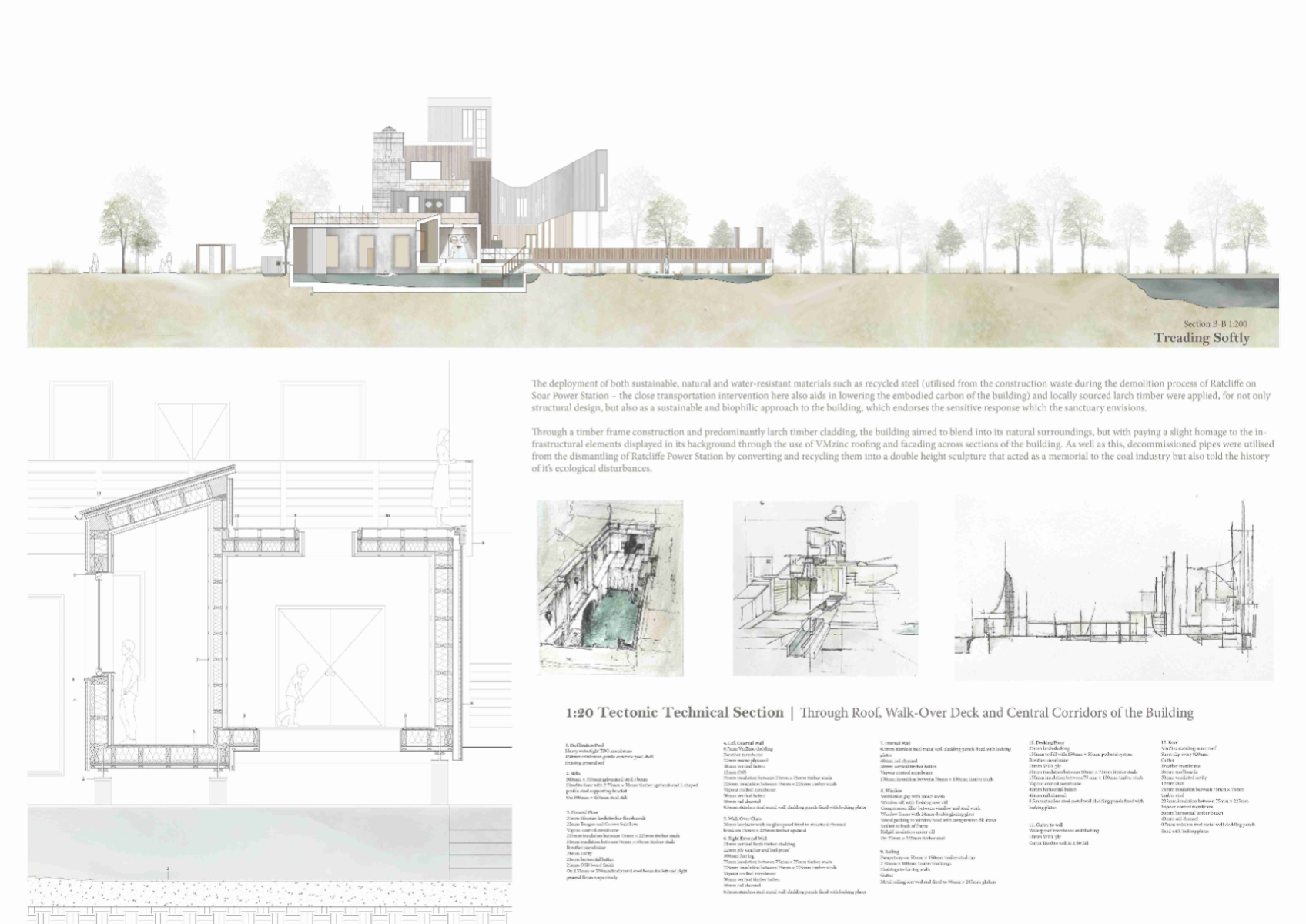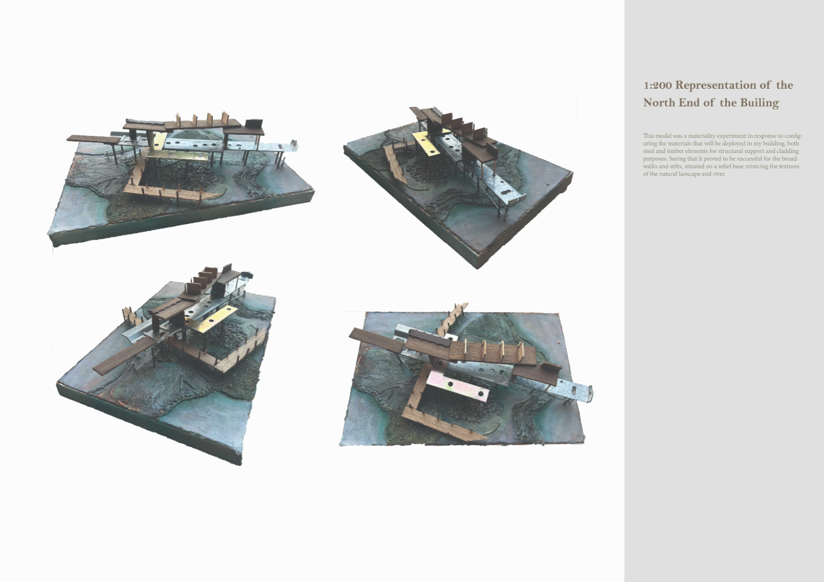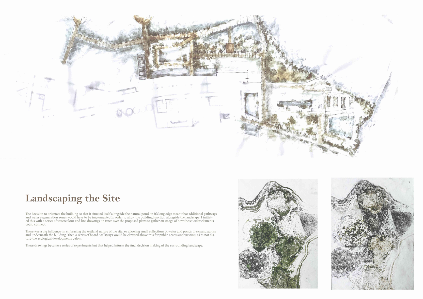 The framework for a prosperous existence relies on the nurturing of ecology. However, within the treatment of water, a dominance-based relationship has evolved. Access to clean water is a precious privilege, with 40% of the world’s population lacking access to basic sanitation. However, this goes unacknowledged with the sabotage of purification to our rivers. The mismanagement of sewerage discharge, led to 464,056 sewerage spillages in 2023. Over 5000 of which were reported along the River Soar. Relating directly to the project’s site at Ratcliffe on Soar, Nottingham, England, these fluid dispossessions activate a duty to revitalise what the waters have been stripped of; care. Inciting the necessity for an installation of an empathetic environment, whereby rights are restored to the river as a living entity. The building gives rise to the provision of a place for empowering individuals to engage with the role as ‘Custodians of Water.’ The public building encapsulates regeneration zones, workshops and labs forming democratic discussion spaces as well as channeling the River Soar into natural pools that purify polluted river water into biodiverse ecosystems. This project aims to combat the effects of a negligent society, advocating for a community of collective protection in place of individual gain.