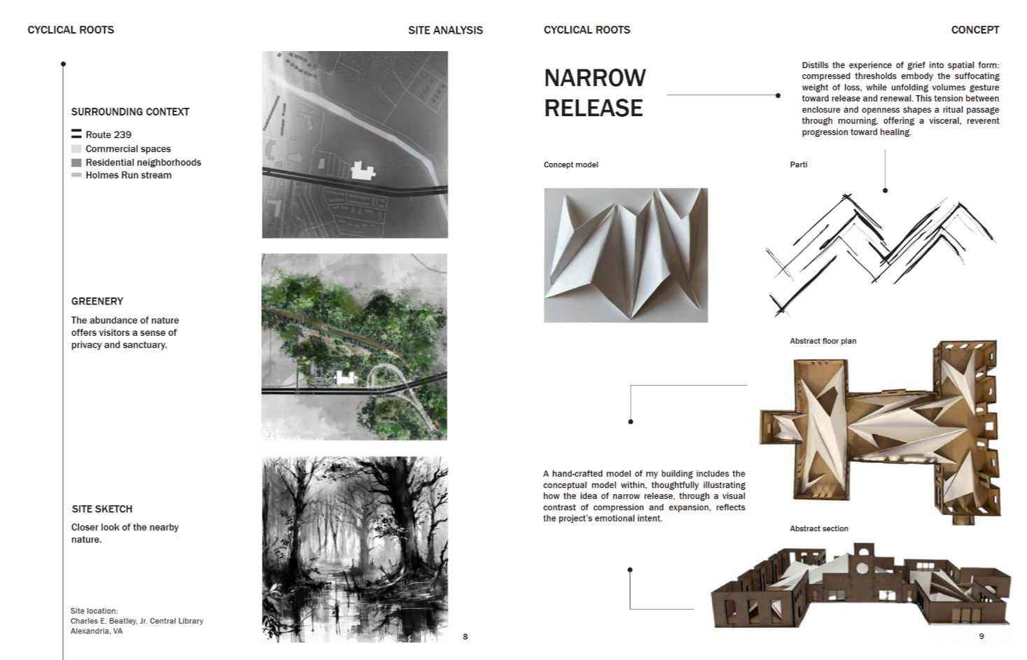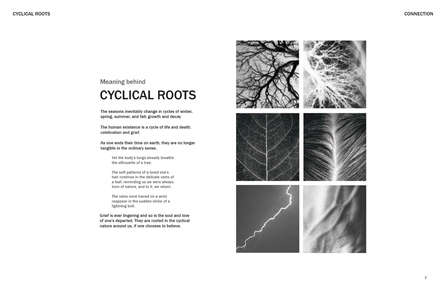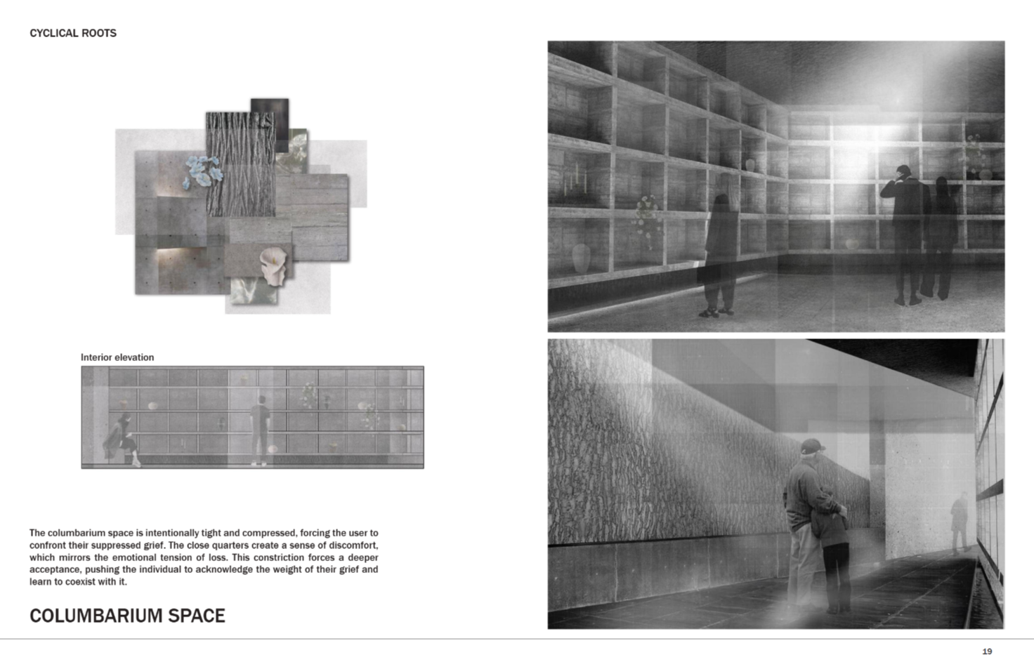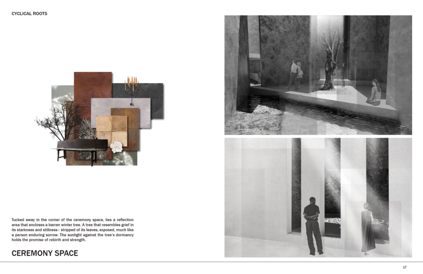Cyclical Roots is a place where nature guides grief and gently allows for the rebirth of the human spirit. It holds the ashes of the departed and offers meaningful solitude for those mourning. The name is drawn from the rhythm of the seasons—winter’s decay mirroring the heaviest moments of grief, and spring’s blooming flowers and lengthening days reflecting the gradual return of warmth and resilience. Loss is not just sorrow, but an enduring testament to love and connection. In every leaf, flower, and turning tree found inside Cyclical Roots, the memory of the departed lingers—patient, tender, and ever-present for those who choose to see.