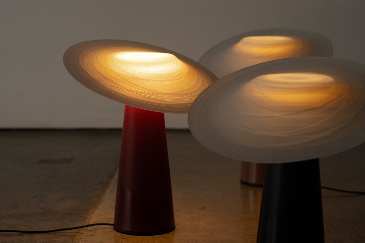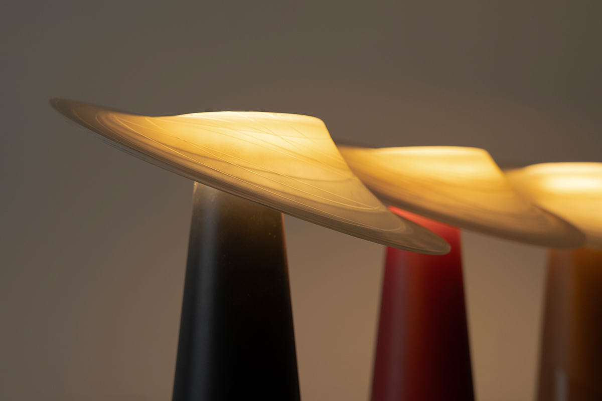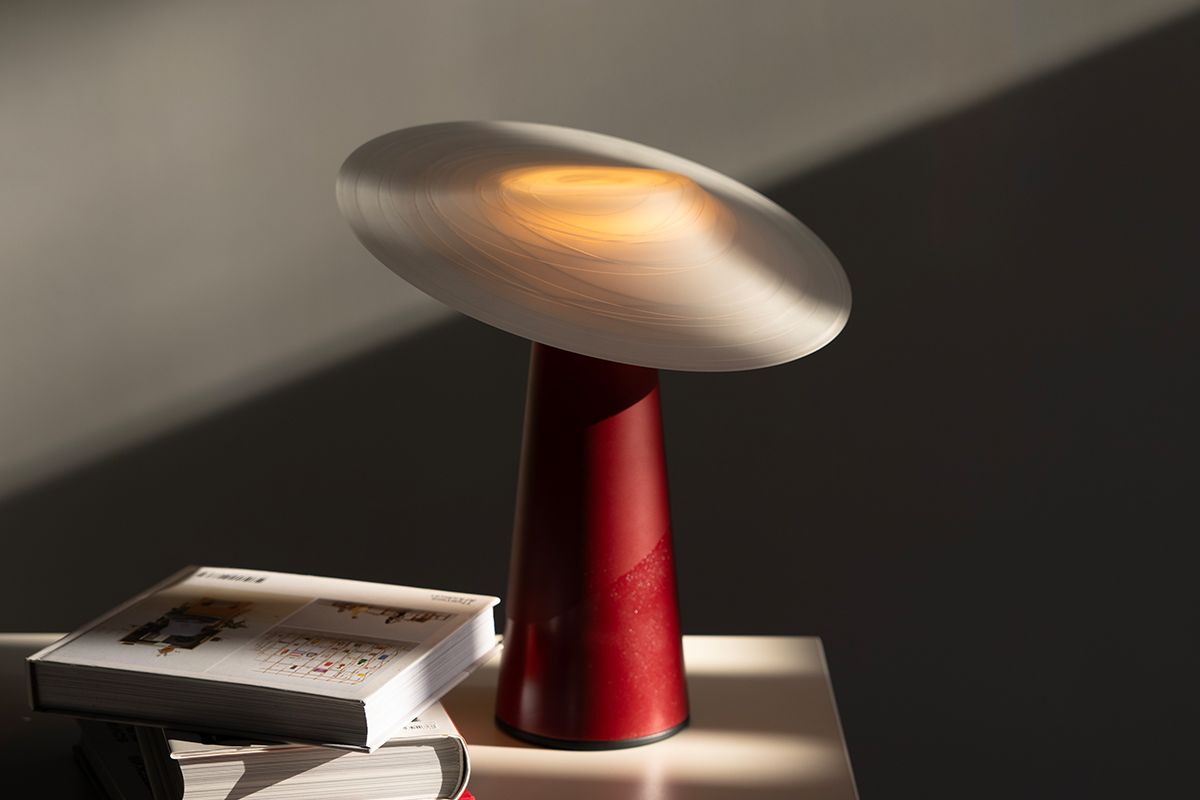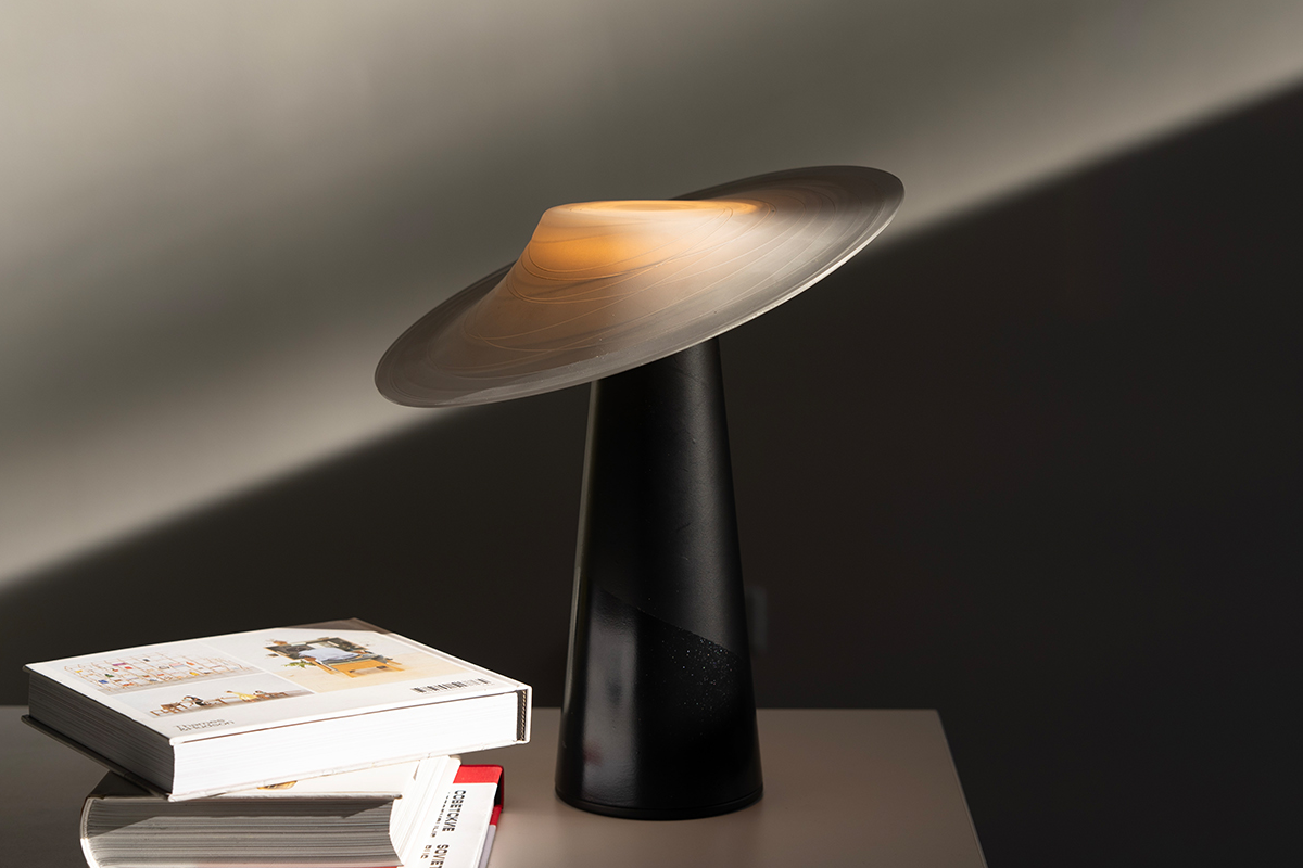 “Dai ” is a table lamp inspired by the empowering message about hard working women of the Dai people in Yunnan shaded by a tilted straw hat. The translucent shade, with a unique form and detailed with an etched pattern, looks to create a unique table lamp experience that makes the figure glow with a functional downlight. The table light design looks to celebrate and shine a light a figures that are usually hidden.