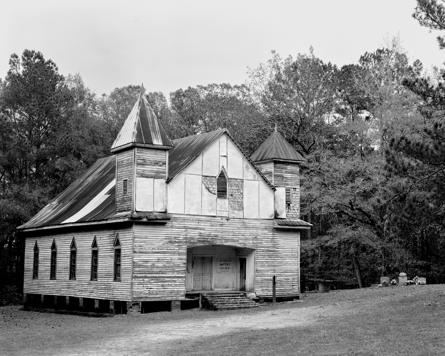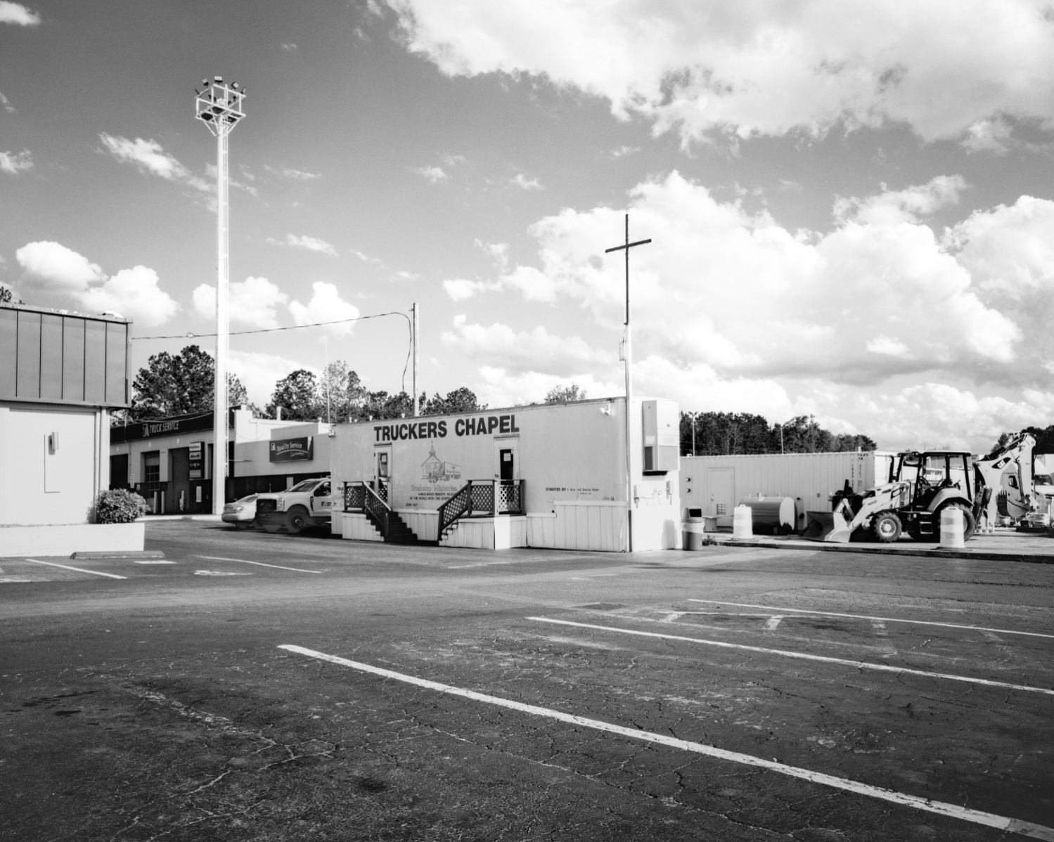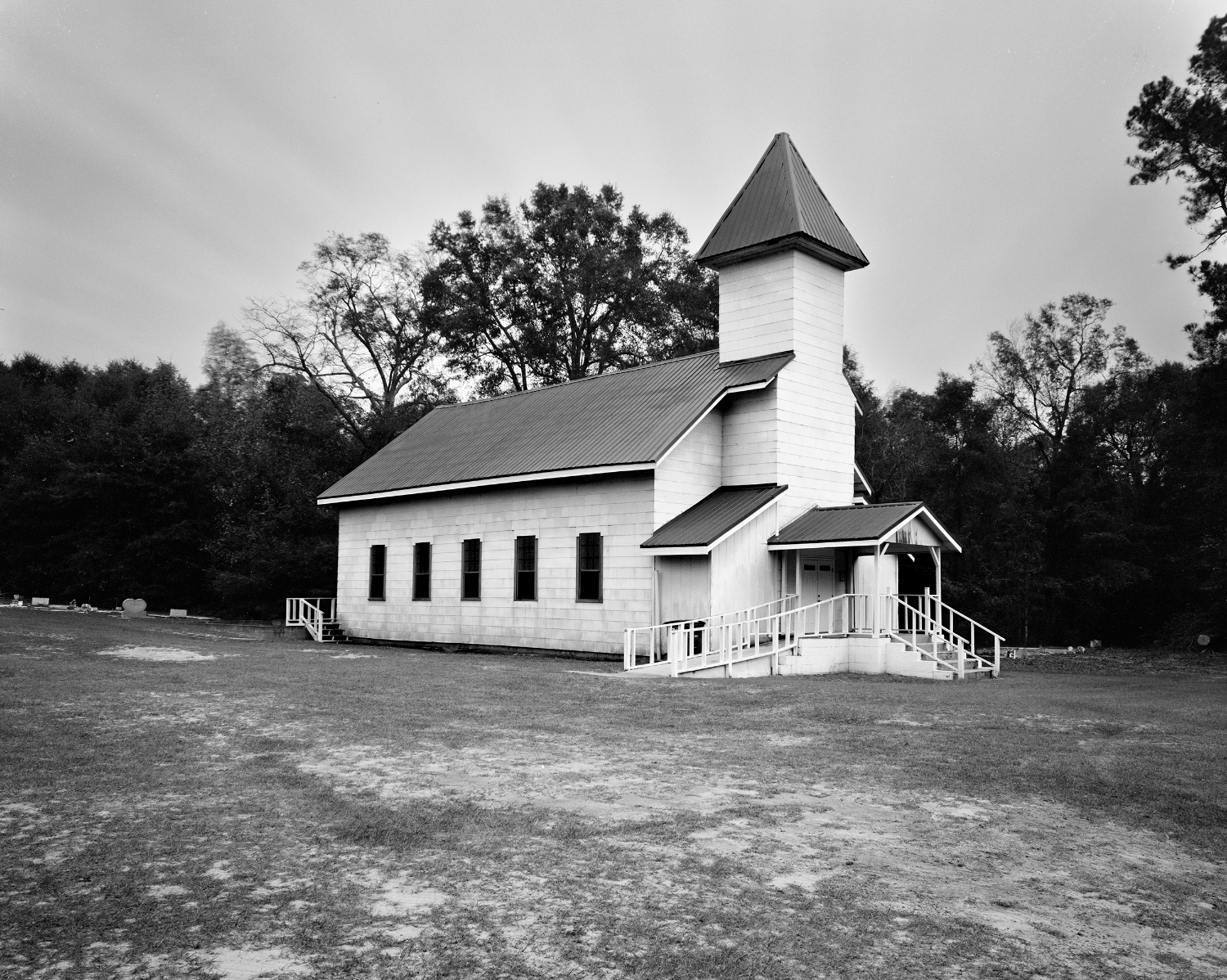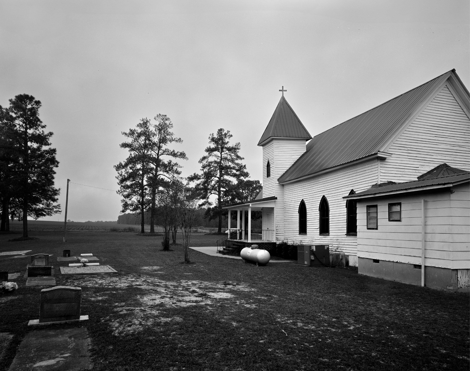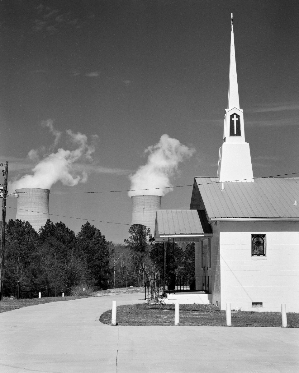 Religion has a way of elevating architecture beyond utility, rendering buildings that assert themselves upon the landscape with a sense of spectacle. Decay and Devotion presents these churches, regardless of denomination, as fixtures of the Southern landscape and as objects of sustained reverence. It is the tension between these sanctified spaces and their disparate surroundings—be it a nuclear power plant or a wall of kudzu—that unsettles and intrigues. For a church to be pure, must it exist apart from the will of man? Or is it the encroachment of industrial infrastructure that heightens its spiritual resonance? These churches are not just places of prayer, but are representative of the endurance and tenacity of their neighboring communities and the complex ecosystems they inhabit.