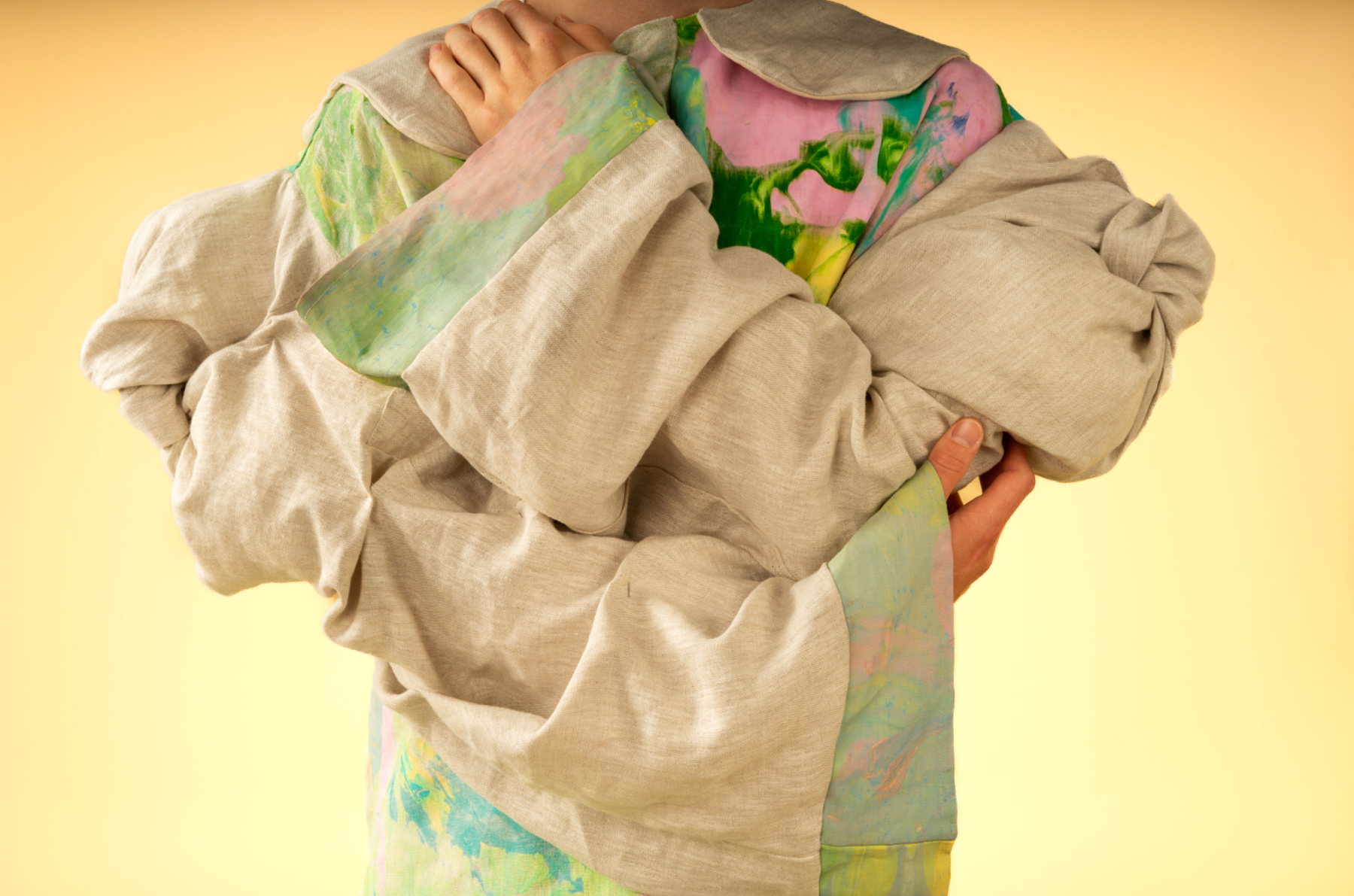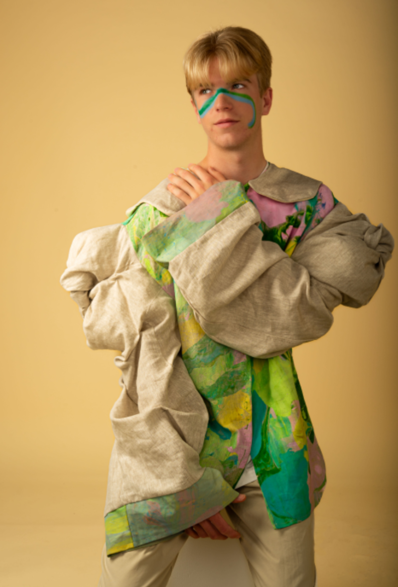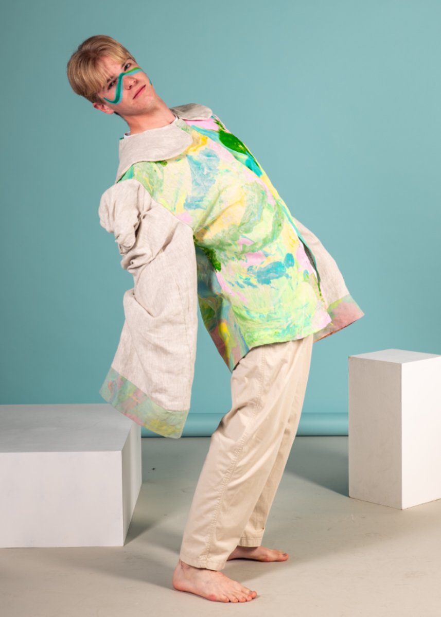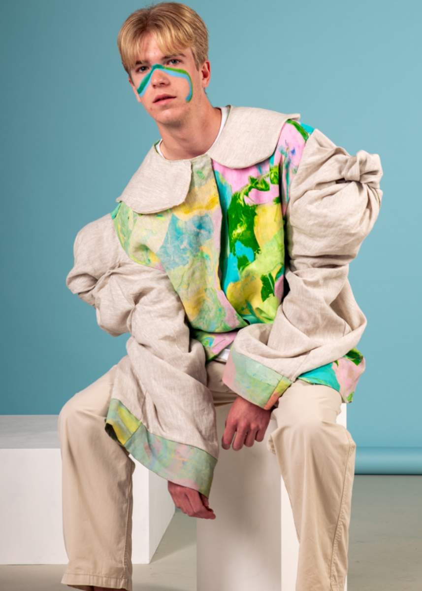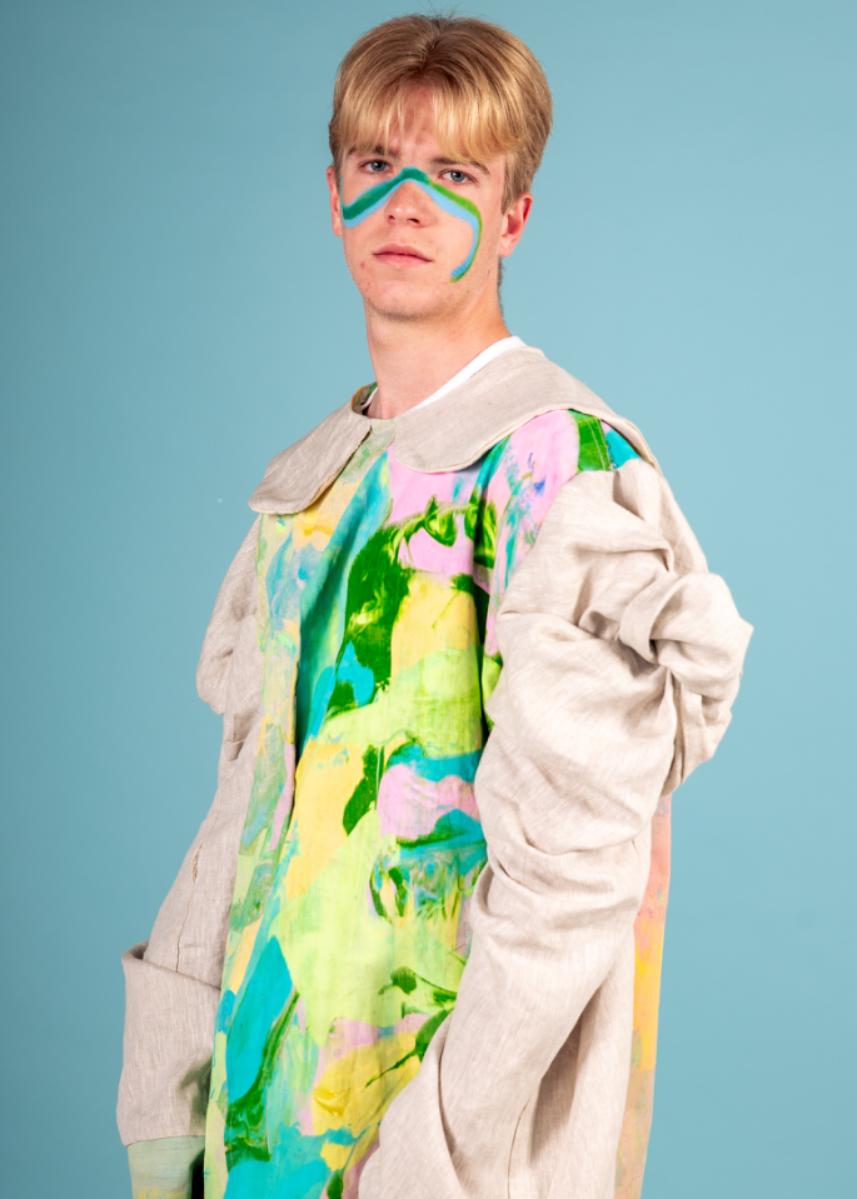 BA (hons) Fashion Design L4 Design Fundamentals Module Credits: 40 Marks: 70% Garment created using Subtraction Cutting Method and Screen Printed Linen. Photographs by Agnes Lork and Kasia Rydzik