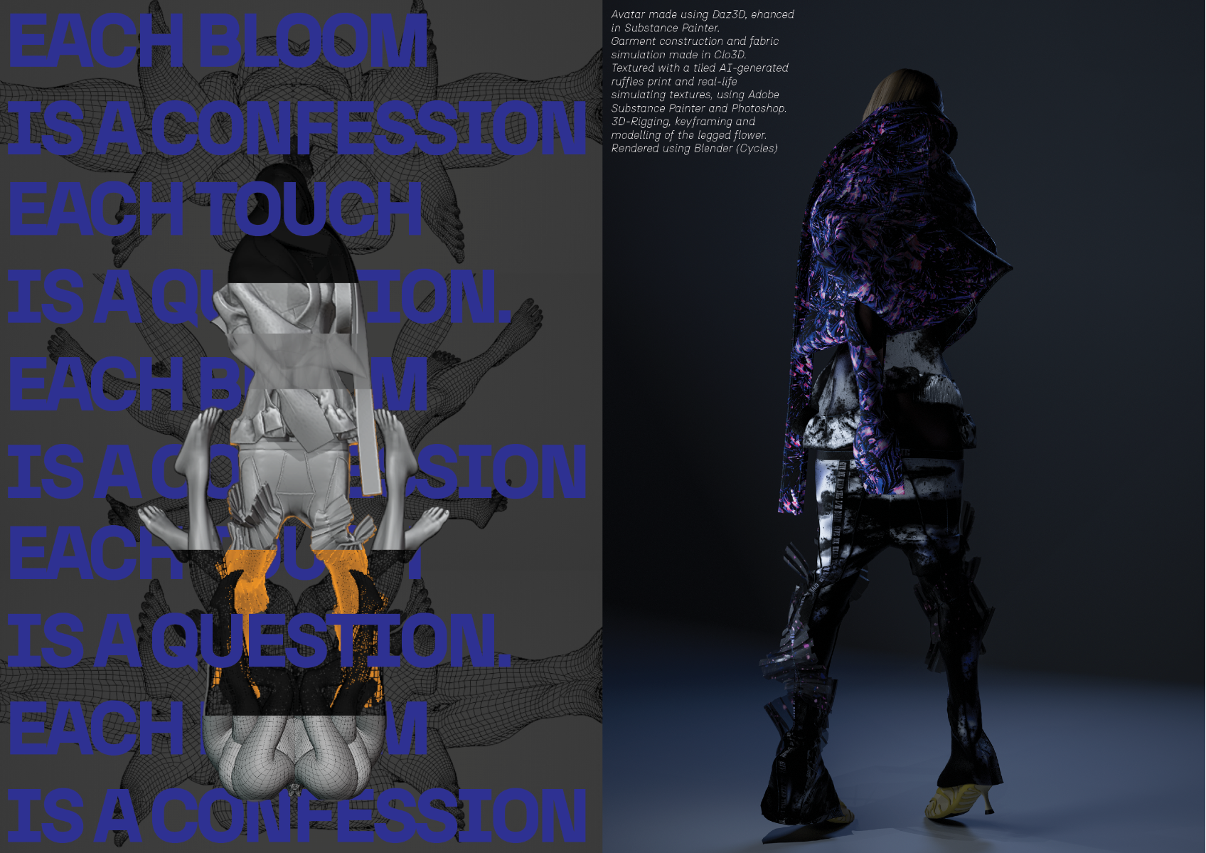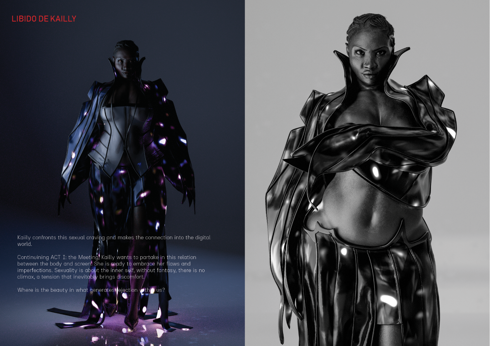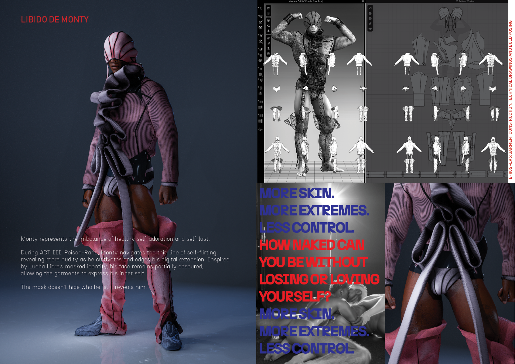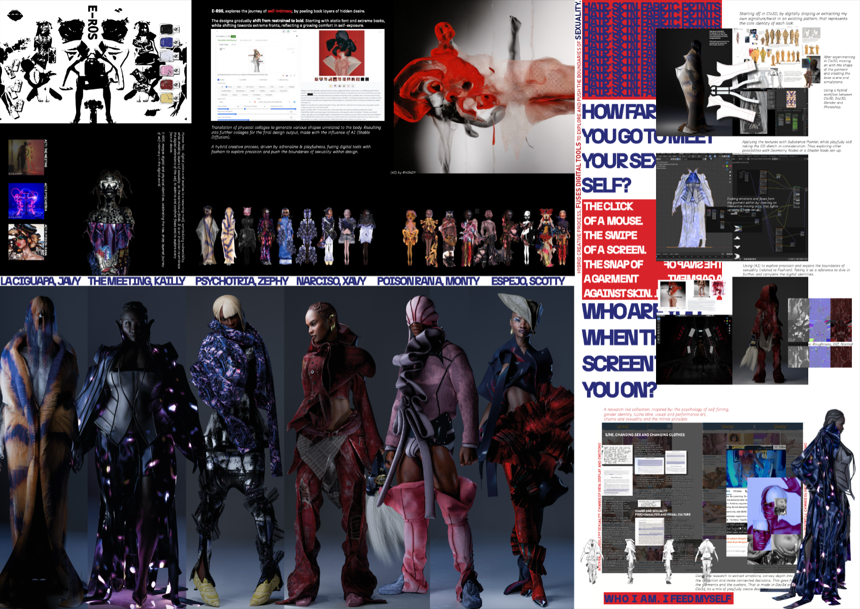 E-R0S is a fashion film that explores the journey of self-intimacy in the digital space. Told in three acts, the film merges 3D garment design, 3D/AI-driven visuals and stylized motion to examine desire, identity and the blurred line between self-love and self-lust. Each look reflects a stage of emotional transformation, inviting the viewer to question their own intimacy in an increasingly digital world. Who are you when the screen turns you on?